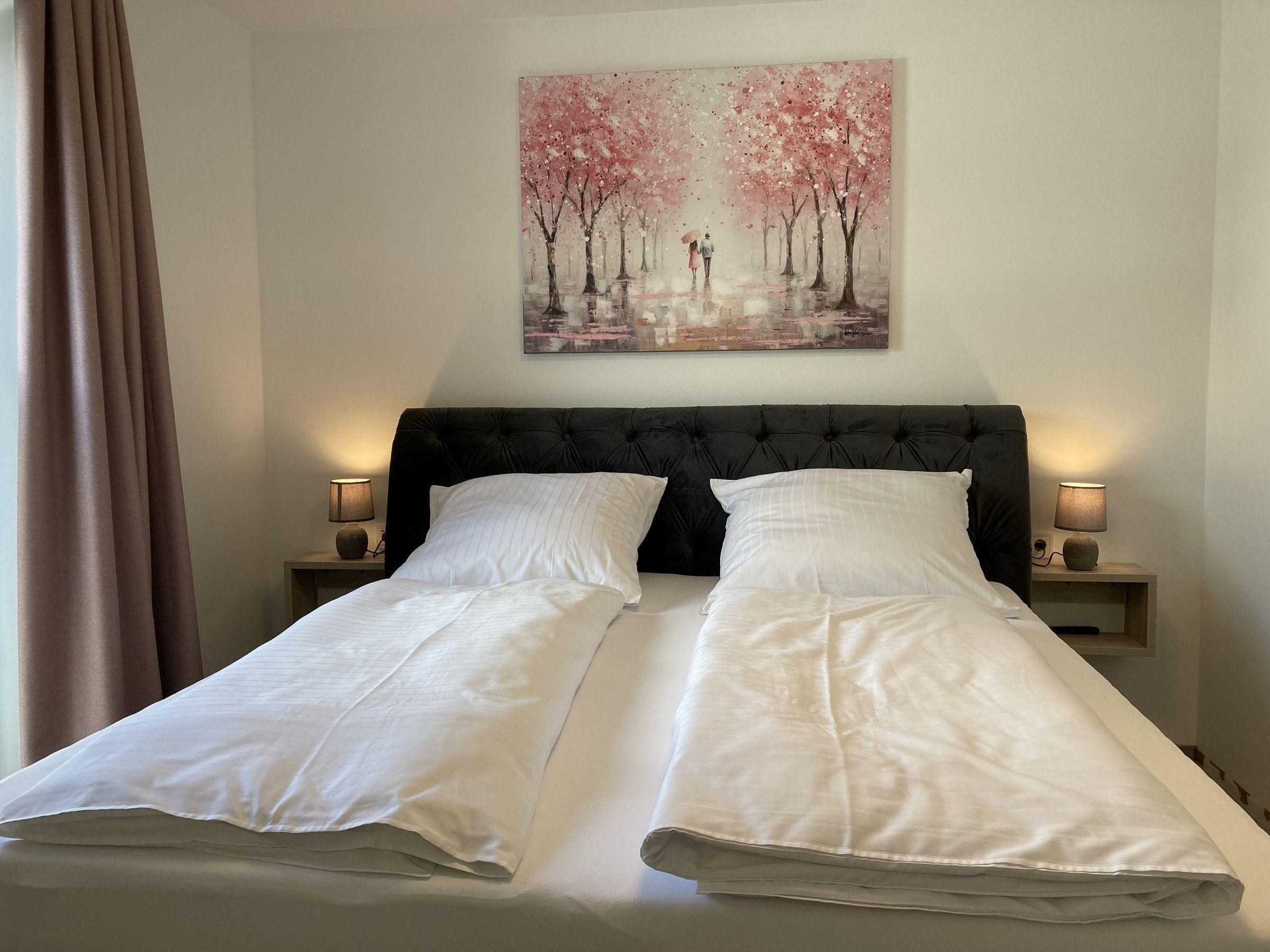 - 2 Schlafzimmer mit je einem hochwertigen Doppelbett, Kleiderschrank und TV,