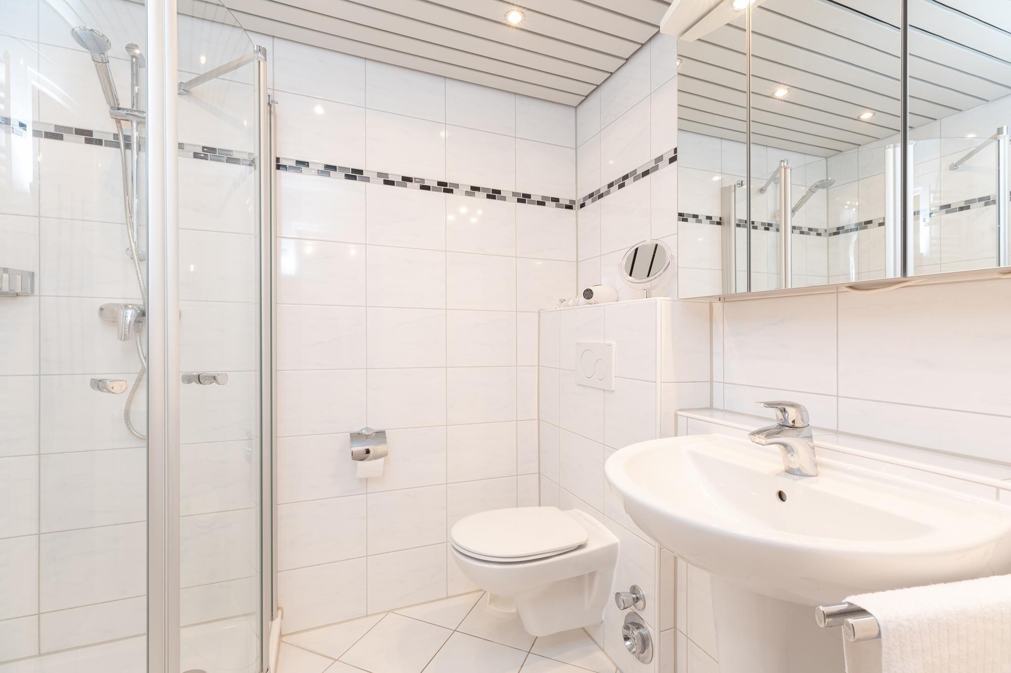 Ein PKW-Tiefgaragenstellplatz ist für Sie reserviert (max. 185 cm Durchfahrtshöhe). Die Nutzung des Hallenbades, der drei Gemeinschafts-Dachterrassen mit Meer- und Landblick sowie des Tischtennisraumes sind für Sie selbstverständlich kostenlos. Ihre mitgebrachten Fahrräder können Sie in einem der 2 Kellerräume in Haus A oder in dem Fahrradraum im Erdgeschoss zwischen Haus A und B abstellen. In Haus D befindet sich auf den Etagen 1 - 4 je ein Gemeinschaftswaschraum mit Waschmaschine und Trockner (gegen Gebühr/Münzgeräte).