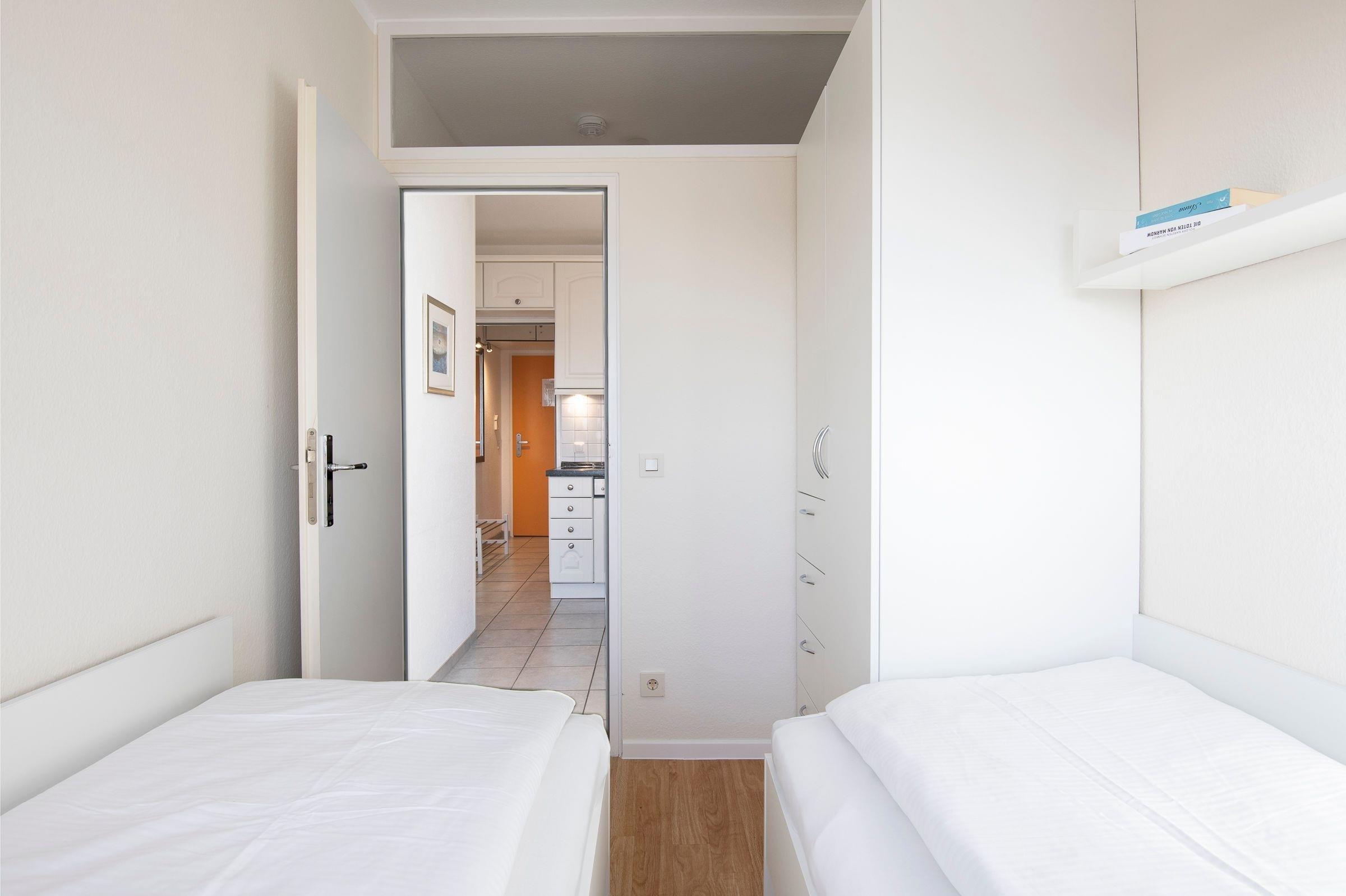 Schlafzimmer: 2 Einzelbetten (je 80x200 cm), Kleiderschrank, Verdunkelung (Rollo)