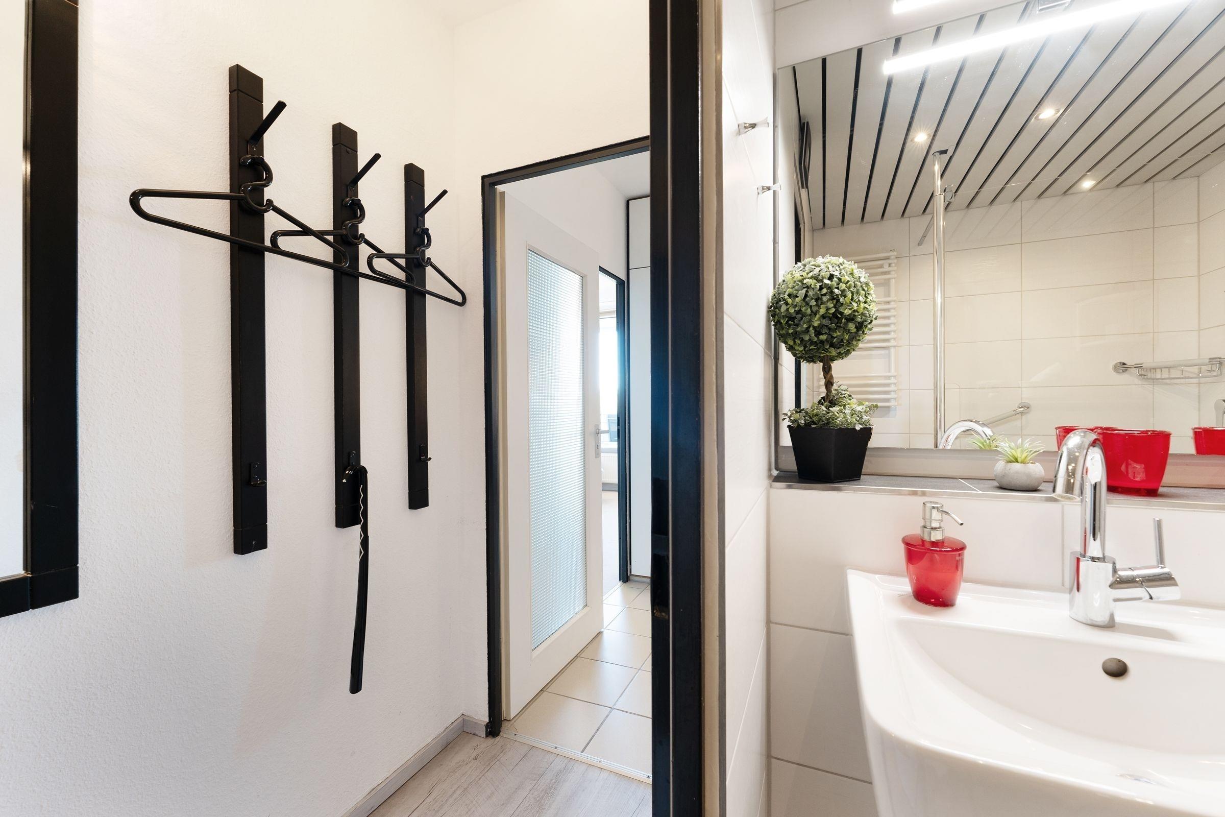 Ein PKW-Tiefgaragenstellplatz ist für Sie reserviert (max. 185 cm Durchfahrtshöhe). Die Nutzung des Hallenbades, der drei Gemeinschafts-Dachterrassen mit Meer- und Landblick sowie des Tischtennisraumes sind für Sie selbstverständlich kostenlos. Ihre mitgebrachten Fahrräder können Sie in einem der 2 Kellerräume in Haus A oder in dem Fahrradraum im Erdgeschoss zwischen Haus A und B abstellen. In Haus D befindet sich auf den Etagen 1 - 4 je ein Gemeinschaftswaschraum mit Waschmaschine und Trockner (gegen Gebühr/Münzgeräte).