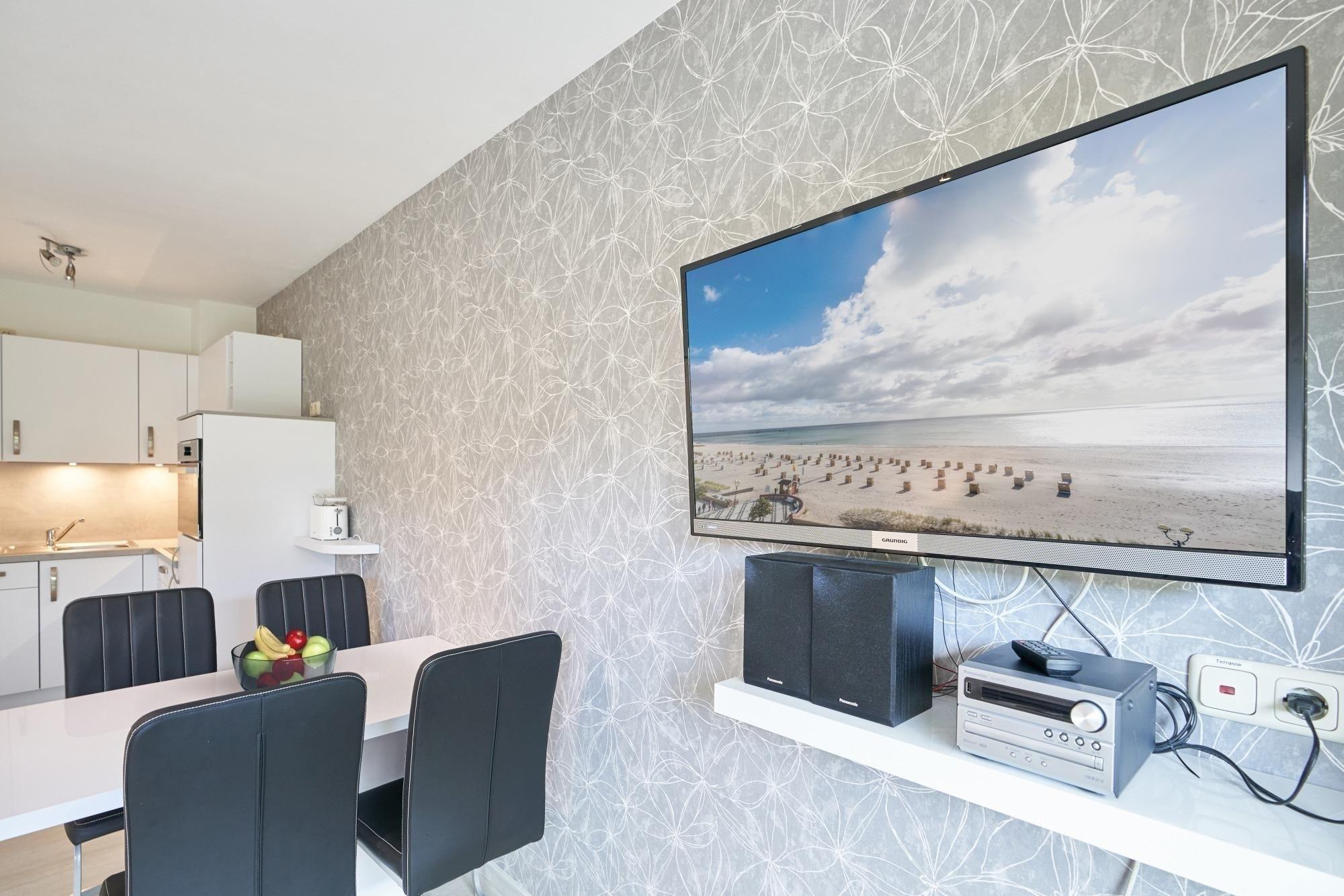 Das Haus ist folgendermaßen ausgestattet: Ein Wohnraum mit integrierter, voll ausgestatteter Küche, ein modernes Duschbad sowie zwei separate Schlafzimmer im Obergeschoss. Ein Schlafzimmer ist mit einem Doppelbett (2x 90x200 cm) ausgestattet, ein weiteres Schlafzimmer verfügt über zwei separat stehende Einzelbetten (je 90x200 cm). Die voll ausgestattete Küche mit Mikrowellen-/ Backofenkombigerät und Geschirrspüler lässt keine Wünsche offen. Alles ist gemütlich und geschmackvoll aufeinander abgestimmt. Das Haus liegt sehr ruhig in einer Stichstraße aber dennoch zentral mit sämtlichen Einkaufsmöglichkeiten in Ihrer Nähe. Ein PKW Stellplatz und Kabel TV mit DVBT sind ebenfalls vorhanden. Genießen Sie die Ruhe, spüren Sie die Erholung und genießen die Tage in Dahme in Ihrem Haus.