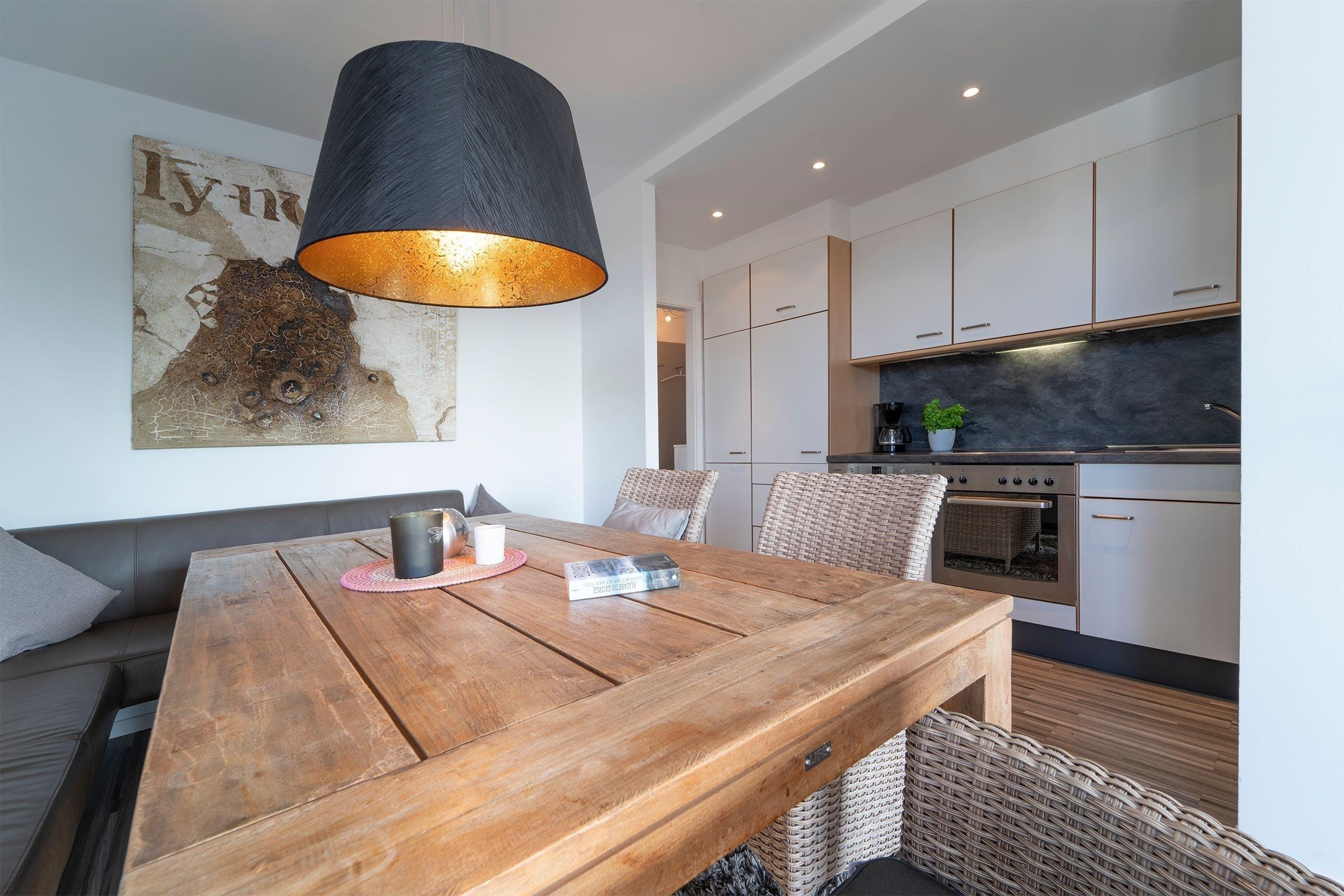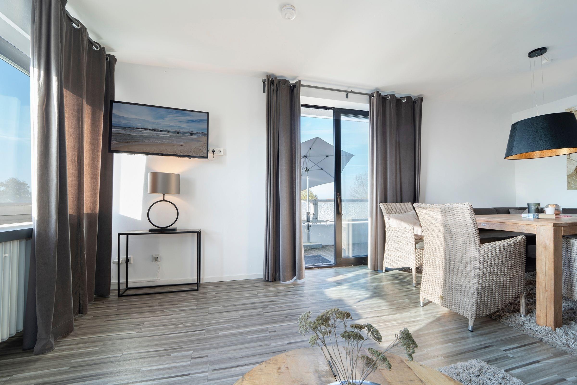 Genießen Sie diese hochwertige und sehr geschmackvoll eingerichtete 2-Zimmer-Wohnung für bis zu 3 Personen mit der voll ausgestatteten Küche, dem geräumigen Wohnraum mit Schlafsofa (130x200 cm) und einem Flat TV. Neben dem separaten Schlafzimmer mit Boxspringbett (2x 80x200 cm) und dem kleinen aber vollwertigen Duschbad, wird Sie der große, mit Bankiraiholz ausgestattete Balkon mit Nachmittagssonne und Blick ins Landesinnere begeistern.