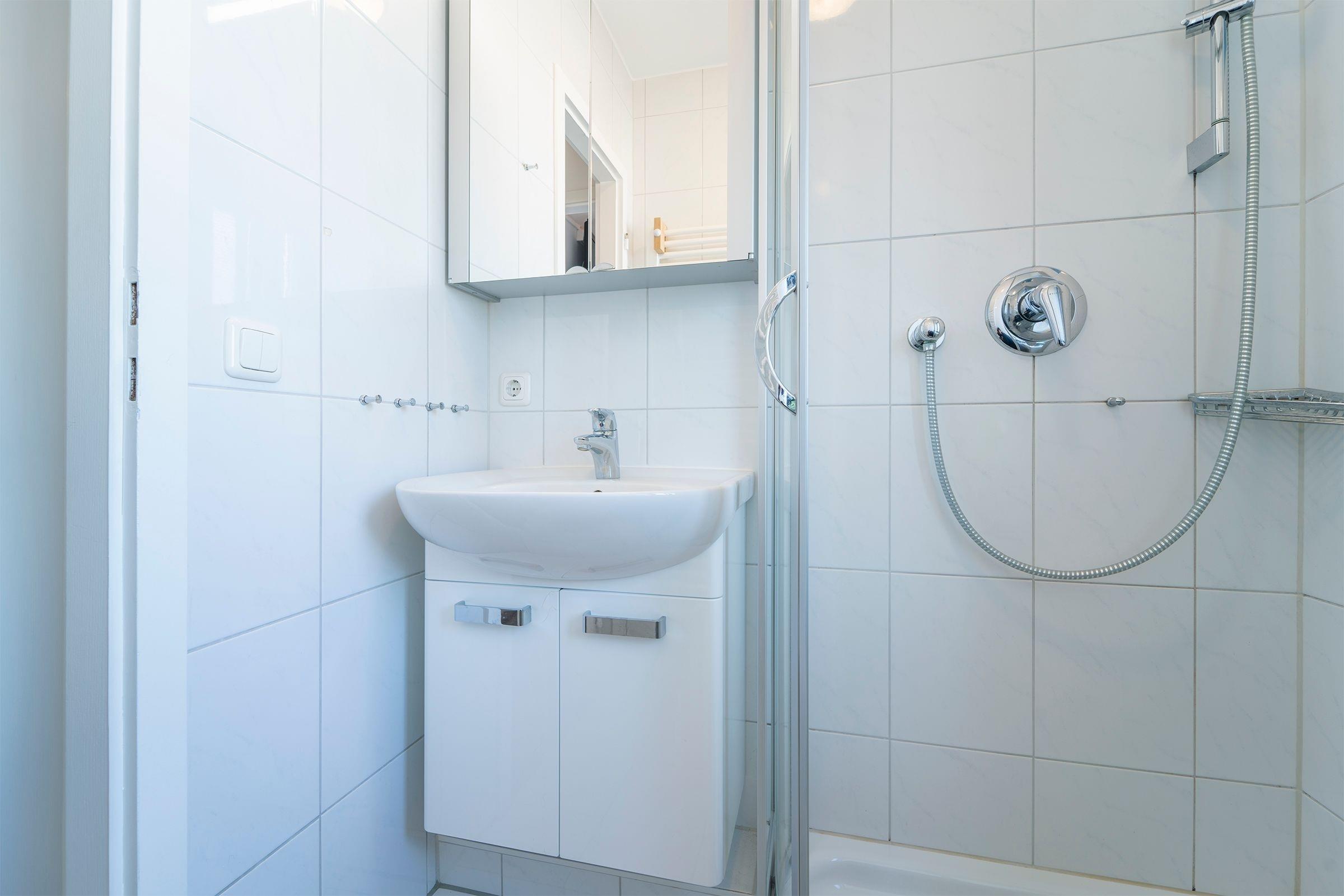 Im Keller des Hauses befindet sich eine Gemeinschafts-Waschküche mit Waschmaschine und Trockner. Diese schöne Anlage liegt direkt am Deich und verfügt ferner über einen Fahrstuhl, ein Hallenschwimmbad und eine Sauna. Der Strand und die Promenade liegen Ihnen zu Füßen. Sämtliche Einkaufsmöglichkeiten sind fußläufig zu erreichen.