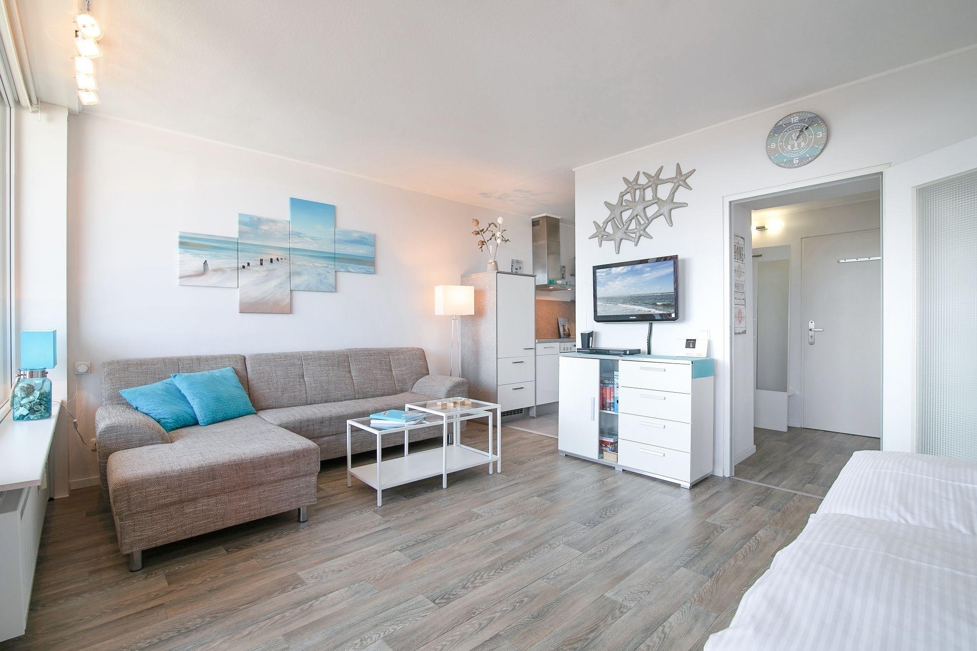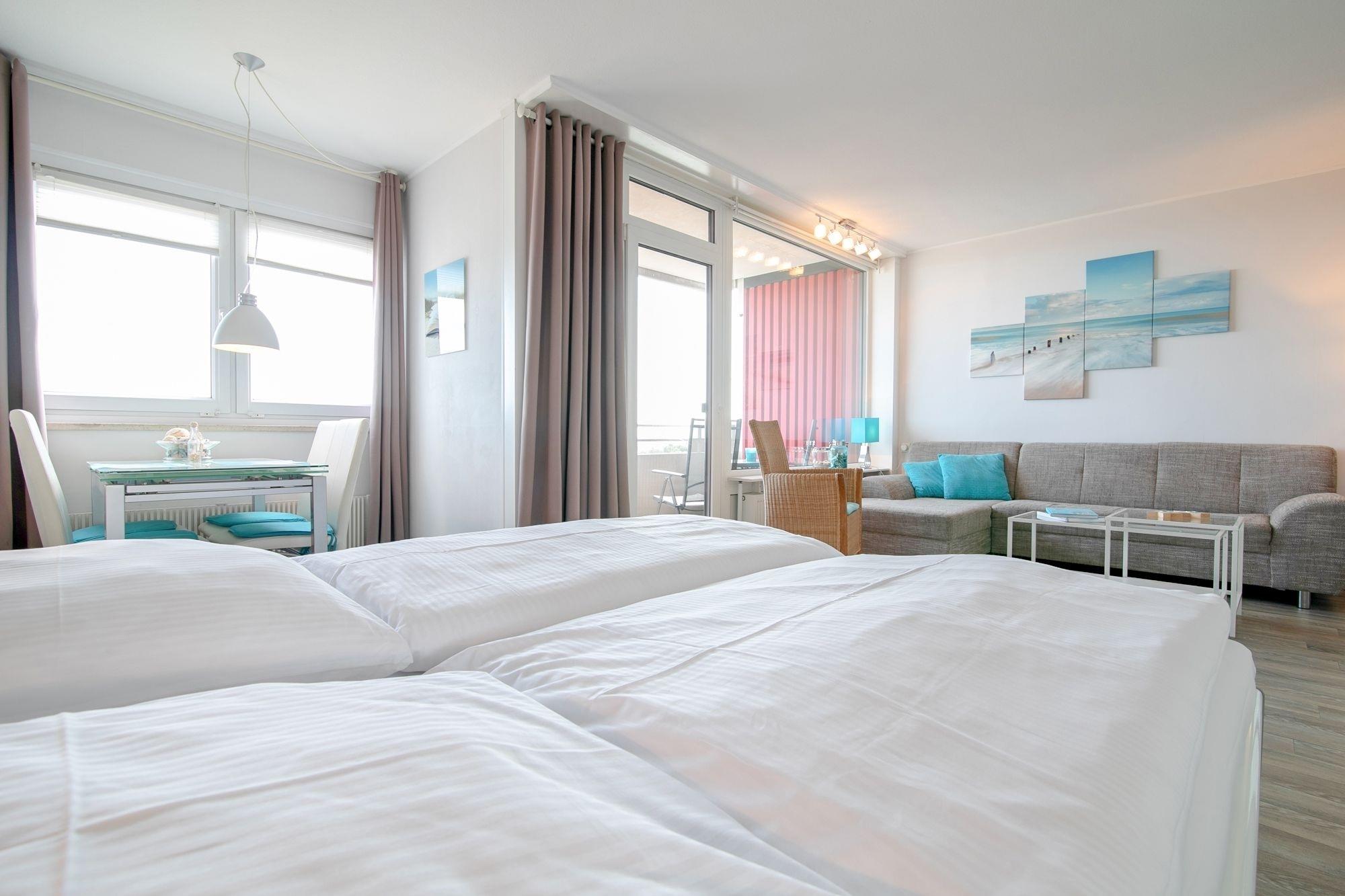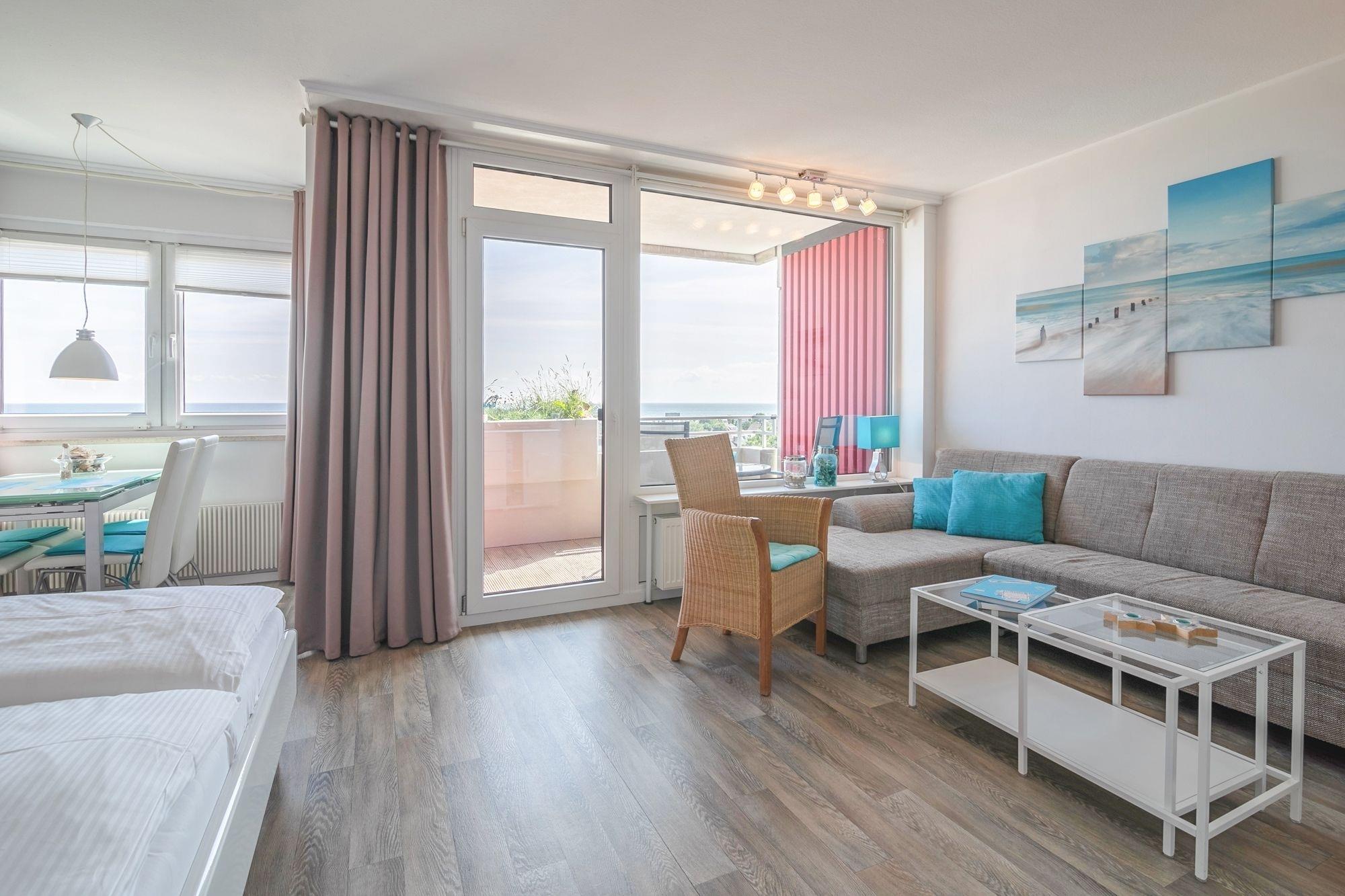 Diese ca. 37 m² große 1-Zimmer-Wohnung für max. 2 Personen wird Sie begeistern. Genießen Sie den mehr als 180°-Blick auf die Ostsee aus der 7. Etage der Apartmentanlage Berolina.
