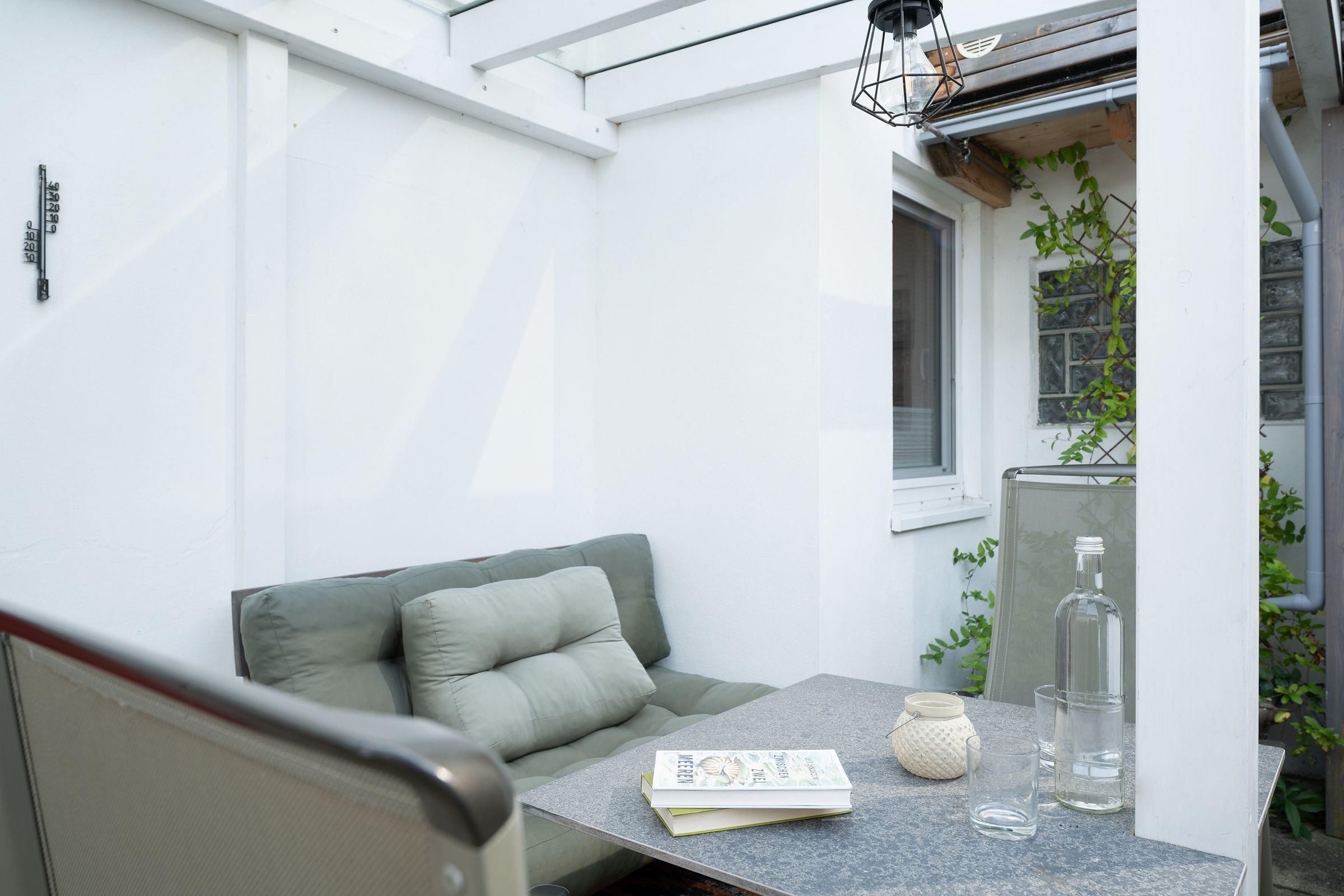 Ein 1-Zimmer-Traum im Herzen von Dahme. Die Liebeslaube empfängt Sie mit einem offenen Wohn- und Küchenbereich und hält ein modernes Bad für Sie bereit. Im Schlafzimmer erwarten Sie ein Doppelbett (2x 90x200 cm) und ein Kleiderschrank. Genießen Sie die Ruhe und den charmanten Hinterhofcharakter auf Ihrer teilüberdachten, möblierten Terrasse. Der WLAN-Anschluss ist inklusive.