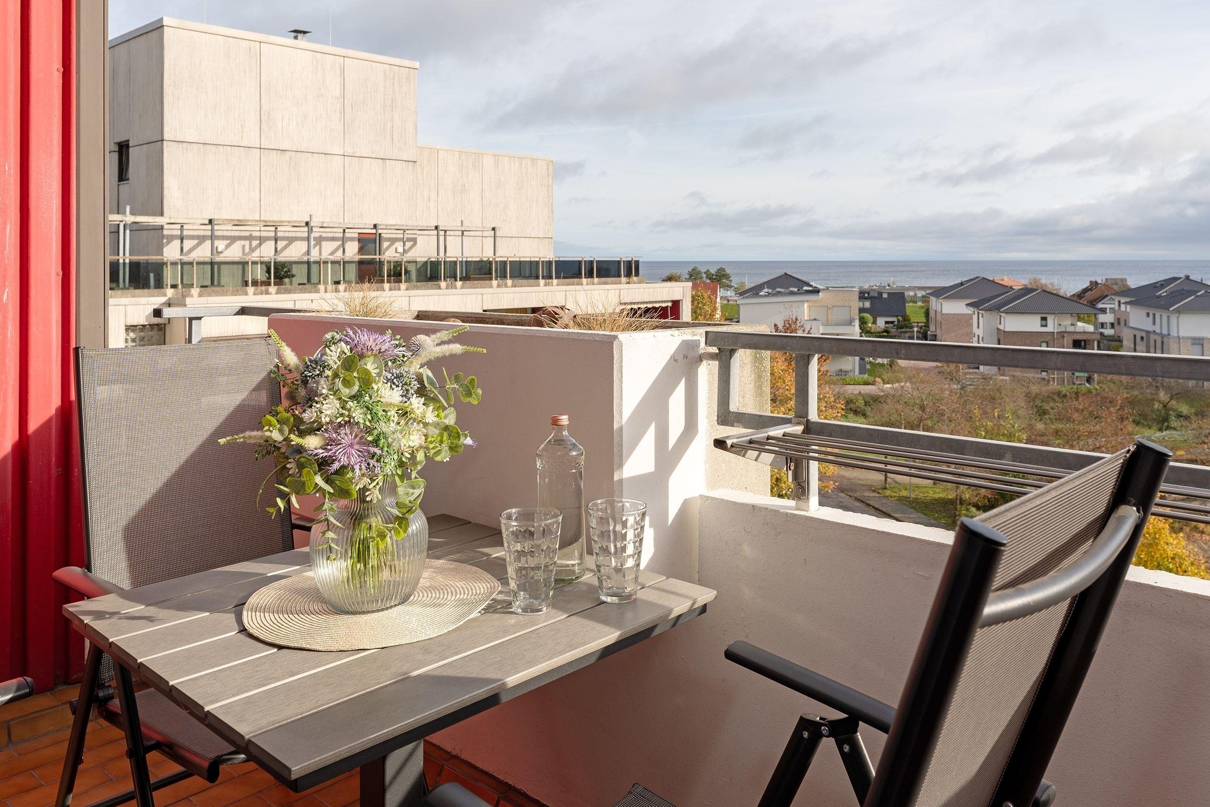 In dieser 2-Zimmer-Ferienwohnung können Sie Ihren Urlaub mit bis zu 3 Personen auf ca. 46 m² verbringen. Die Wohnung befindet sich in der 4. Etage der Apartmentanlage Berolina und verfügt über einen Balkon mit Meerblick.