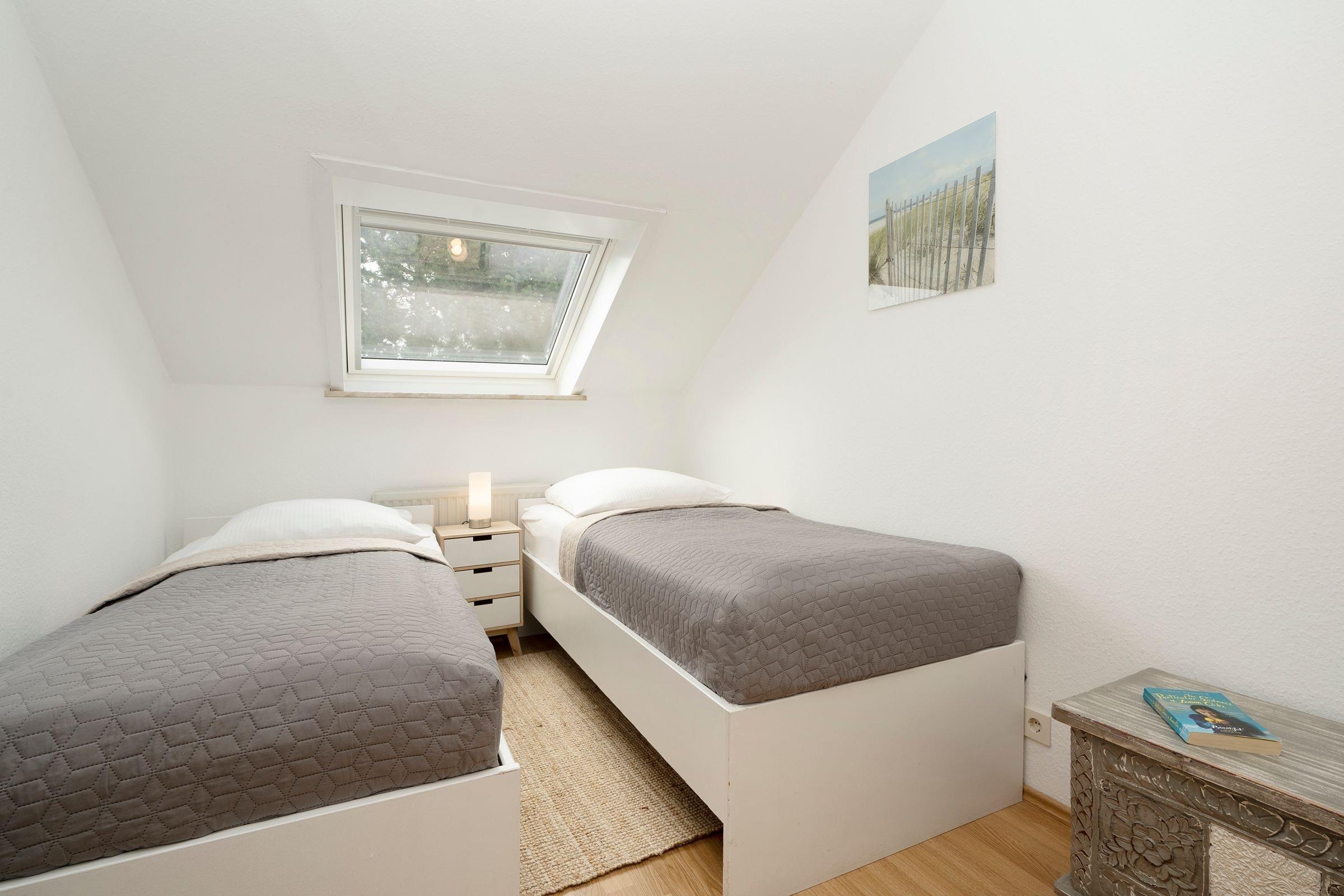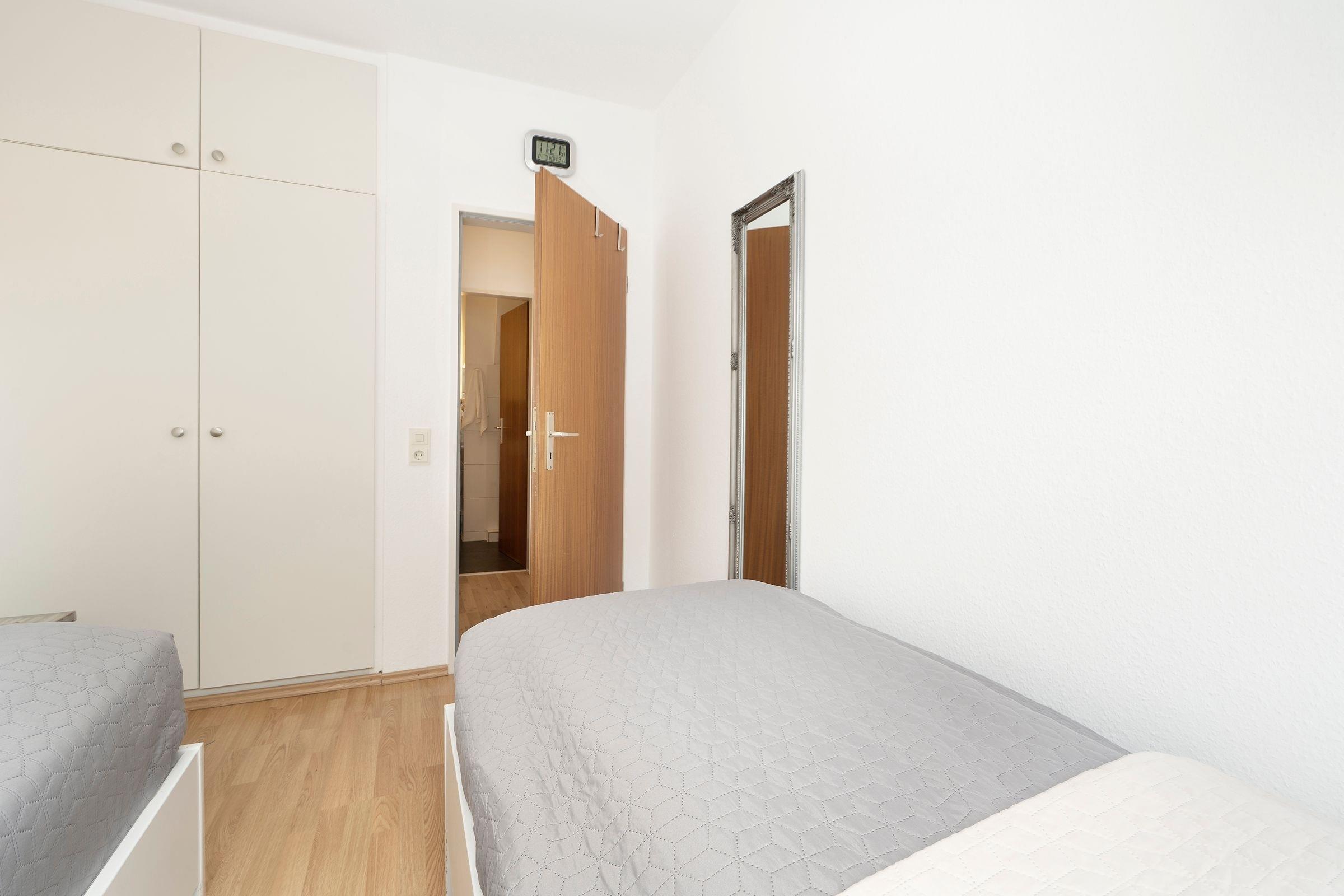 Schlafzimmer: 2 Einzelbetten (je 90x200 cm), Kleiderschrank, Verdunkelungsmöglichkeit