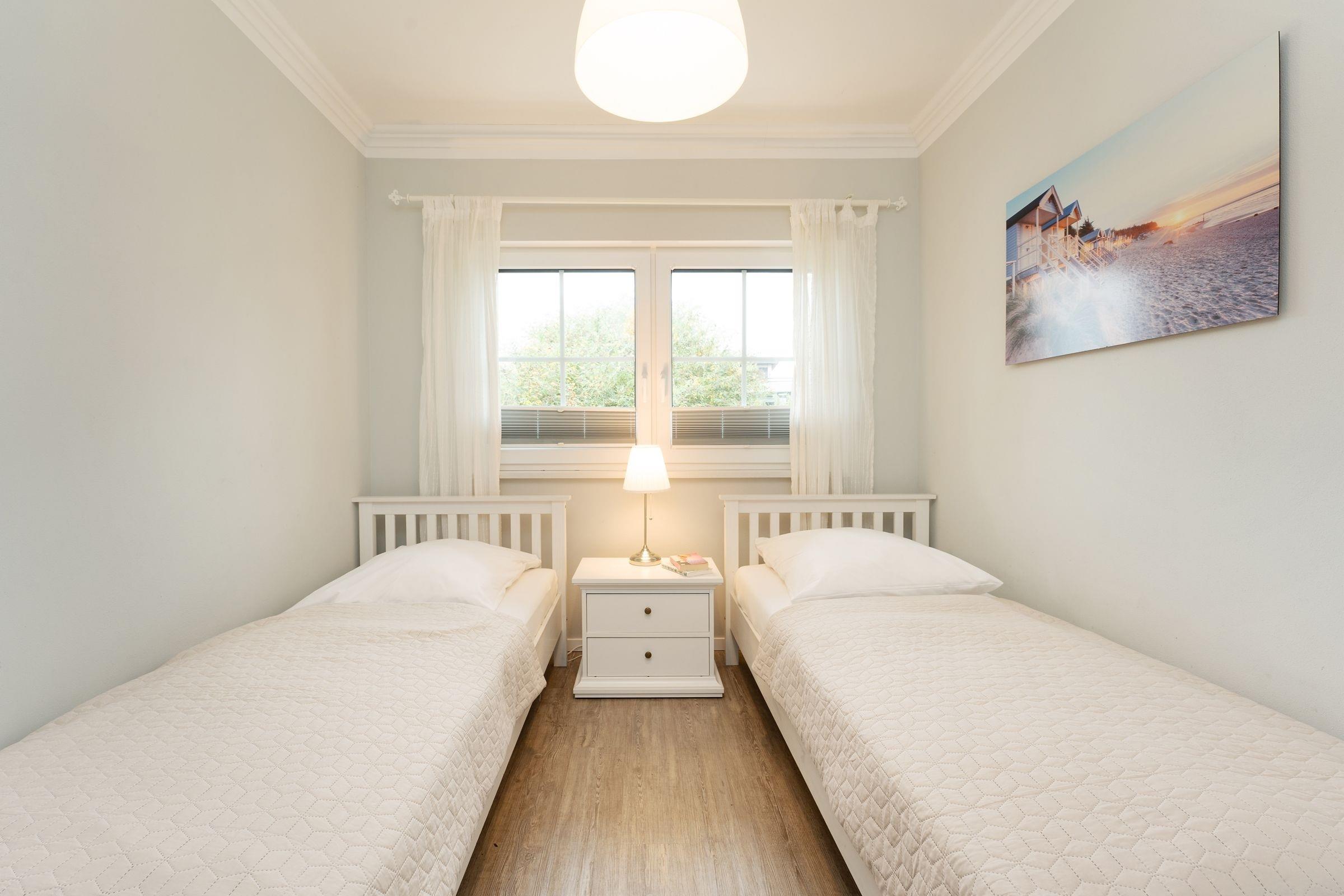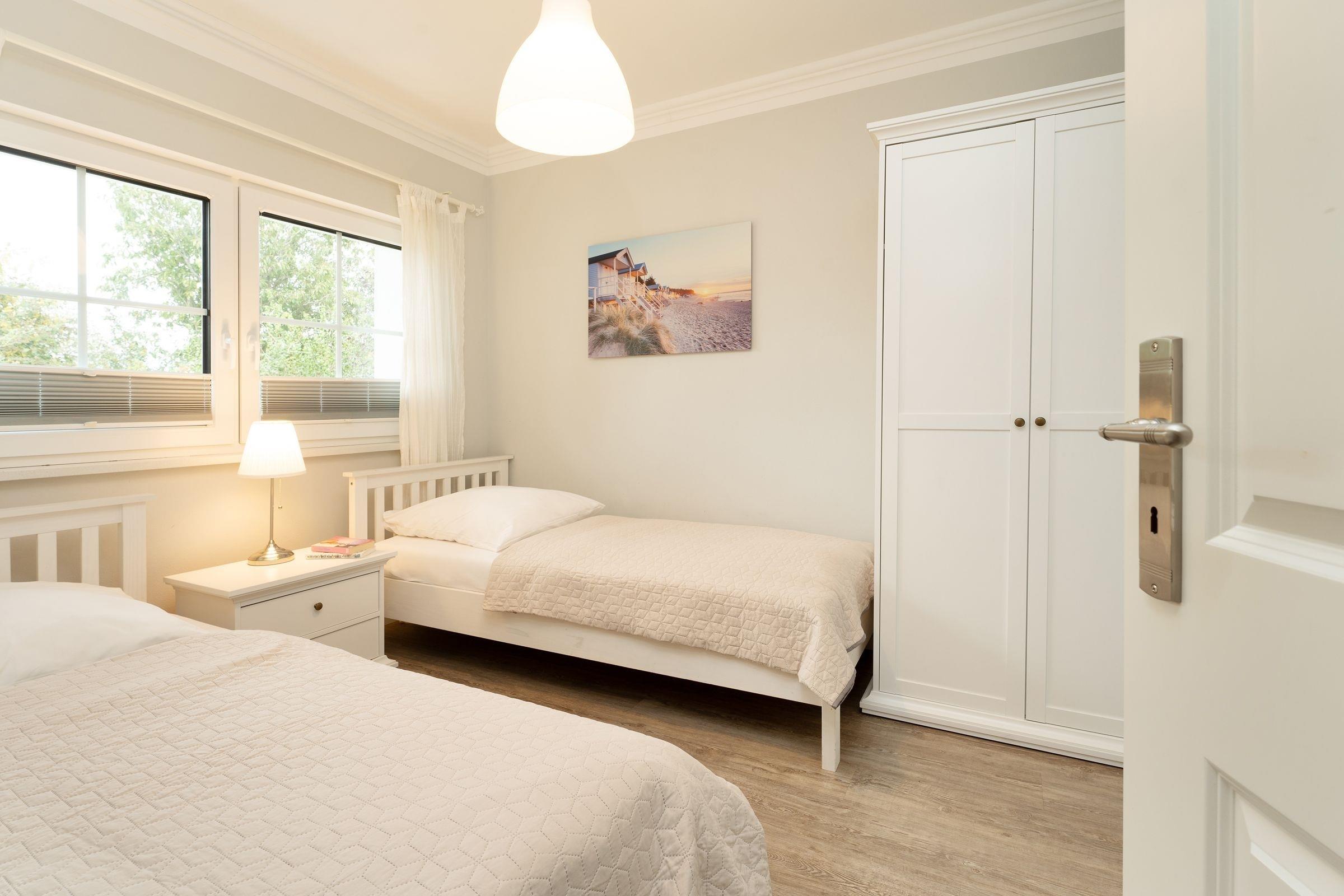 Schlafzimmer 2. 2 Einzelbetten (2x 90x200 cm), Kleiderschrank, Lichtschutz (Plissee)