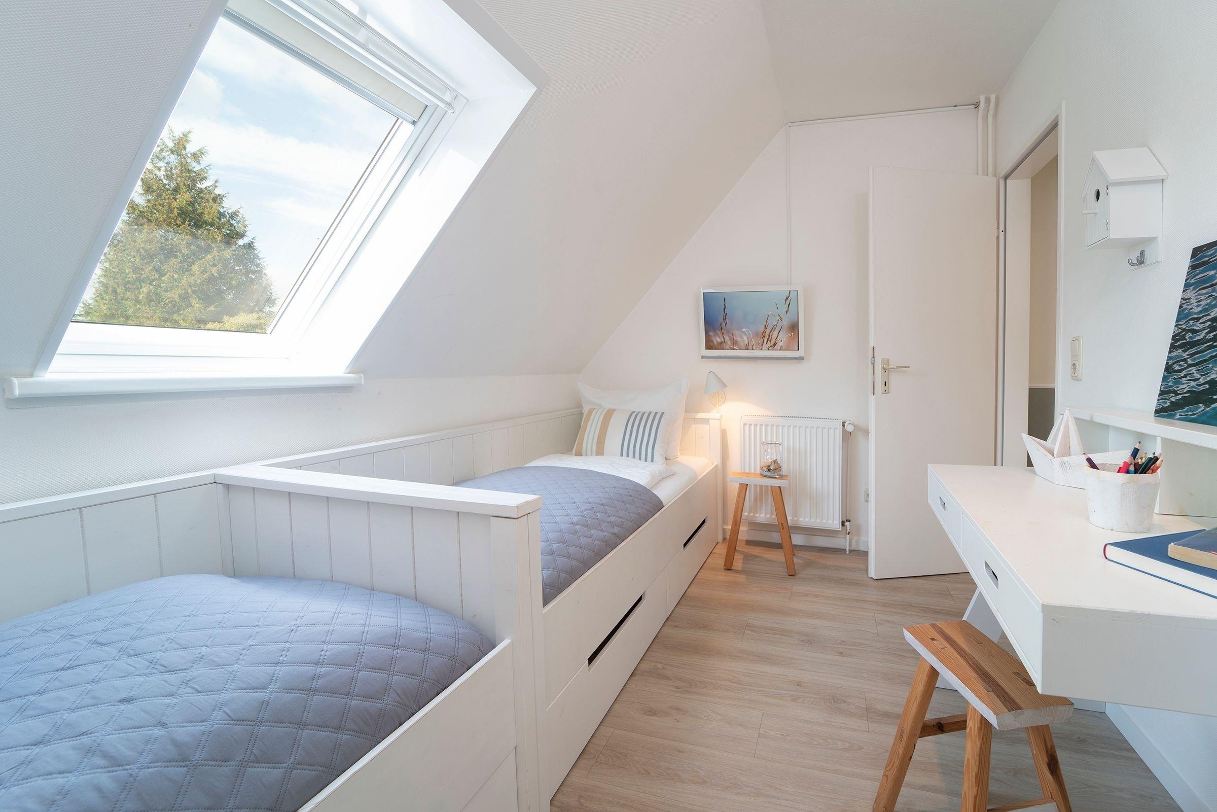 Schlafzimmer 2: 2 Einzelbetten (2x 90x200 cm), TV.