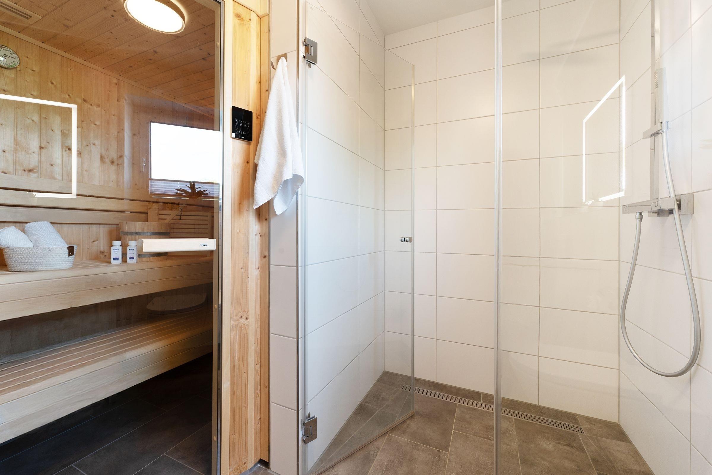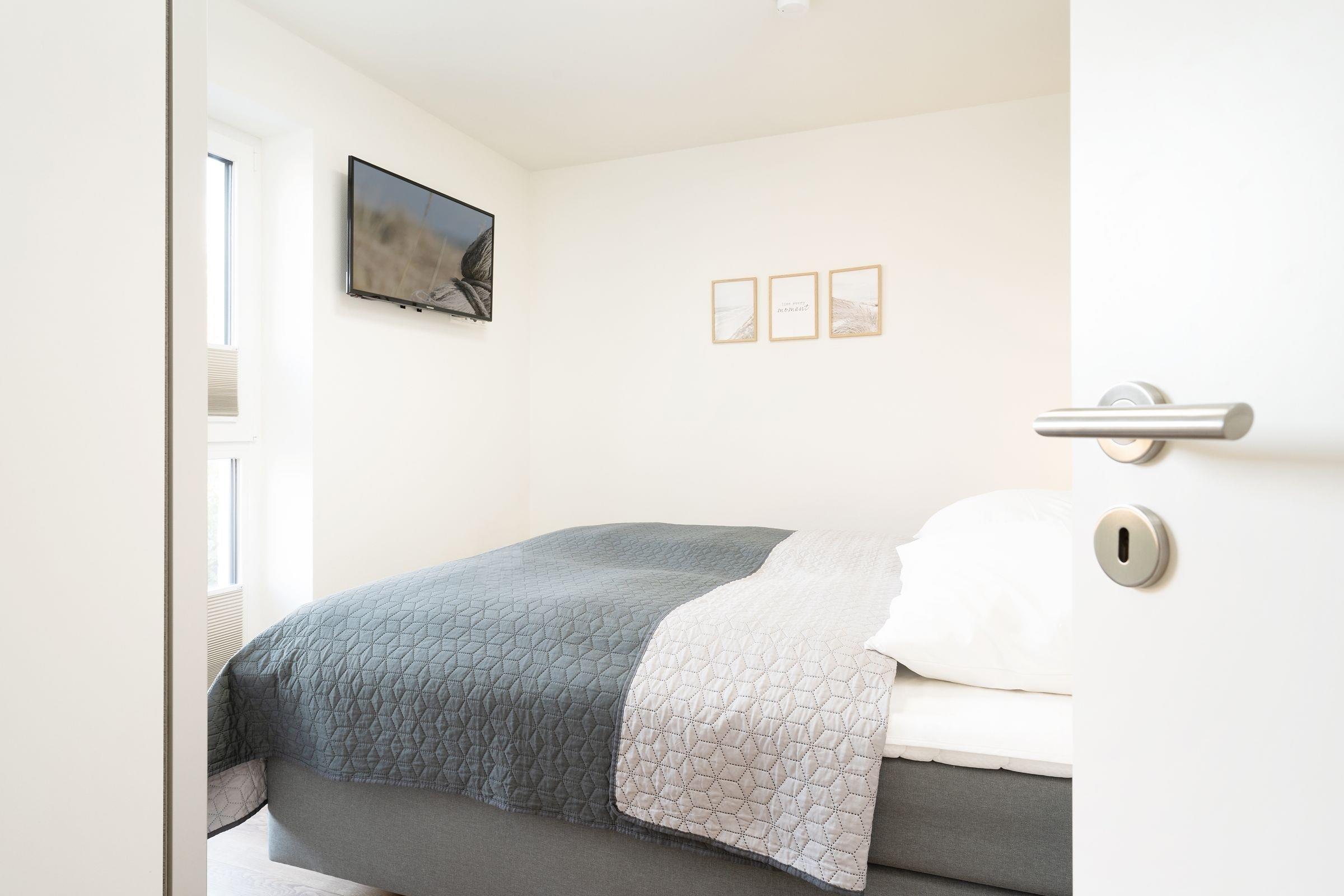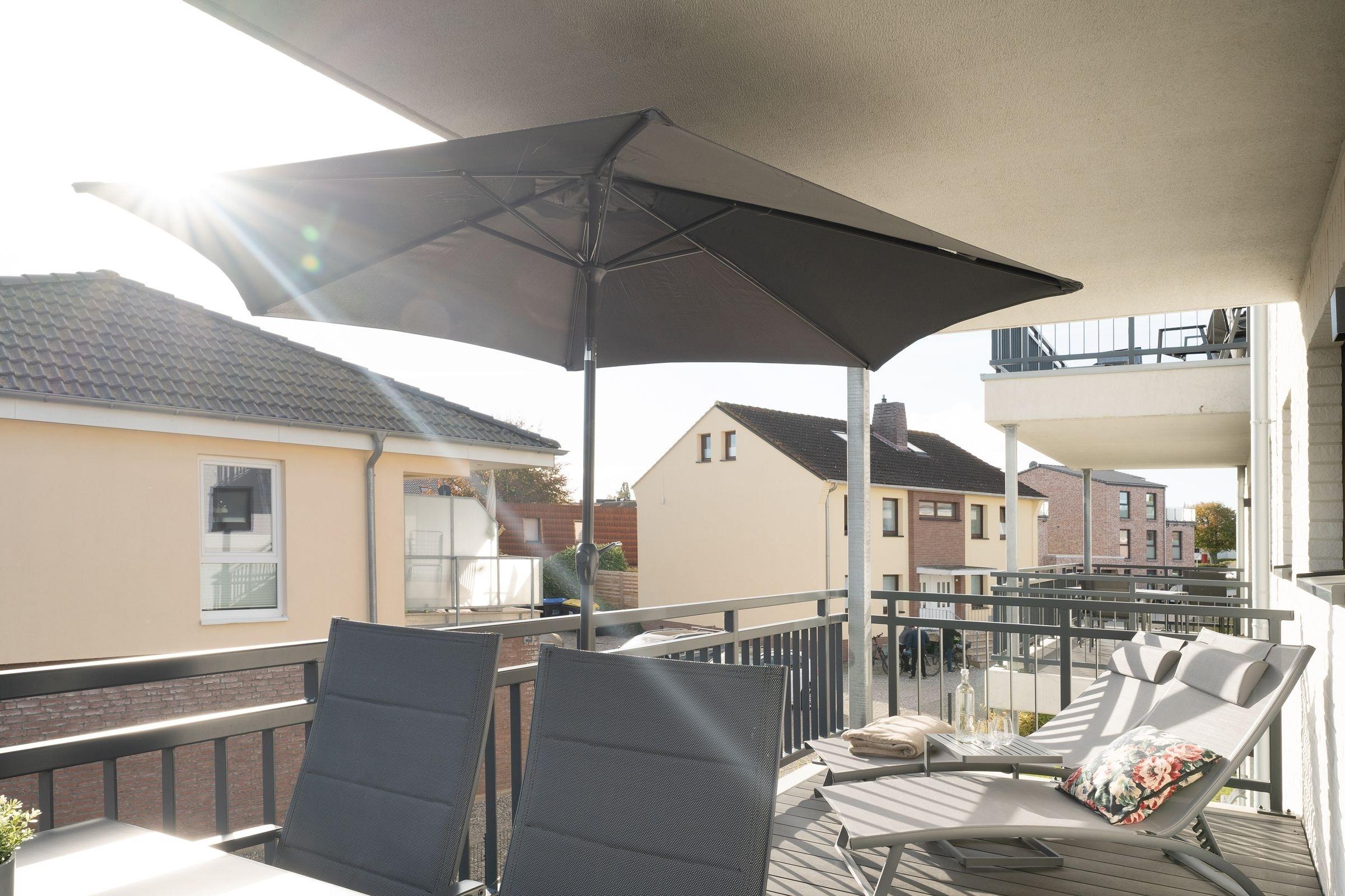 Der lichtdurchflutete Wohn- und Essbereich mit komfortablem Ecksofa und großem Flachbildfernseher ist das Herzstück dieser Wohnung. Die angrenzende, offene Küche ist sehr gut ausgestattet und bietet ausreichend Platz zum gemeinsamen Kochen. Auf dem überdachten, möblierten Balkon mit Süd-Ost-Ausrichtung sorgen zwei Sonnenliegen und ein Sonnenschirm für weiteren Komfort. Die Wohnung verfügt über zwei separate Schlafzimmer. Beide sind mit einem Boxspring-Doppelbett (180x200 cm, durchgehender Topper) sowie einem Kleiderschrank und einem TV eingerichtet. Zusätzlich zum Hauptbadezimmer mit WC, bodengleicher Dusche und eigener Sauna gibt es ein Gäste-WC. Die Fußbodenheizung in der gesamten Wohnung sorgt stets für eine angenehme Wärme.