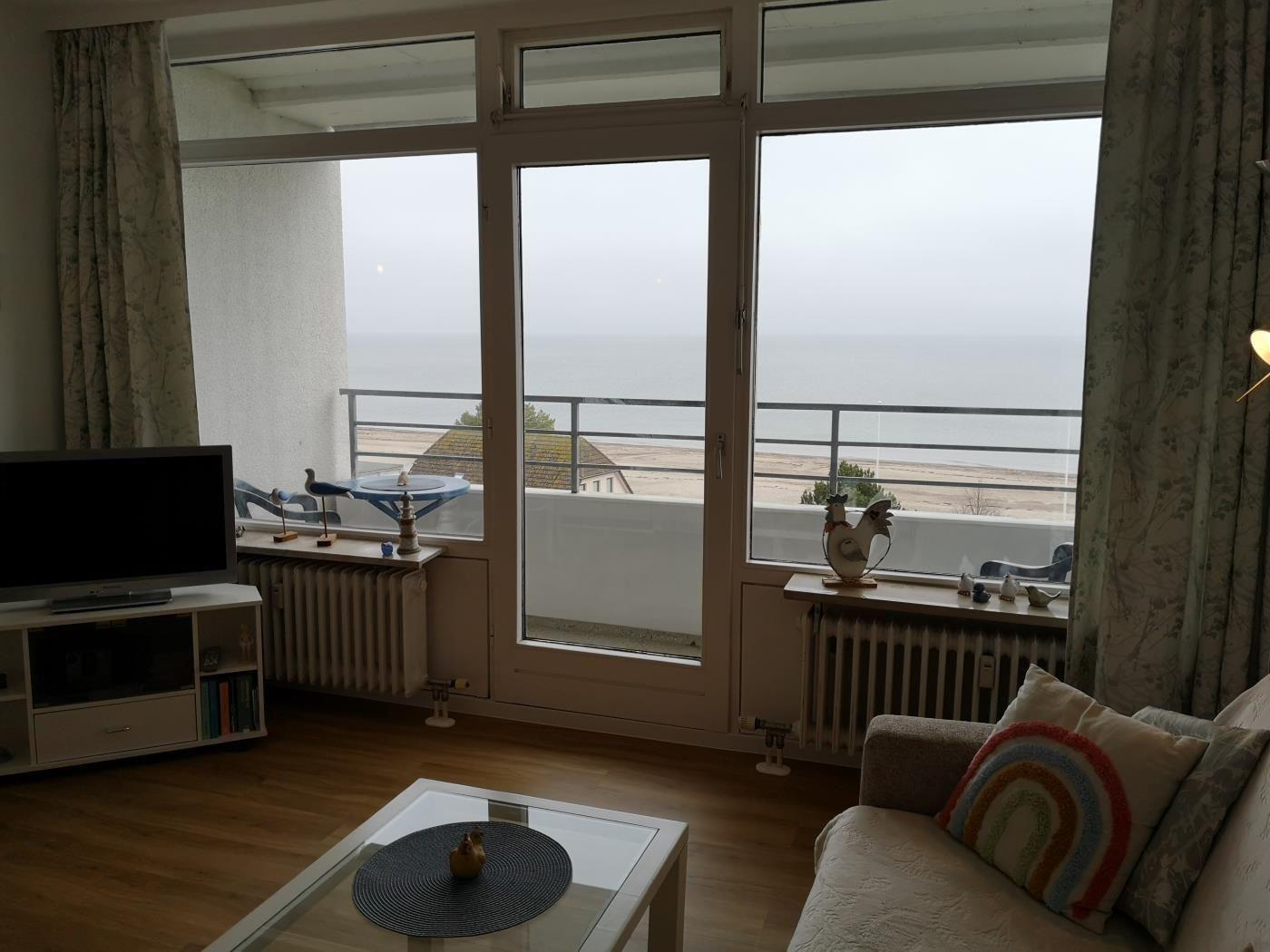 Das Appartementhaus liegt unmittelbar hinter dem Deich. Es besitzt einen eigenen Zugang zum Strand. Schwimmbad im Haus. Waschmaschine und Trockner gegen Gebühr. Lift im Haus. Die Ferienwohnung besteht aus: Wohnschlafraum mit Doppelbettcouch, Küche mit Inventar, Essecke, Farb-TV, Dusche, WC, Balkon, 5.OG Seeblick, Parkplatz Nr. 63