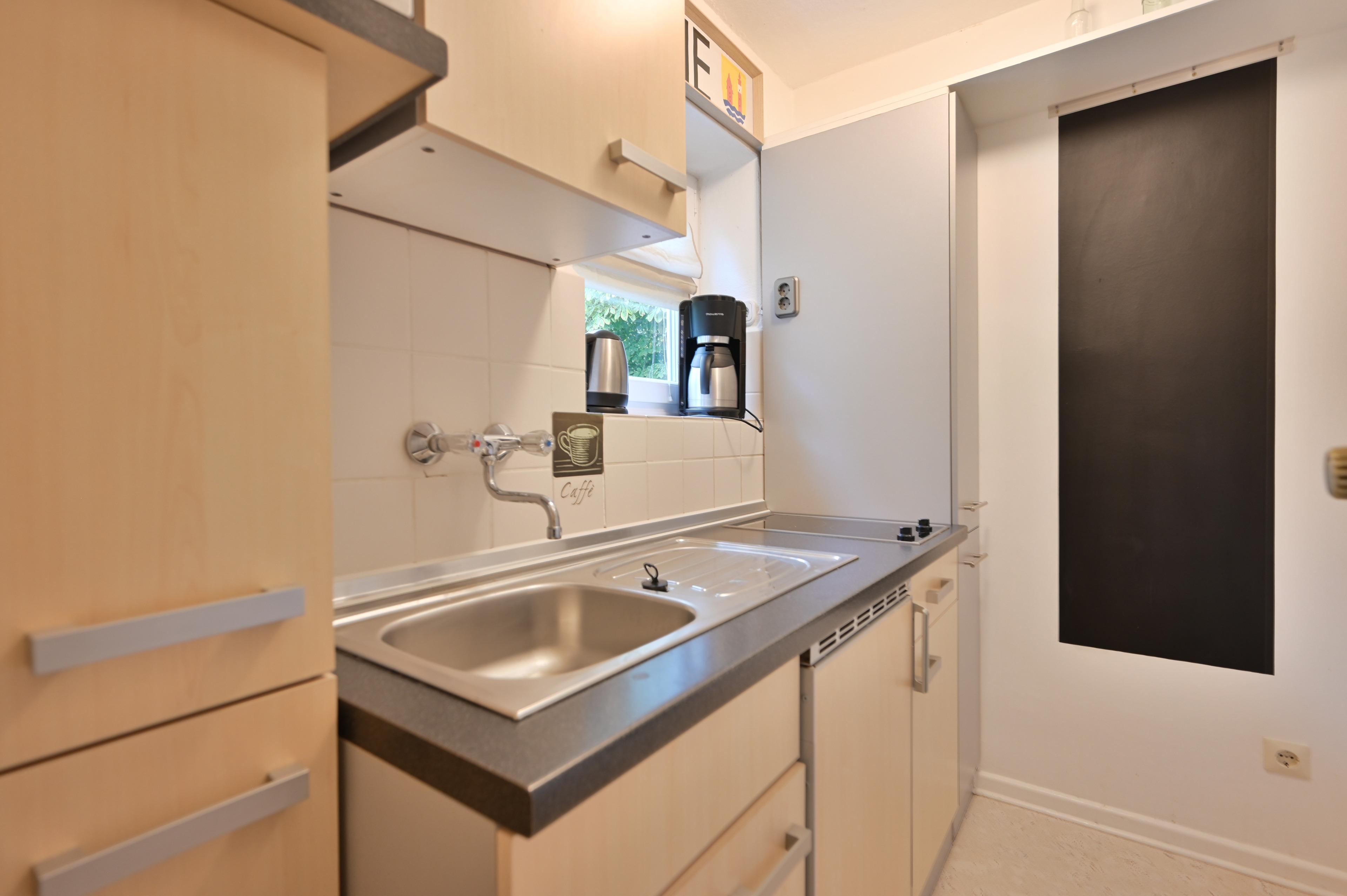 In herrlich ruhiger Kurparklage befindet sich diese kleine Ferienwohnung im 1. OG mit Süd-Westbalkon. Großes Gemeinschaftsgrundstück mit altem Baumbestand und Grillecke. Diese Wohnung ist über eine Außentreppe zu begehen. Der Gast betritt das 2-Zimmer-Apartement über den Balkon der Wohnung und gelangt dann zunächst in den Wohnraum, ausgestattet mit einer Schlafcouch für bis zu zwei Personen und mit TV-Ecke. Angrenzend gibt es eine separate, einfach ausgestattete Einbauküche, sowie ein Tageslichtbad. Etwas ungewöhnlich ist die Dusche mitten im Bad - nach beiden Seiten durch einen Duschvorhang abgeteilt. Ein separates kleines Schlafzimmer mit Doppelbett - Einstieg ins Bett vom Fußende aus - rundet das Angebot dieser Wohnung ab. Diese Wohnung ist für fitte, ältere Gäste auch geeignet. Vom Garten aus gelangt man über den Kurpark in wenigen Minuten zu Fuß zu den Einkaufsmöglichkeiten des täglichen Bedarfs und zum Strand. Eine preislich attraktive Wohnung für einen etwas längeren Aufenthalt in Dahme. Ein großzügiger Parkplatz ist für Ihren PKW (Wohnung 1604) vorhanden.