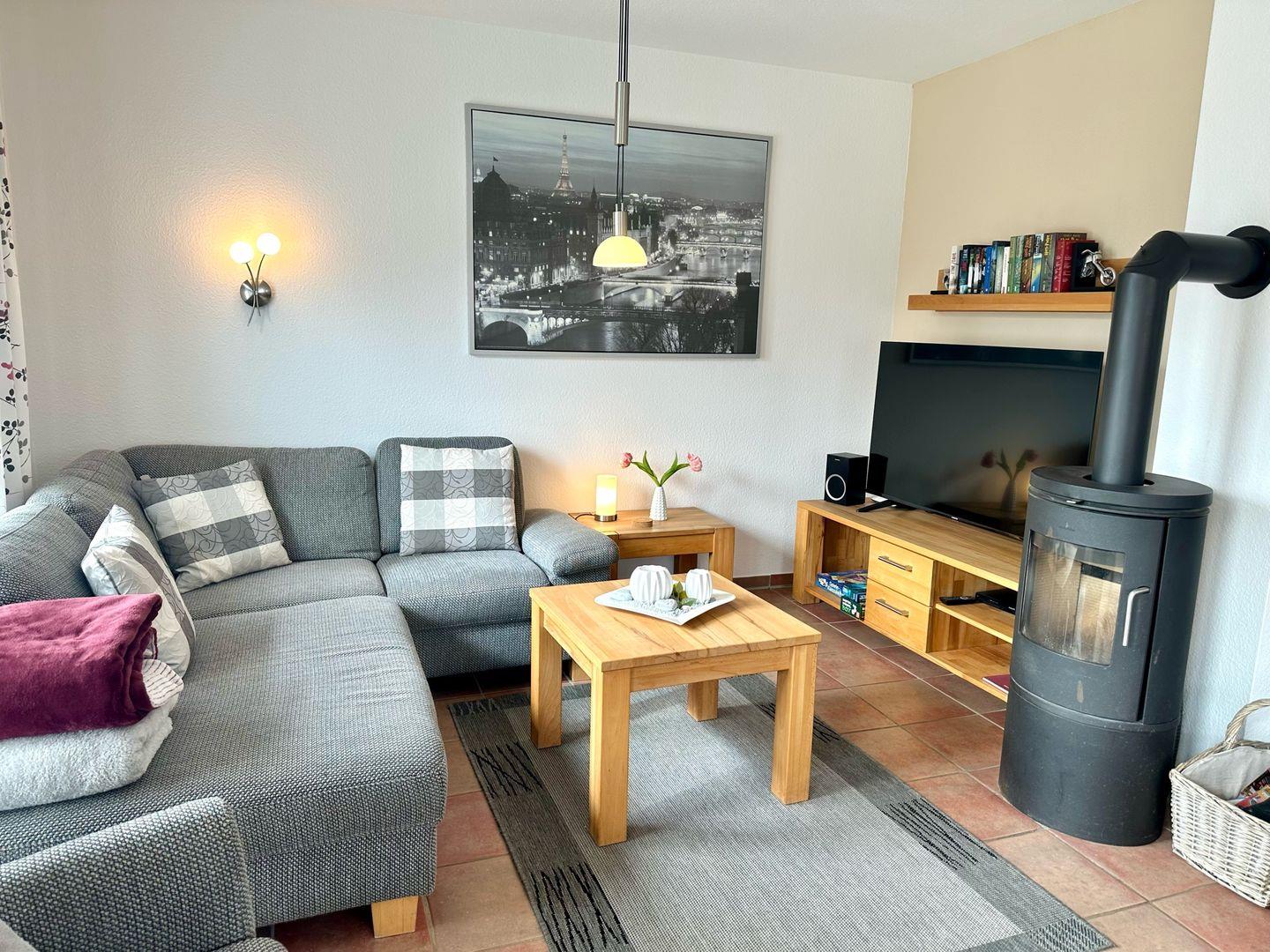 Das Haus befindet sich in einer ruhigen Sackgassenlage mit einer Wohnfläche von zirka 101 m². Drei Schlafzimmer im Obergeschoss: Schlafzimmer (1) mit Doppelbett, Schlafzimmer (2) zwei Einzelbetten, Schlafzimmer (3) Doppelbett sorgen für die erholsame Nachtruhe. Alle Betten haben die Abmessung 90x200 cm. Hier befindet sich auch ein Tageslichtvollbad und eine Raindance-Dusche. Das Wohn-/Esszimmer mit offener Küche und Kaminofen und das 2.Tageslichtduschbad mit ebenfalls bodentiefer Regendusche ergänzen die gute Ausstattung dieser schönen Doppelhaushälfte. Die Südterrasse mit Markise und der Garten (eingezäunt) mit Strandkorb erzeugen Ostseeflair pur. Am Haus stehen den Gästen zwei PKW-Stellplätze zur Verfügung. Der schöne Kaminofen darf gerne von Oktober bis April zum Einsatz kommen. Einziehen und Wohlfühlen. Liebe Hunde sind herzlich willkommen!