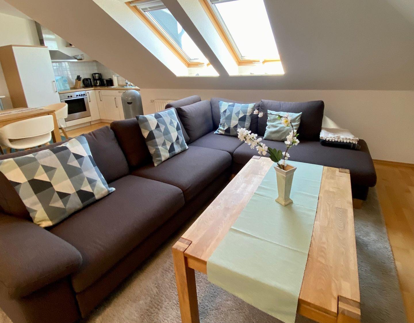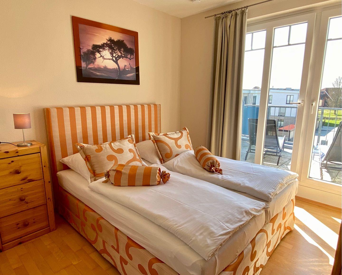 Willkommen .. in der schicken Penthouse-Wohnung mit zwei Dachterrassen - diese garantieren Ihnen zur Seeseite Sonne mit direktem Meerblick beim Frühstück und zur Westseite mit der Sonne bis zum Sundowner. Großzügige Raumaufteilung mit Echtholzparkett. Das gut aufgeteilte und lichtdurchflutete Wohn-/Esszimmer mit integrierter Küche - technisch hochwertig ausgestattet mit Ceranfeld, Geschirrspüler und mit Waschtrockner - bestimmt das schöne Ambiente. Die Wohnung verfügt über ein Schlafzimmer mit Doppelbett (2 x 90x200 cm) und ein zweites Schlafzimmer mit TV, Doppelbett (2 90x200 cm) und Schlafsofa (90x200 cm). Internet-WLAN-Anschluss kostenfrei. Ein Tageslicht-Vollbad, der Abstellraum in der Wohnung, sowie der PKW-Stellplatz in der Tiefgarage runden das Angebot ab. Dies und der Meerblick über die Ostsee lassen Träume wahr werden. Genießen Sie die Nähe zum Meer, welches Sie bereits beim morgendlichen Blick aus dem Fenster begrüßt. Sonne, Weitsicht und Stil - eine Wohnung für Genießer. Gehobenes Wohnen, eine vielfältige Gastronomie und ein mildes Klima machen Dahme zu Ihrem idealen Urlaubsort. Hier finden Sie das ganze Jahr Inspiration mit Meeresbrise.