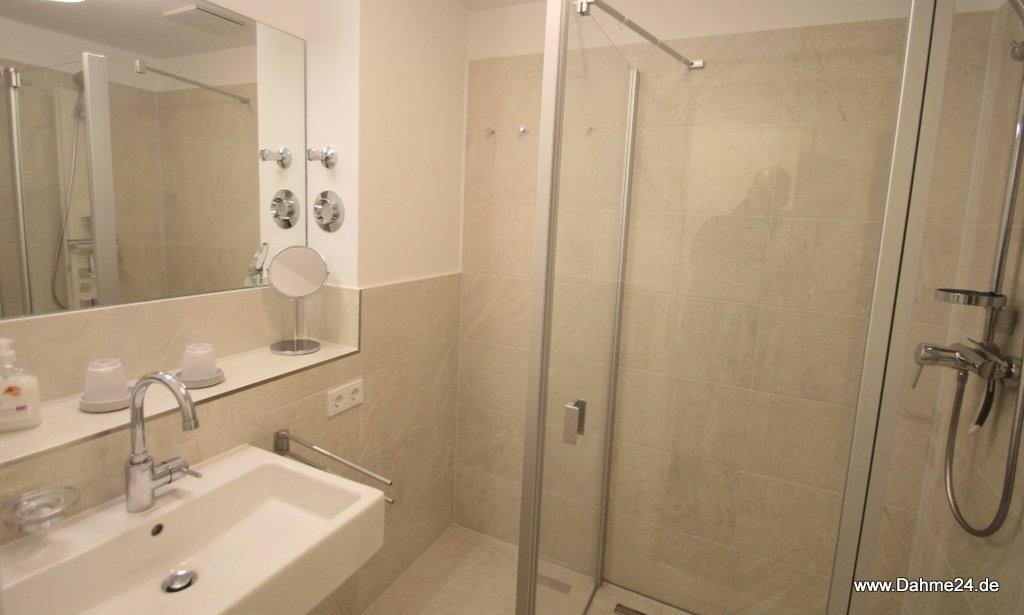 Ruhig gelegene, barrierefreie drei Zimmer Ferienwohnung mit Westterrasse. Eine sehr geschmackvolle Möblierung mit gehobenem Komfort prägen das Gesamtbild dieser Parterrewohnung mit Schlafmöglichkeiten für bis zu 4 Personen. Ein Schlafzimmer mit Doppelbett (2 x 90x200 cm) und ein Schlafzimmer mit zwei Einzelbetten (90x200 cm) jeweils mit Verdunkelungsvorhängen ermöglichen einen entspannten Urlaub. Die Wohnung verfügt über einen PKW-Stellplatz und eine eigene Waschmaschine. Dieses schöne Mehrfamilienhaus hat eine herrliche Kurparklage. Die kurze Entfernung zum Hauptstrand von Dahme wird auch Sie begeistern. Abstellmöglichkeiten für Ihre Fahrräder sind auf dem Grundstück vorhanden.