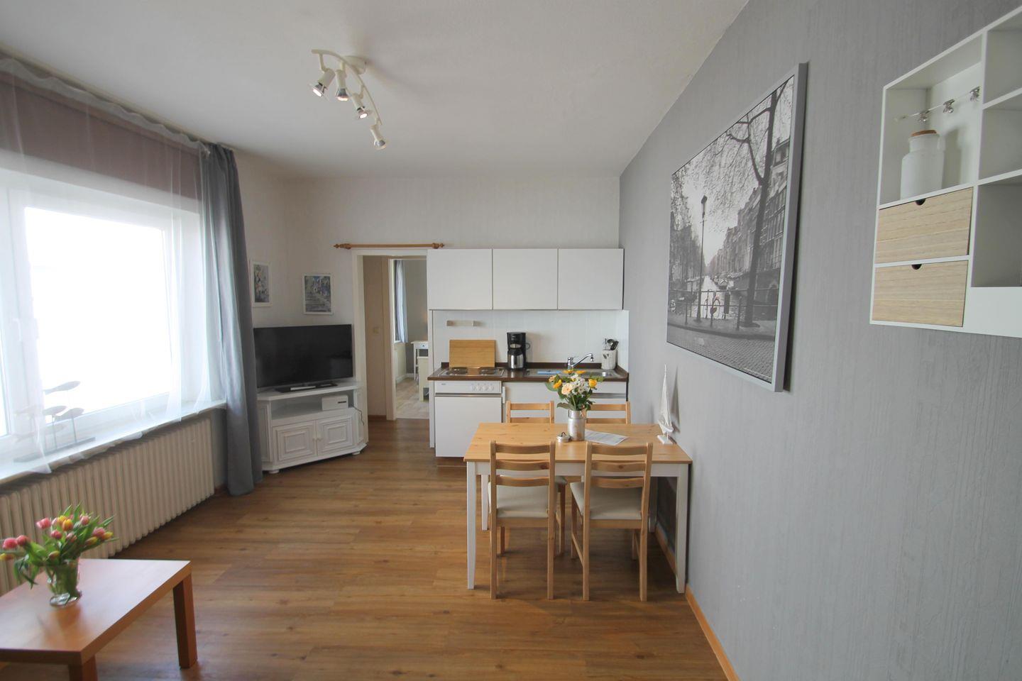 Diese Wohnung mit einer Wohnfläche von zirka 53m² bietet alles auf einer Ebene für bis zu vier Personen. Die Wohnung ist aufgeteilt in ein Wohn-/Esszimmer mit TV und einer Küchenzeile, zwei Schlafzimmer mit jeweils einem Doppelbett und einem Tageslichtduschbad. Zur Wohnung gehört ein PKW-Stellplatz, dieser befindet sich rechts hinter dem Haus und eine Sitzgelegenheit auf der Gemeinschaftsrasenfläche hinter dem Haus. W-LAN steht Ihnen kostenfrei zur Verfügung. Der Strand ist zu Fuß nach ca. 150 m in Höhe der Seebrücke zu erreichen.