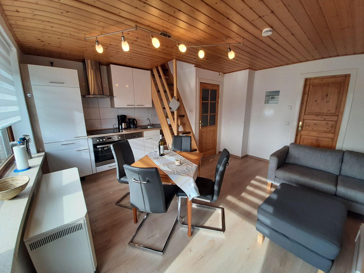 Strandnahe Ferienwohnung direkt am Deich im 1. OG eines 3-Familienhauses für 2-4 Personen. Zum Strand sind es nur ca. 50 Meter zu Fuß und der PKW-Stellplatz befindet sich direkt auf dem Grundstück. Die Wohnung verfügt über zwei Schlafzimmer - Achtung das Doppelbett befindet sich im Spitzboden und ist nur über eine steile Raumspartreppe erreichbar. Ein zweites Schlafzimmer mit zwei Einzelbetten gehört ebenfalls zu dieser Wohnung. Das Bad wurde im Jahr 2022 komplett modernisiert. Die Küche ist offen in den Wohnraum integriert. Der möblierte Balkon ist nach Südwest ausgerichtet und daher sehr sonnig und bietet Ihnen einen seitlichen Meerblick. Der über Eck gehende Balkon gibt ein wenig Meerblick frei - auch das wird dem Gast gefallen. Diese Wohnung ist gemütlich eingerichtet und auch eine 4-köpfige Familie wird sich hier wohlfühlen.