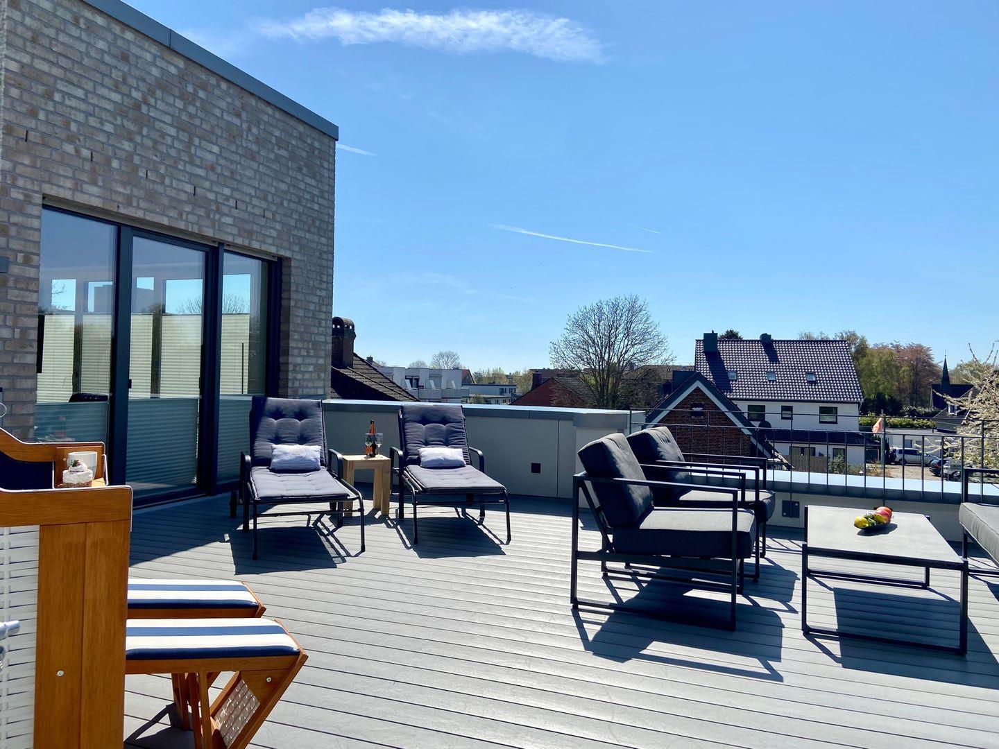 Penthousewohnung der Premiumklasse. Hier finden Sie die Kombination von einem modernen Lifestyle mit Antiquitäten. Tolle drei Zimmer Neubauwohnung mit einer großen Dachterrasse. Lounge-Möbel, Strandkorb, 2 Sonnenliegen...