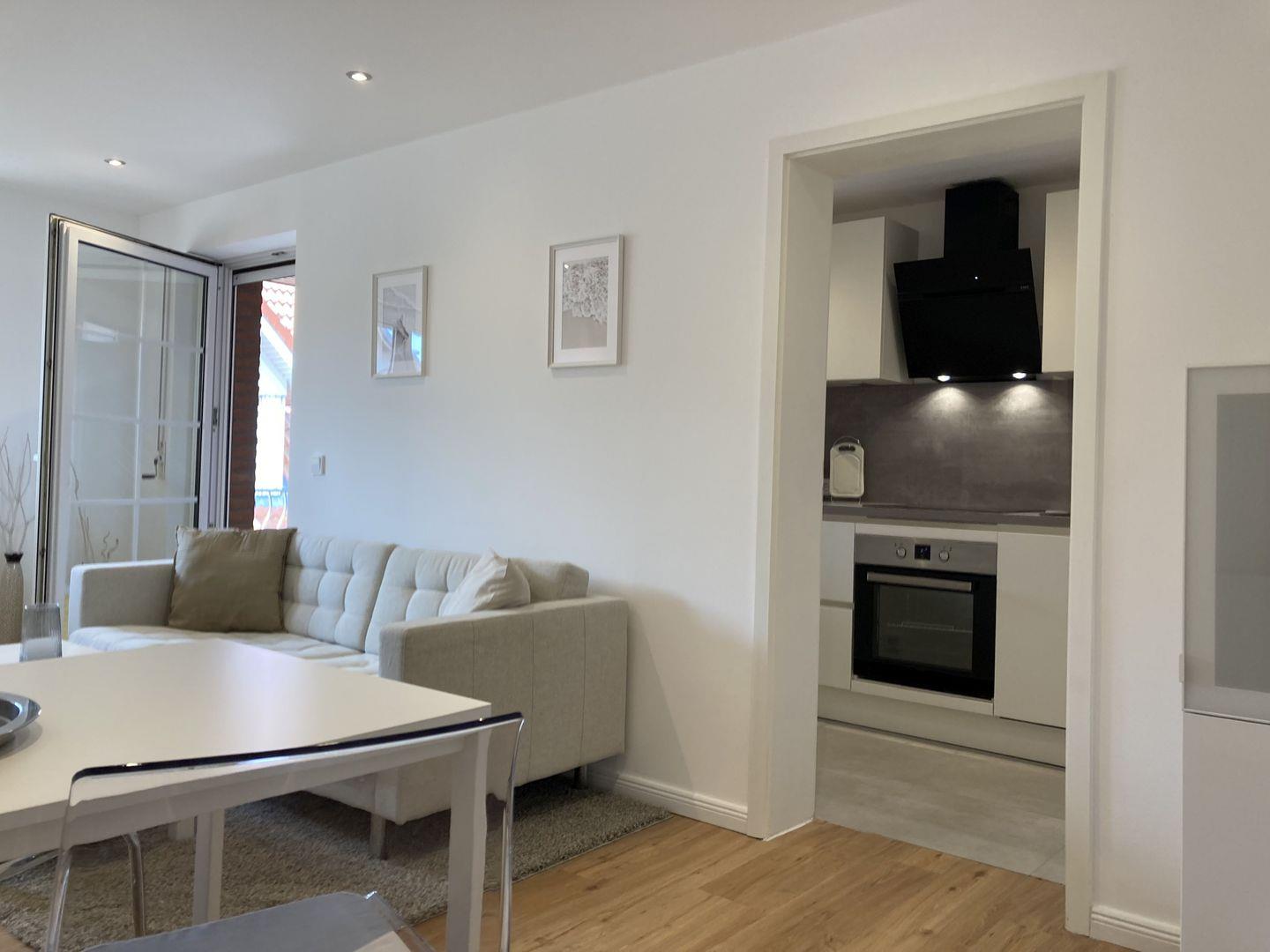 - Wohn- und Küchenbereich durch Tresen abgeteilt