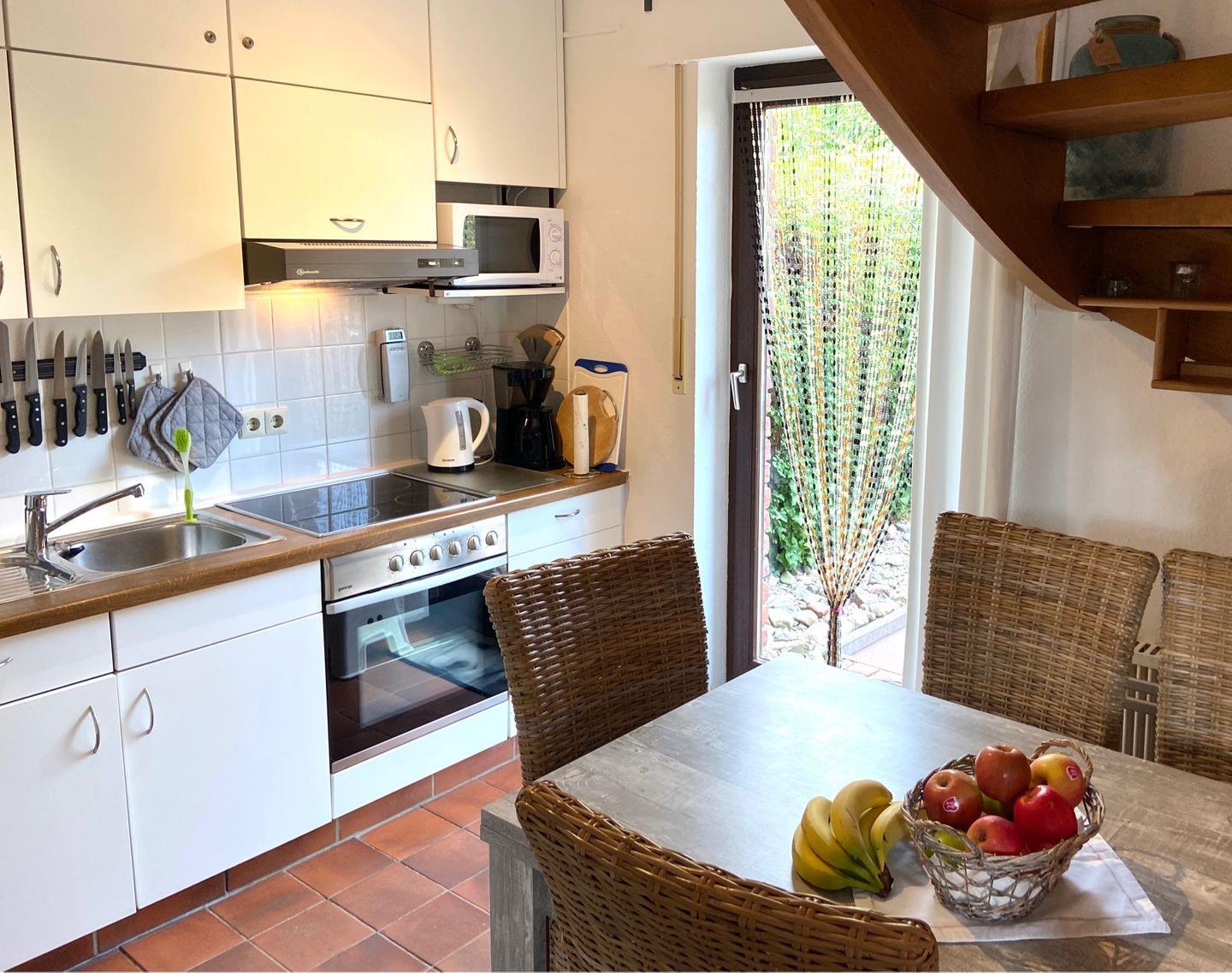 Im Erdgeschoss verfügt das Haus über eine offene Küche, einen gemütlich eingerichteten Wohnbereich, sowie ein separates WC.