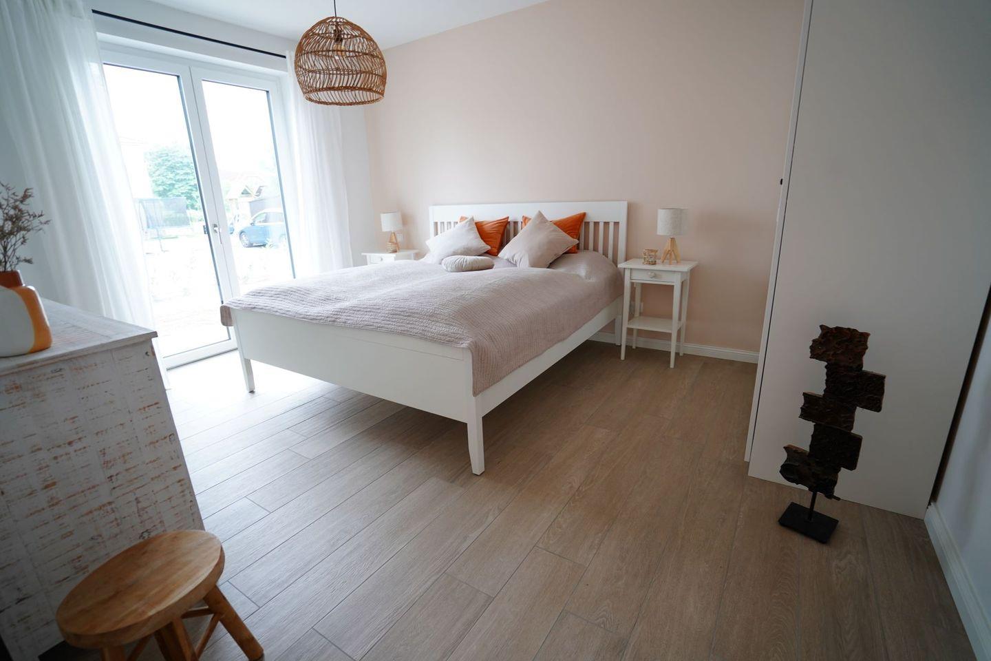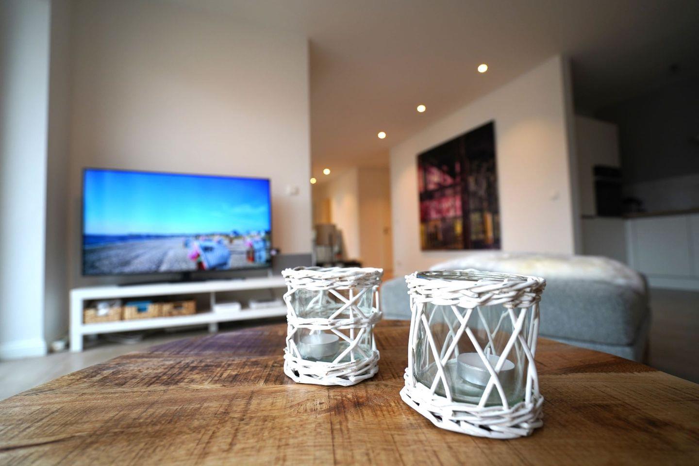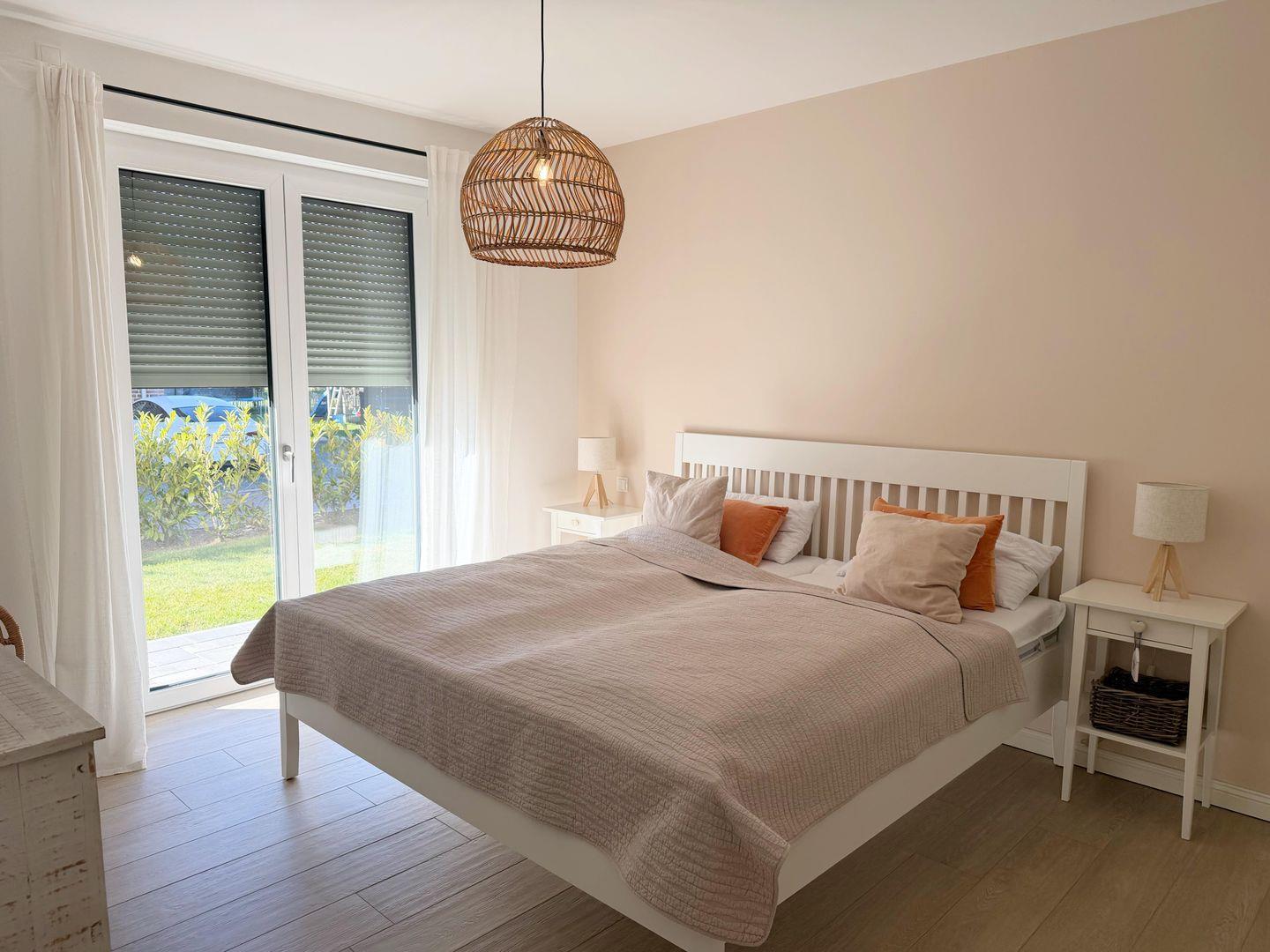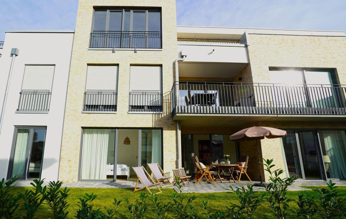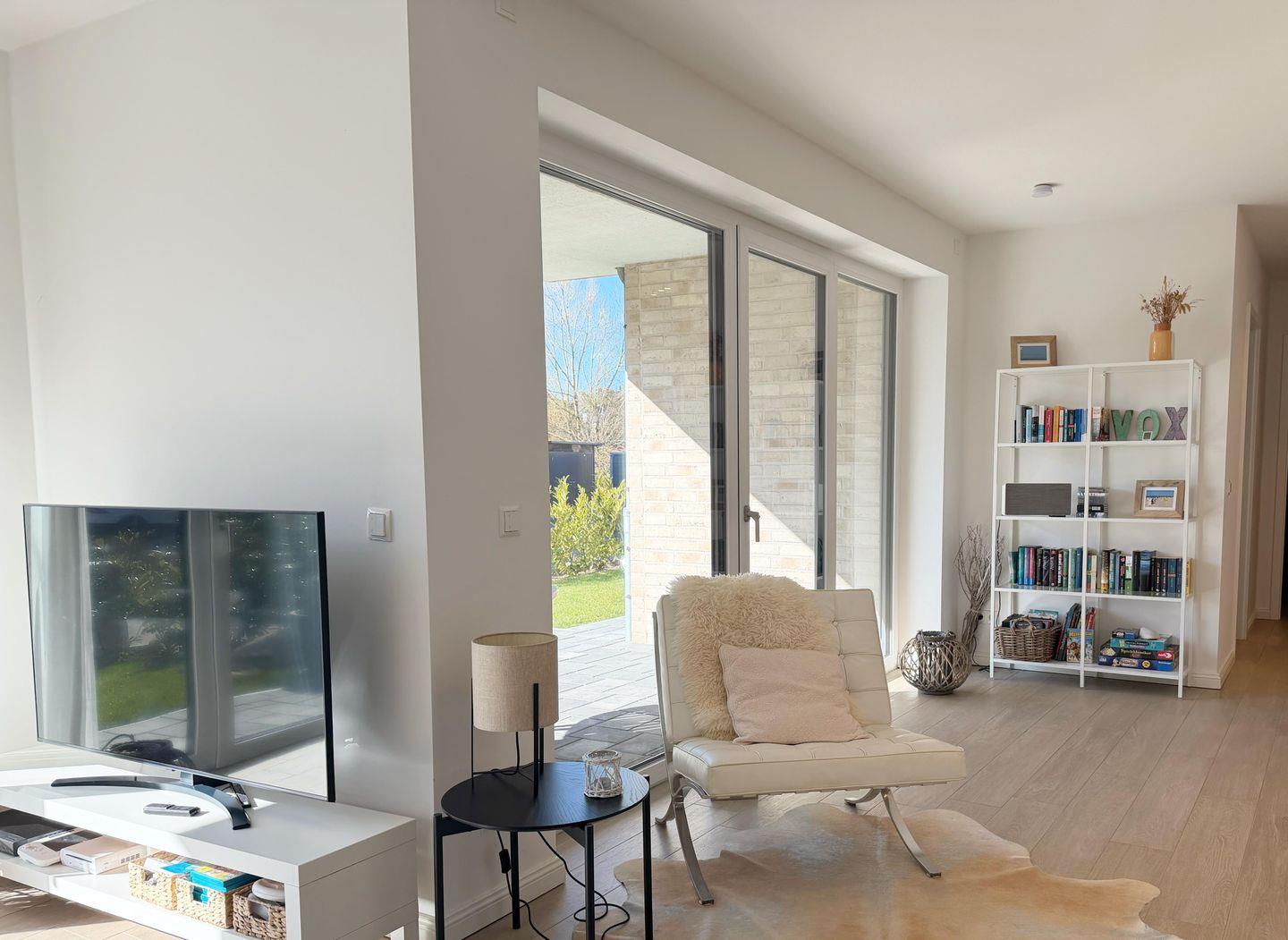 Die moderne, stilvoll eingerichtete Wohnung lässt keinen Wunsch offen. Es gibt einen großzügigen Wohnraum mit TV, Wii mit einer Auswahl an diversen Spielen, Radio mit CD, Bücher und WLAN. Die offene, moderne Einbauküche mit großzügigem Essbereich genügt höchsten Ansprüchen und verfügt über Nespresso-Maschine, Backofen, Spülmaschine und Induktionskochfeld. Zwei separate Schlafzimmer - eines mit TV - mit hochwertigen Doppelbetten sowie ein modernes Bad mit großem, ebenerdigen Duschbereich und Fußbodenheizung stehen zur Verfügung. Zusätzlich gibt es ein Gäste-WC. Die große Terrasse ist mit Esstisch und Stühlen ausgestattet und teilweise überdacht. Ein fester PKW-Stellplatz ist für Sie reserviert. Eine Wallbox kann gegen Gebühr genutzt werden. Ein Fahrradabstellraum, ein kleiner Abstellraum in der Wohnung und eine Waschmaschine sind ebenfalls für Ihren Komfort vorhanden. Ein Kinderreisebett sowie einen Hochstuhl finden Sie in der Wohnung. Bei dieser Wohnung handelt es sich um ein Nichtraucherobjekt. Haustiere sind nicht erlaubt!
