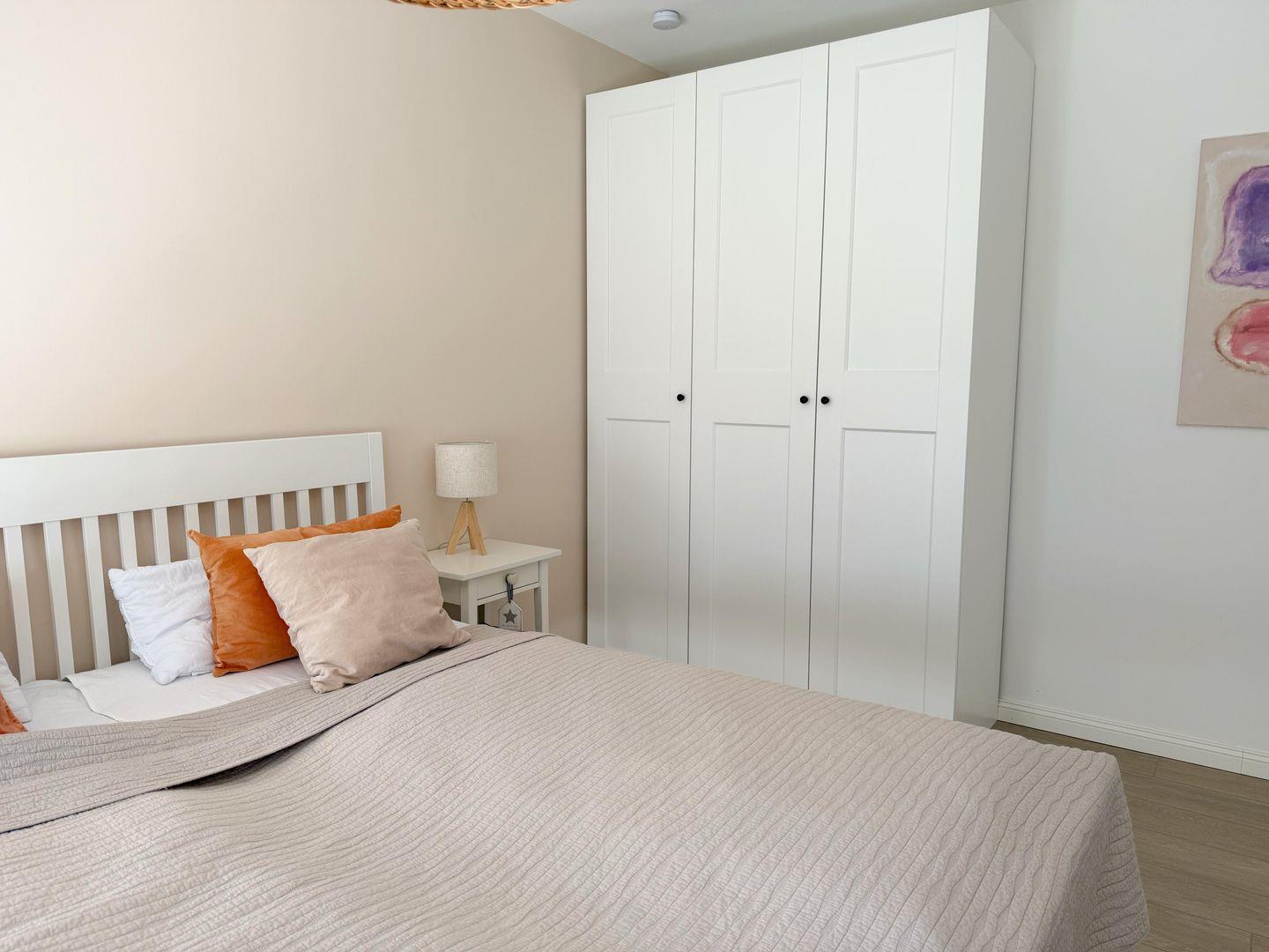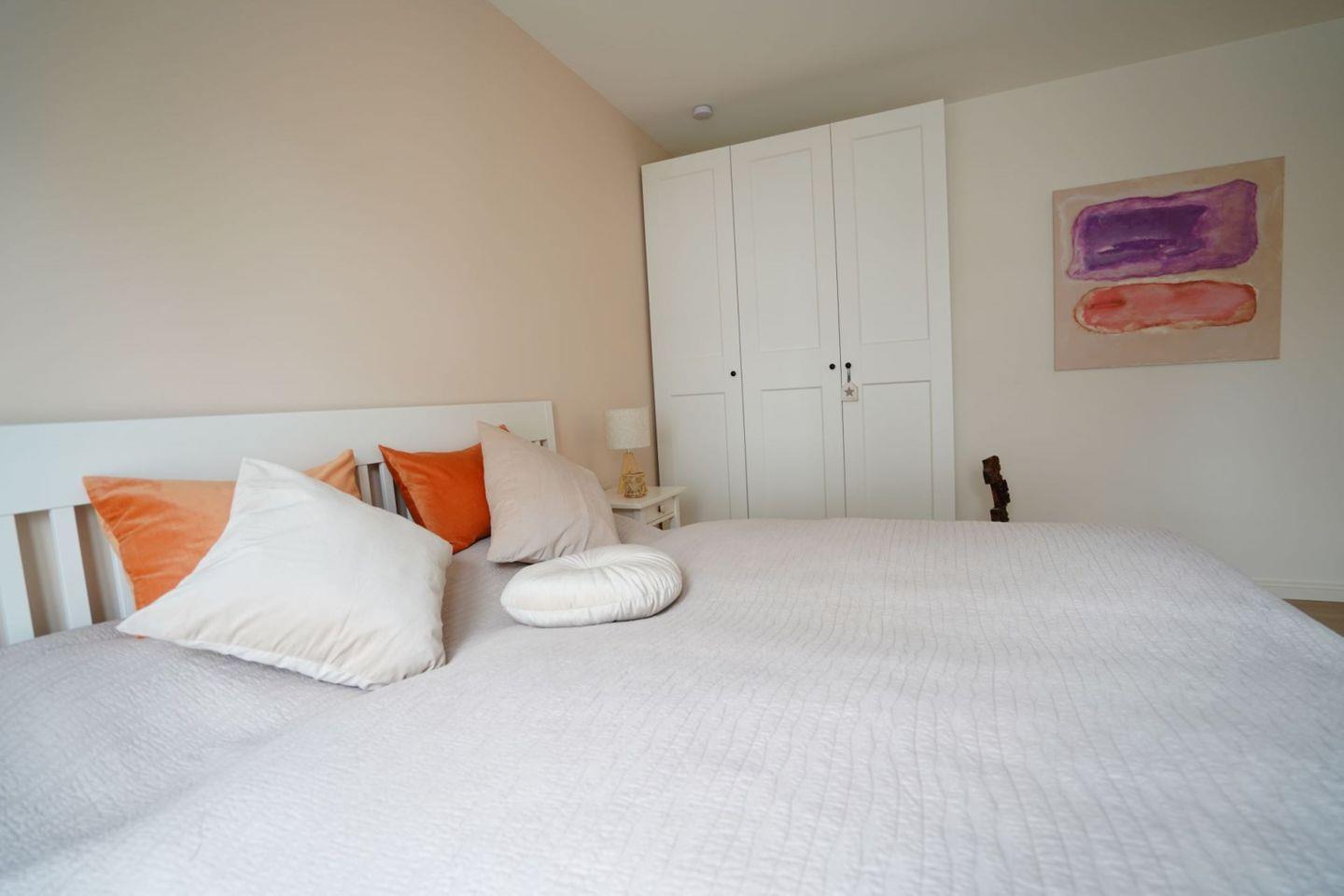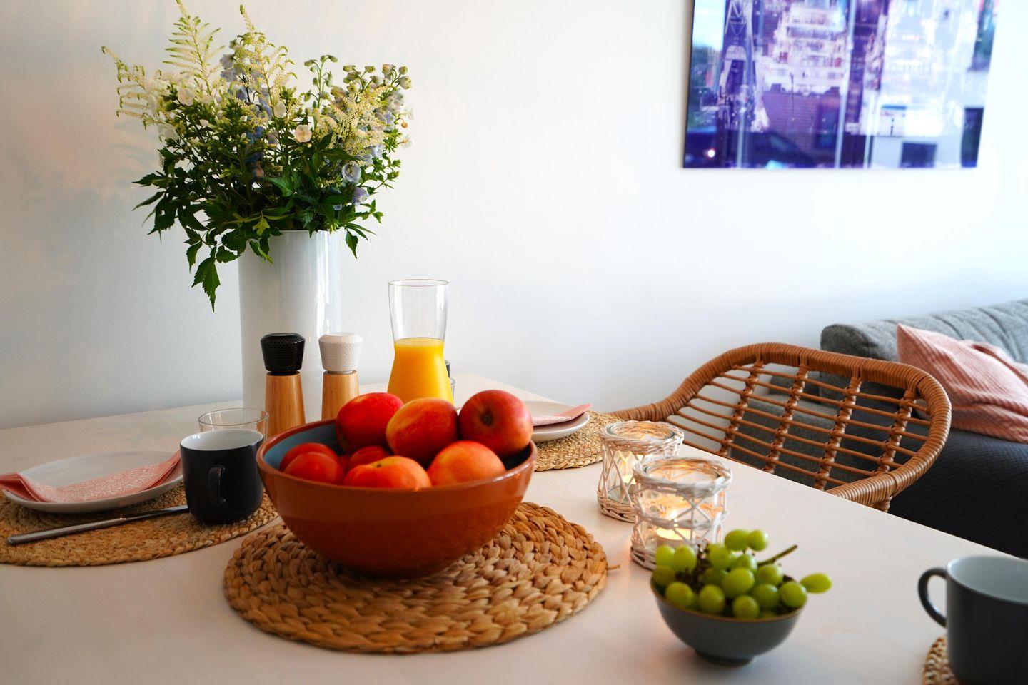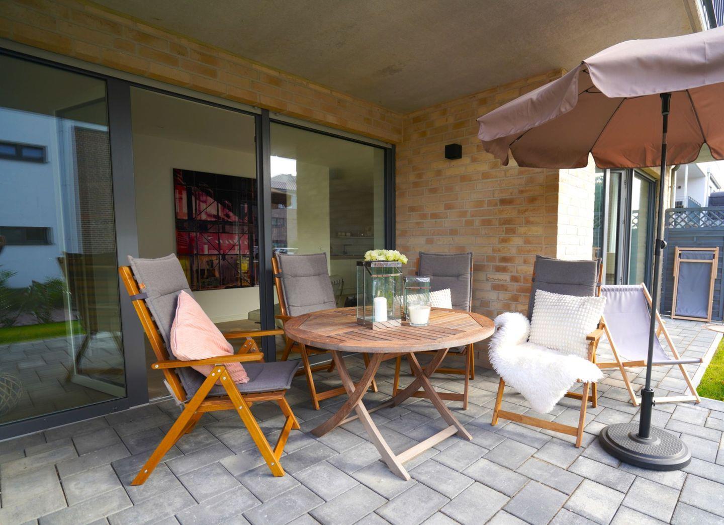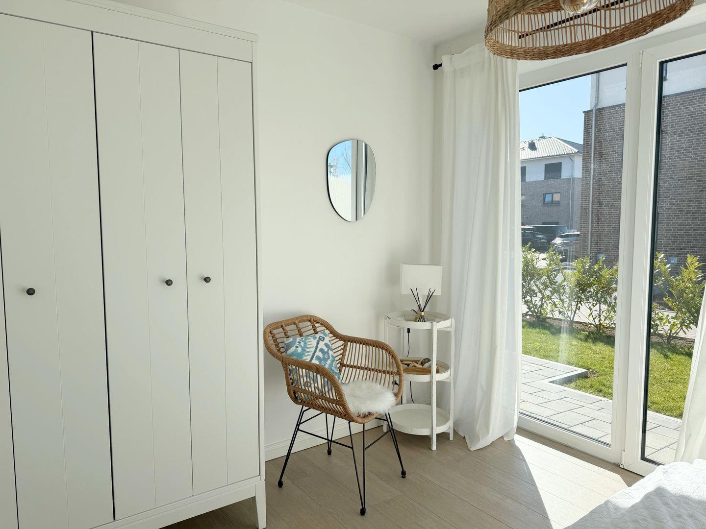 Die moderne, stilvoll eingerichtete Wohnung lässt keinen Wunsch offen. Es gibt einen großzügigen Wohnraum mit TV, Wii mit einer Auswahl an diversen Spielen, Radio mit CD, Bücher und WLAN. Die offene, moderne Einbauküche mit großzügigem Essbereich genügt höchsten Ansprüchen und verfügt über Nespresso-Maschine, Backofen, Spülmaschine und Induktionskochfeld. Zwei separate Schlafzimmer - eines mit TV - mit hochwertigen Doppelbetten sowie ein modernes Bad mit großem, ebenerdigen Duschbereich und Fußbodenheizung stehen zur Verfügung. Zusätzlich gibt es ein Gäste-WC. Die große Terrasse ist mit Esstisch und Stühlen ausgestattet und teilweise überdacht. Ein fester PKW-Stellplatz ist für Sie reserviert. Eine Wallbox kann gegen Gebühr genutzt werden. Ein Fahrradabstellraum, ein kleiner Abstellraum in der Wohnung und eine Waschmaschine sind ebenfalls für Ihren Komfort vorhanden. Ein Kinderreisebett sowie einen Hochstuhl finden Sie in der Wohnung. Bei dieser Wohnung handelt es sich um ein Nichtraucherobjekt. Haustiere sind nicht erlaubt!