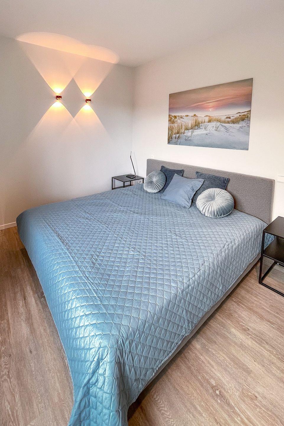 Bis zu 4 Personen können sich in dieser modernen Neubau-Wohnung erholen. 2 Schlafzimmer, Süd-West-Terrasse mit Loungesofa, Waschmaschine, PKW-Stellplatz.
