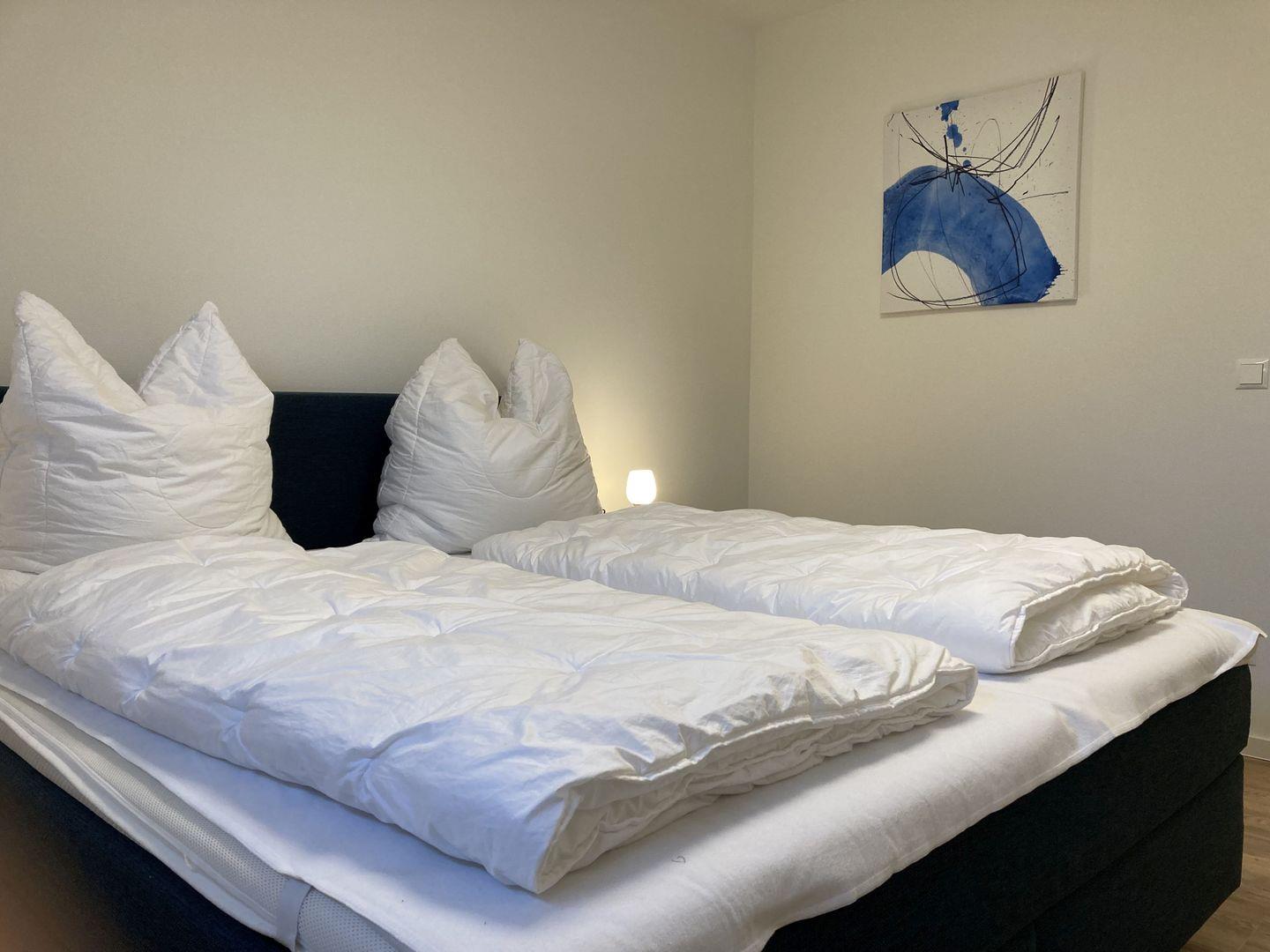 - Schlafzimmer mit hochwertigen Boxspringbett (durchgängige Matratze 180 cm x 200 cm) Kleiderschrank und TV