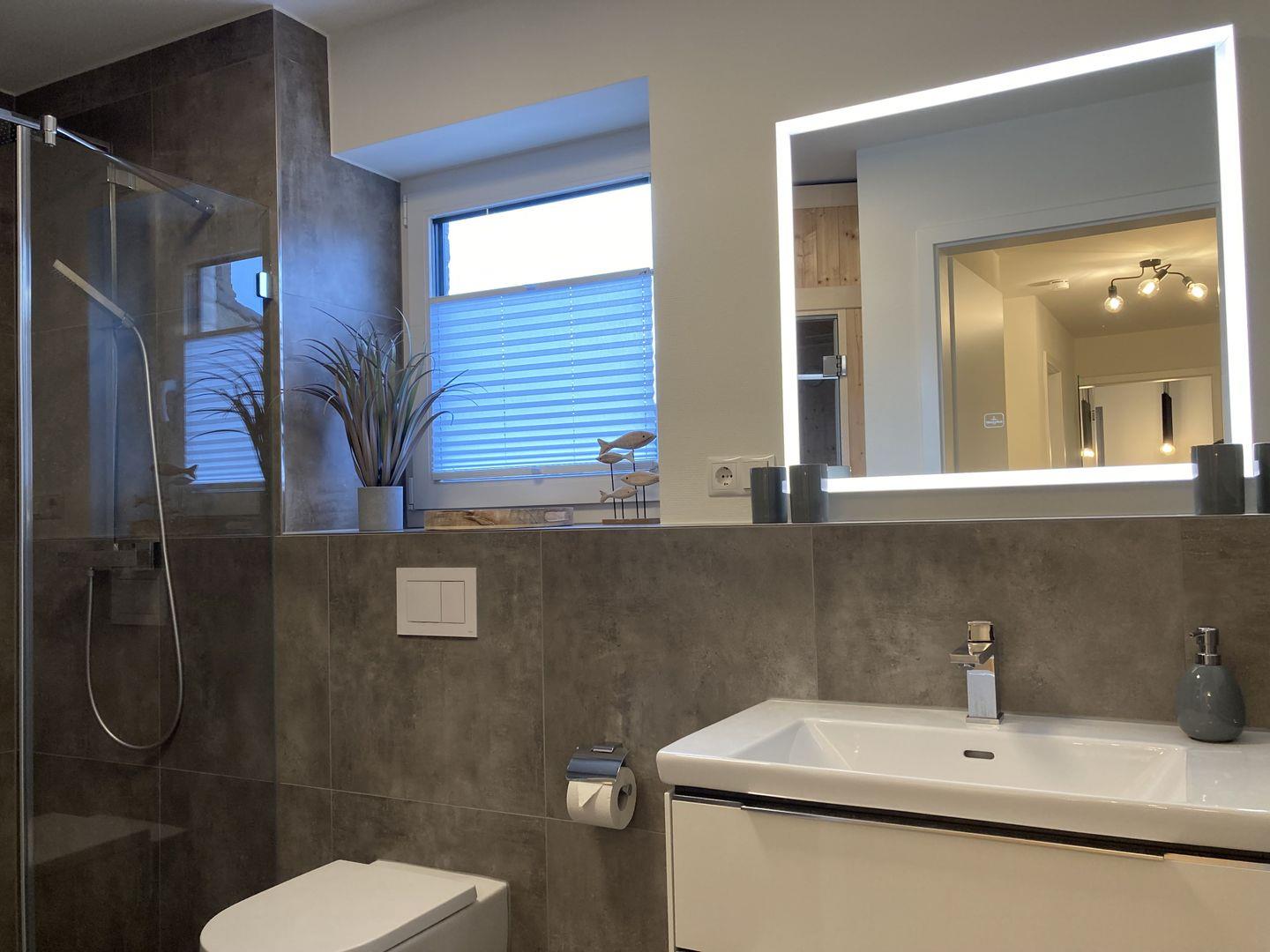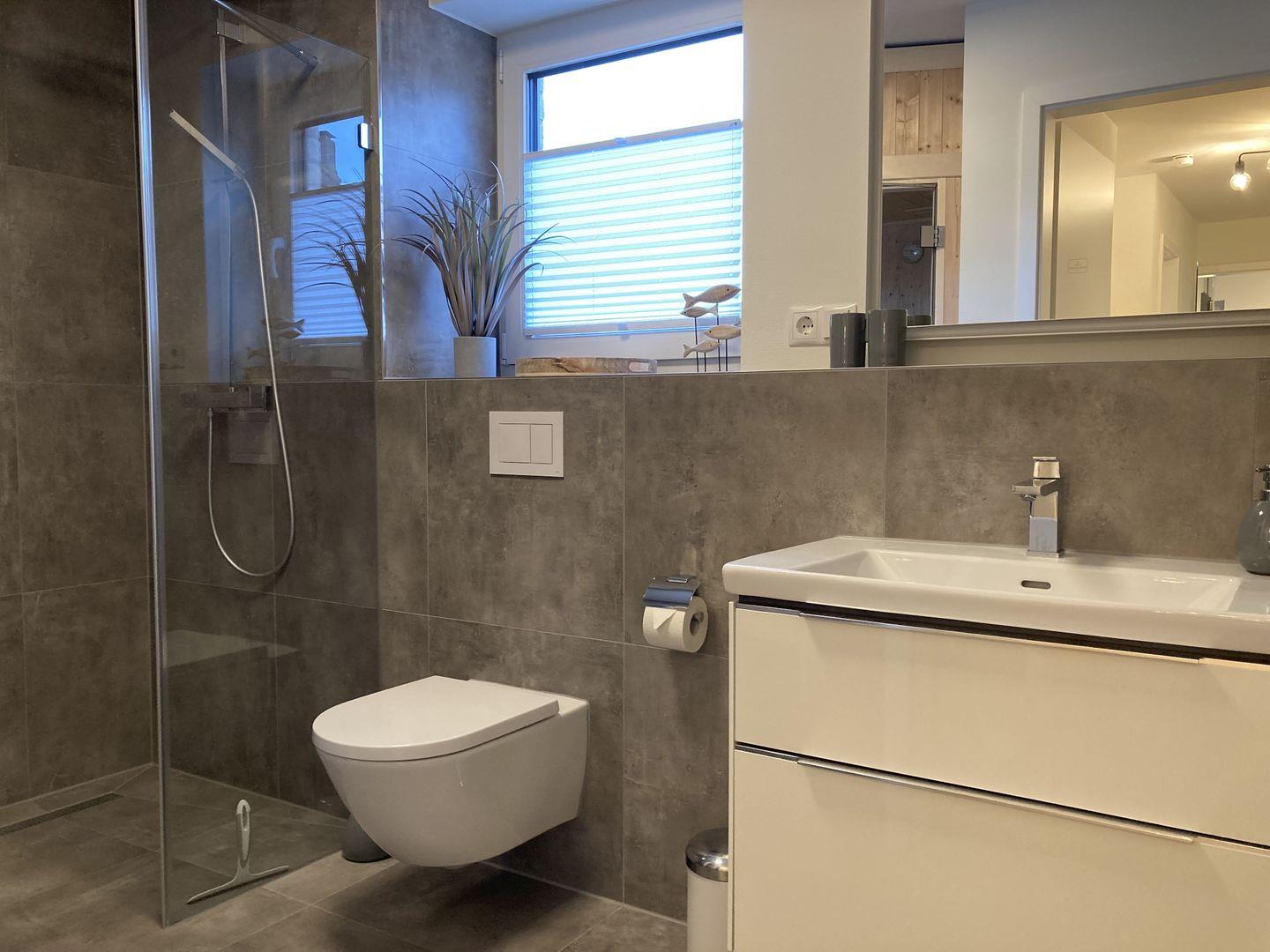 - geräumiges tageslichthelles Bad mit bodentiefer Dusche und Sauna