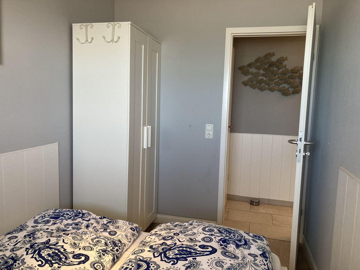 - separater Schlafraum mit Doppelbett (160 cm breit, 2 Einzelmatratzen 80x200 cm) und Kleiderschrank