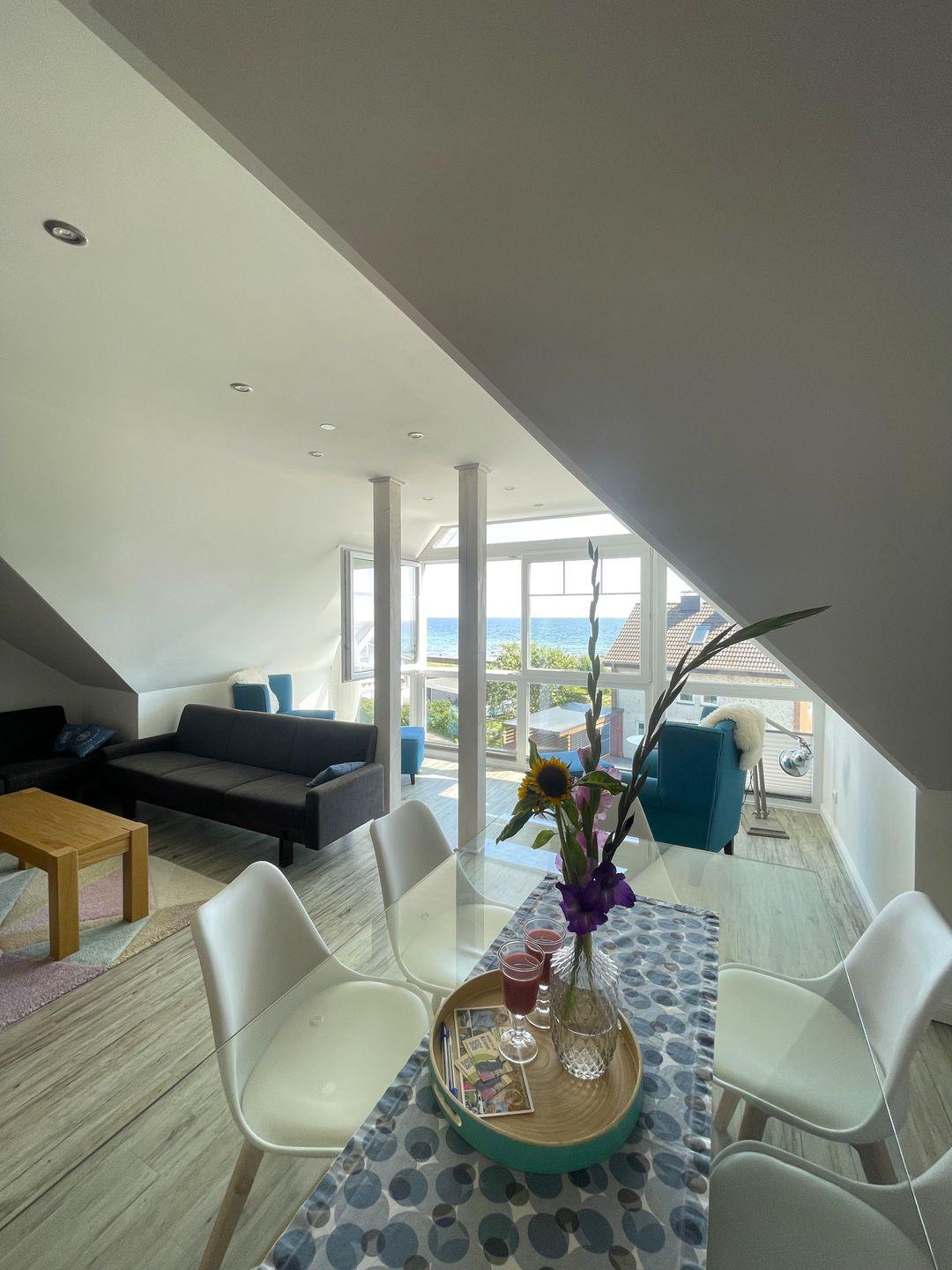 (Wohnfläche: 100 m², Schlafmöglichkeiten: 8, WLAN: ja, Sauna: ja, Whirlwanne: ja, Strandnähe: ca. 80 m, Meerblick aus 4 Schlafzimmern: ja, Gäste WC: ja, Parkplatz: 1)