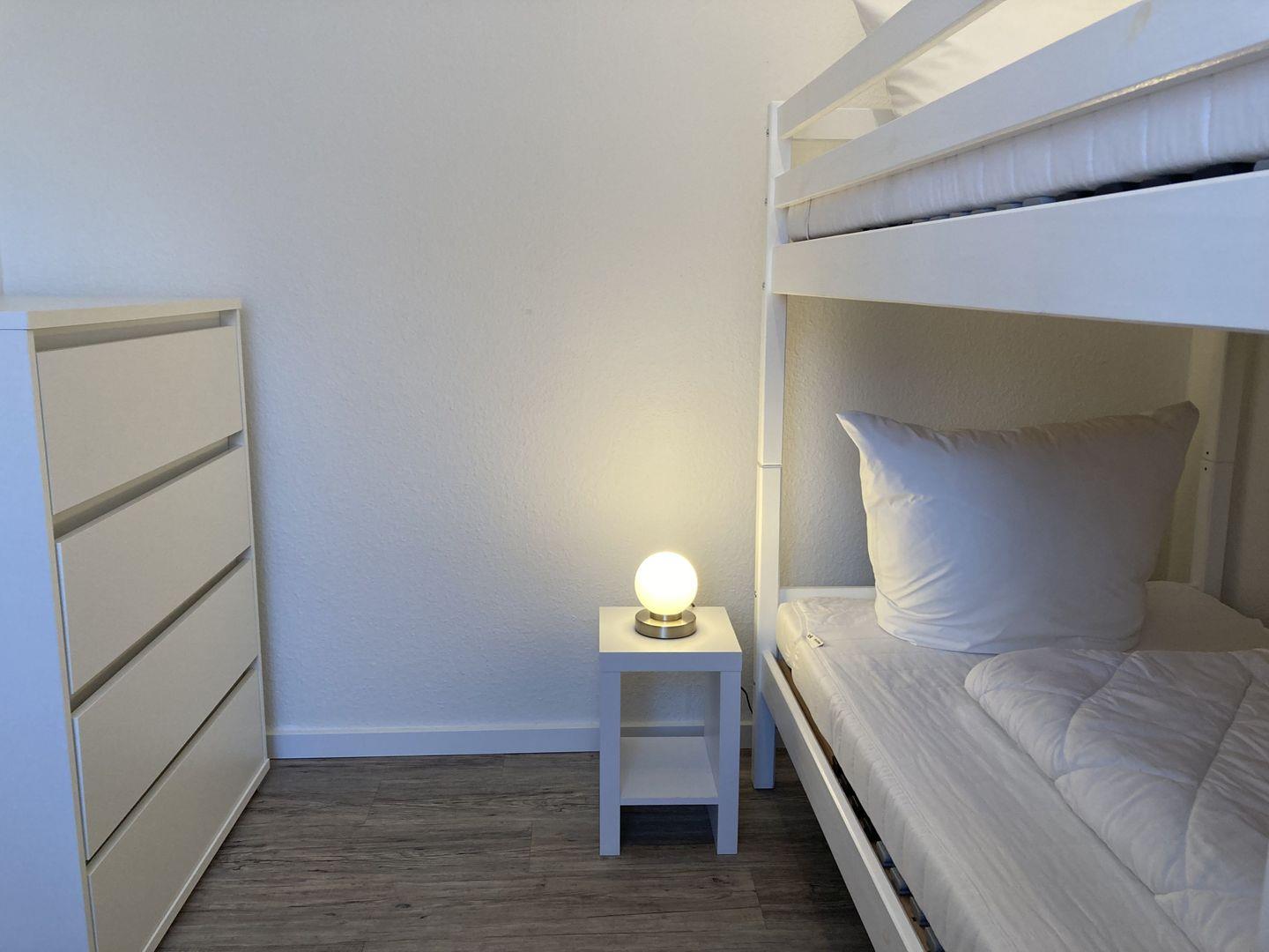 - Schlafzimmer mit Etagenbett und Kleiderschrank