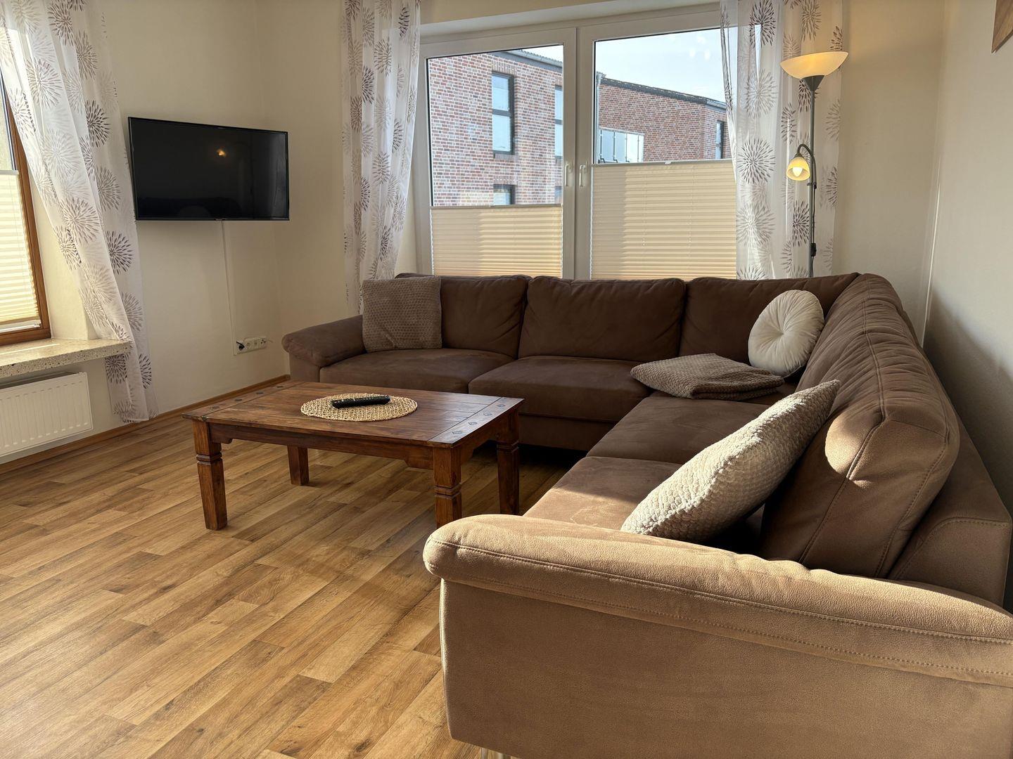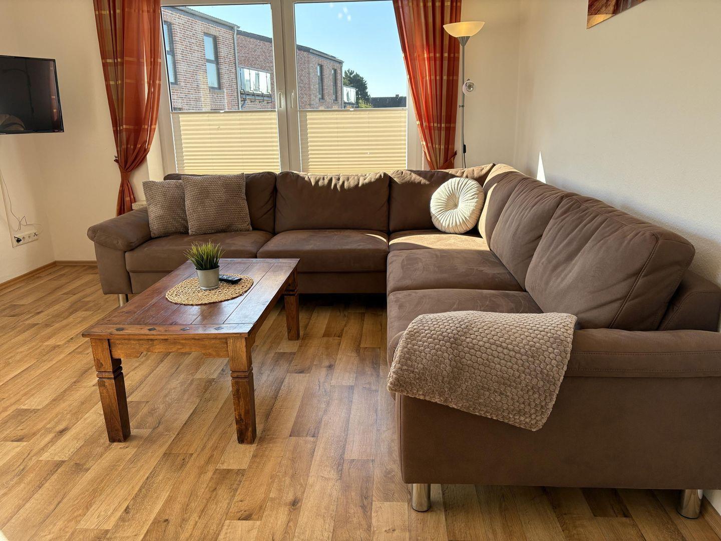 - Wohn-, Esszimmer mit integrierter voll ausgestatteter Küche mit Geschirrspüler und Backofen
