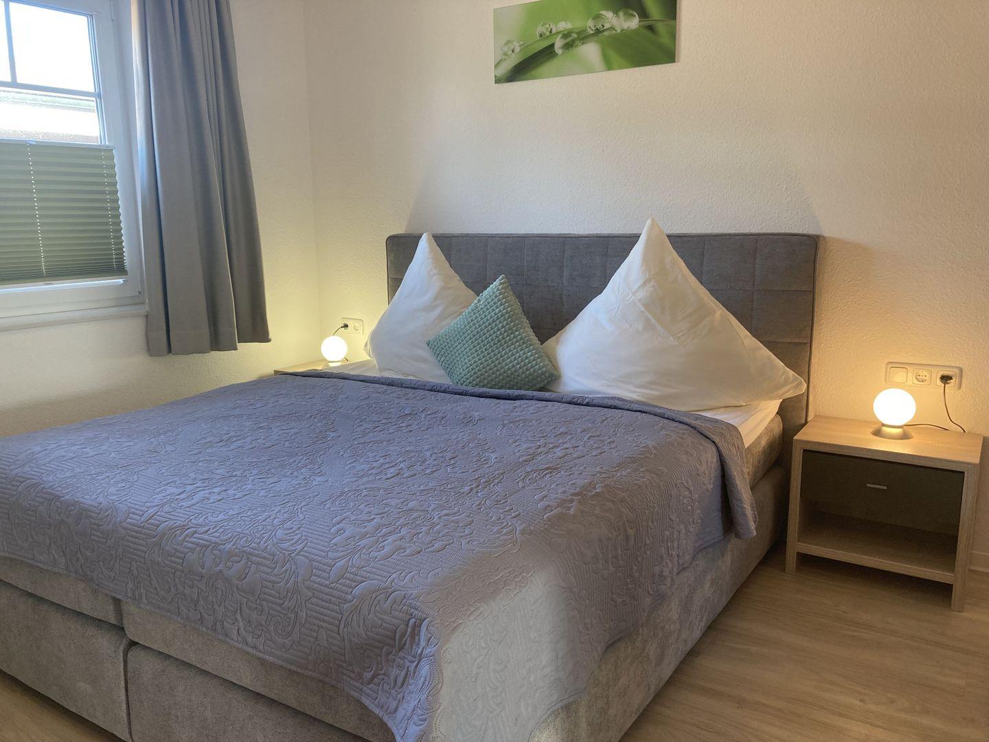- Schlafzimmer mit Doppelbett und Kleiderschrank