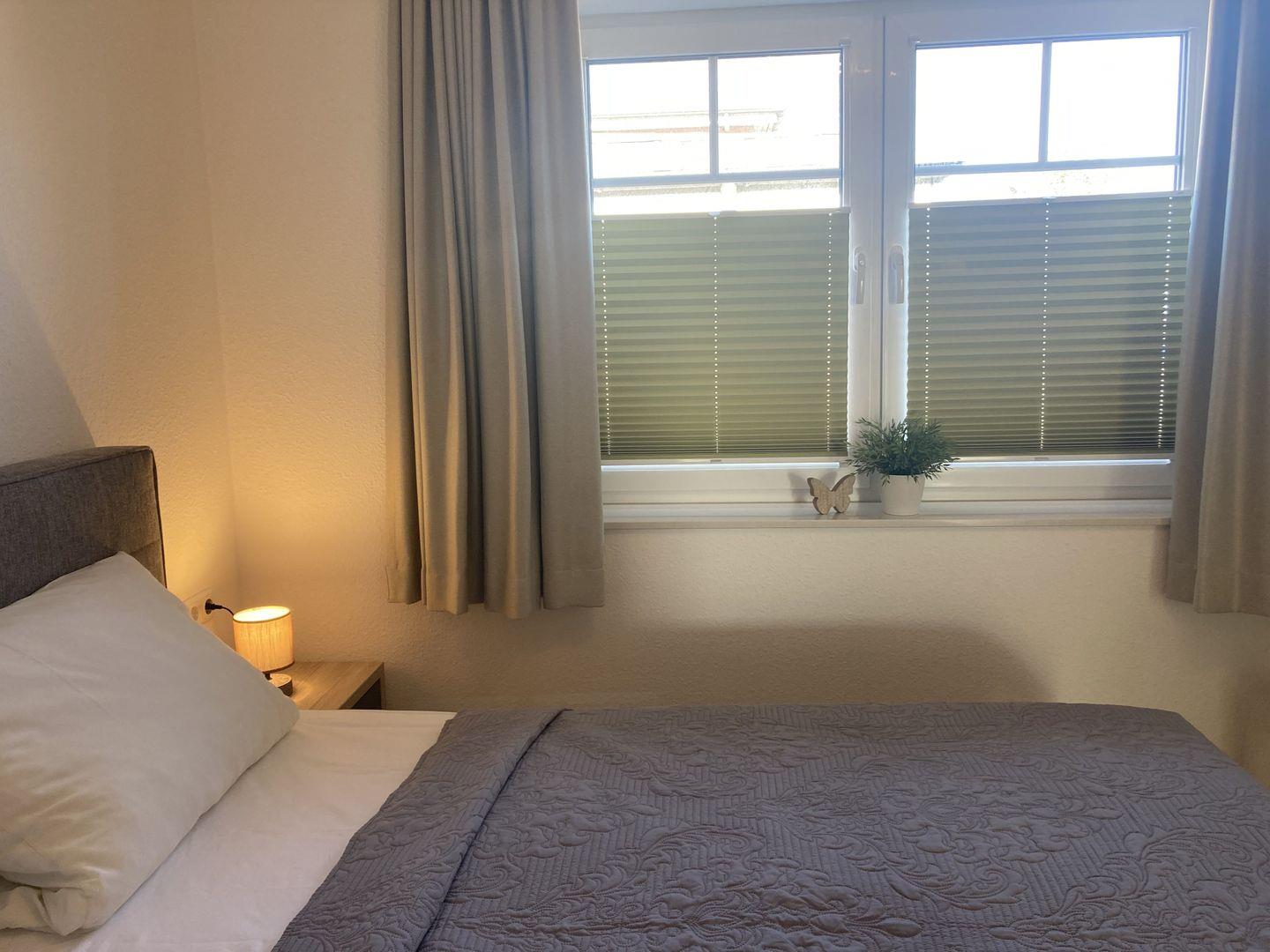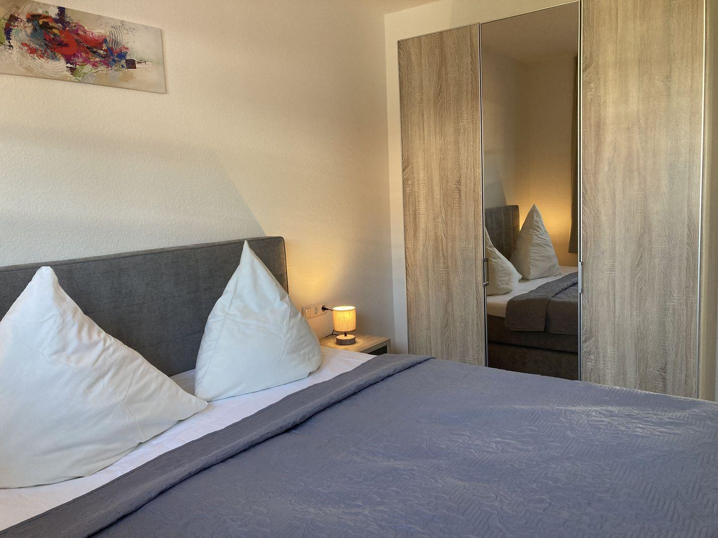 - Schlafzimmer mit Doppelbett und Kleiderschrank