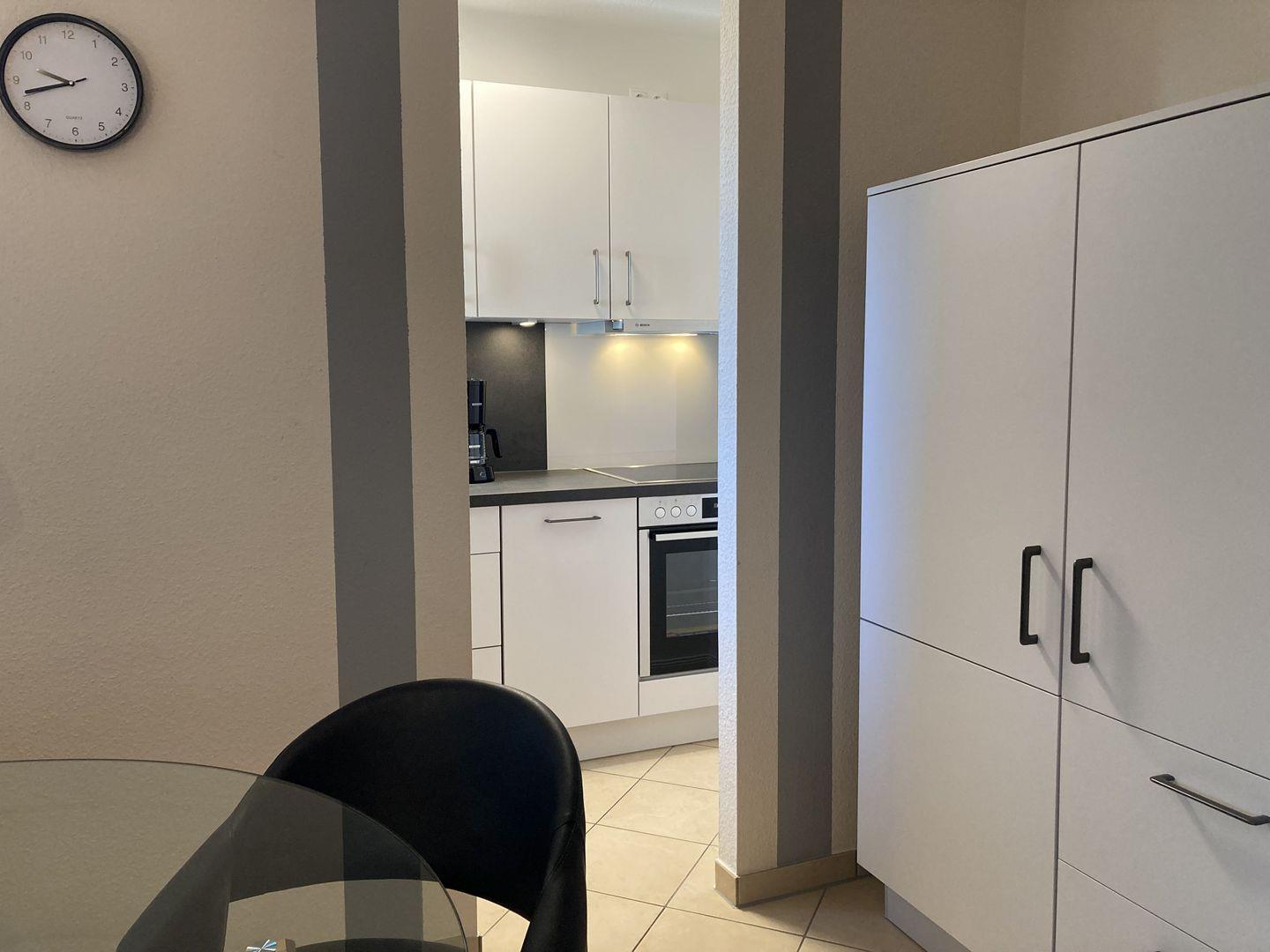 - vom Wohnzimmer räumlich abgegrenzte Küche
