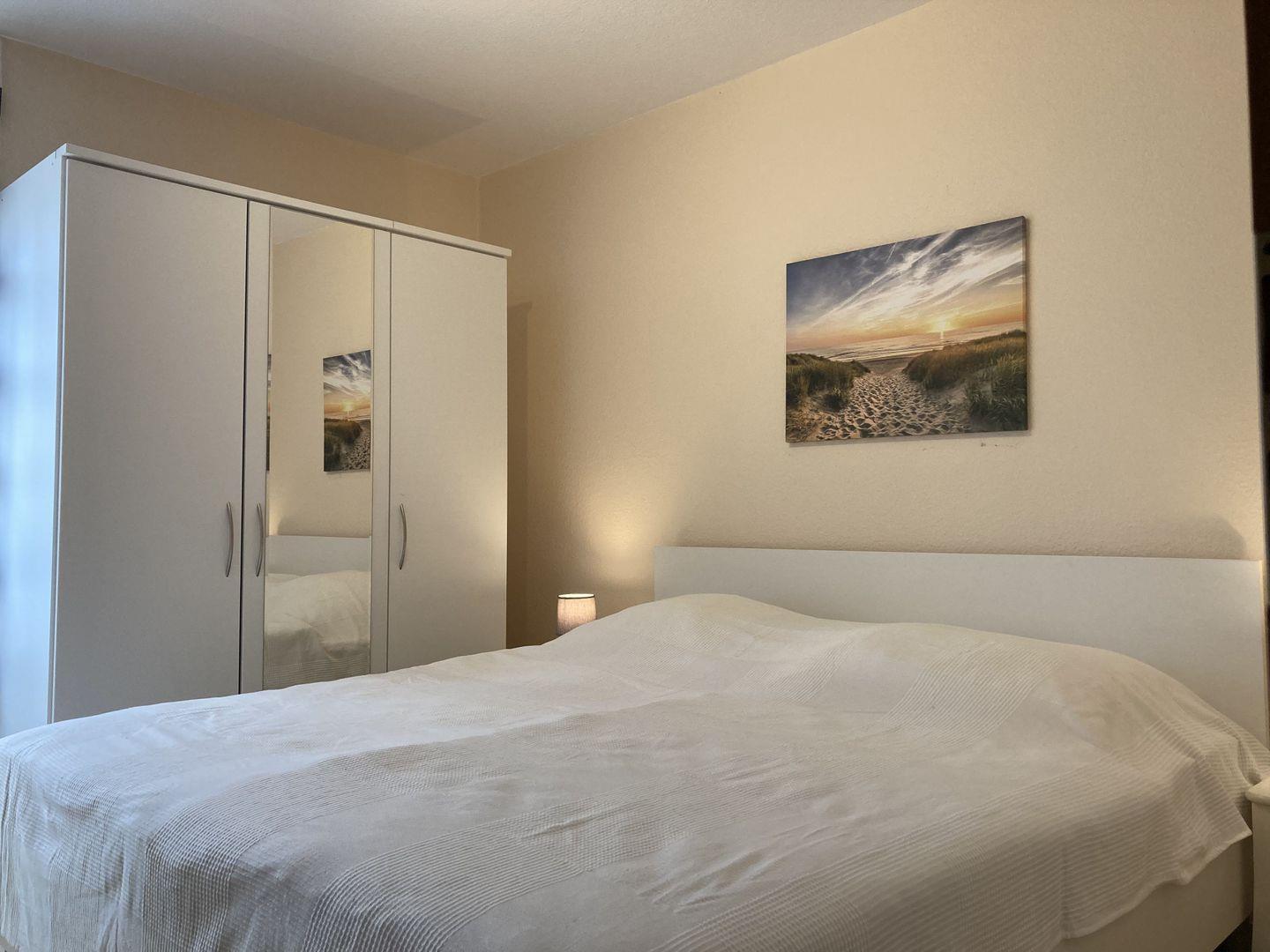 - Schlafzimmer mit Doppelbett (2 Matratzen á 90x200 cm) und Kleiderschrank