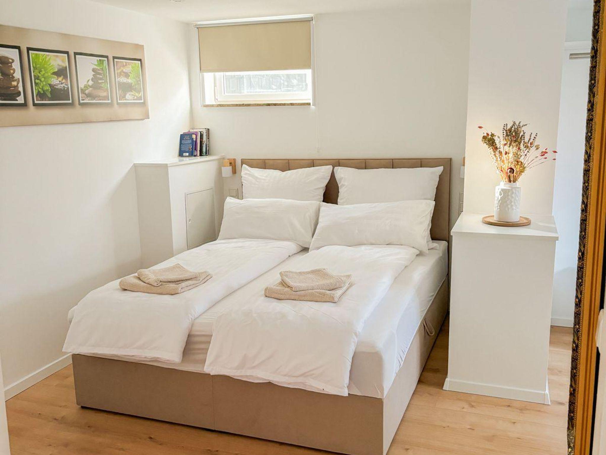 Das gemütliche Boxspringbett und die ruhige Umgebung versprechen einen guten Schlaf.