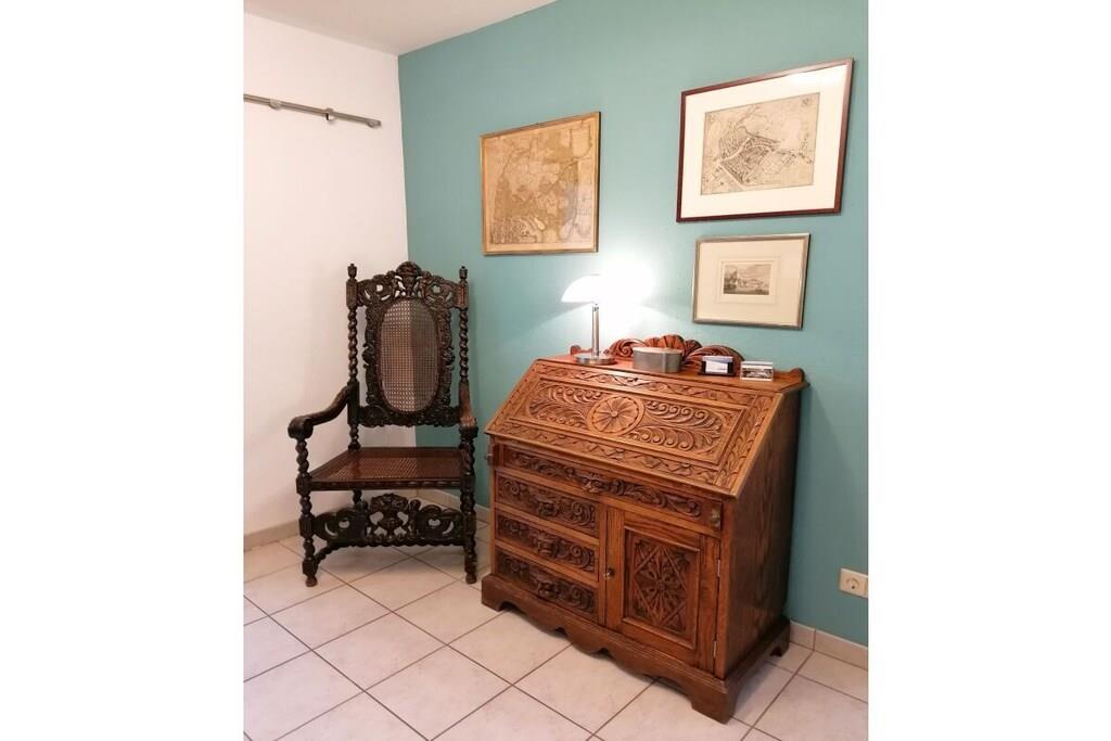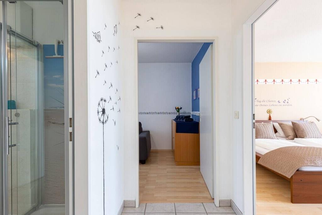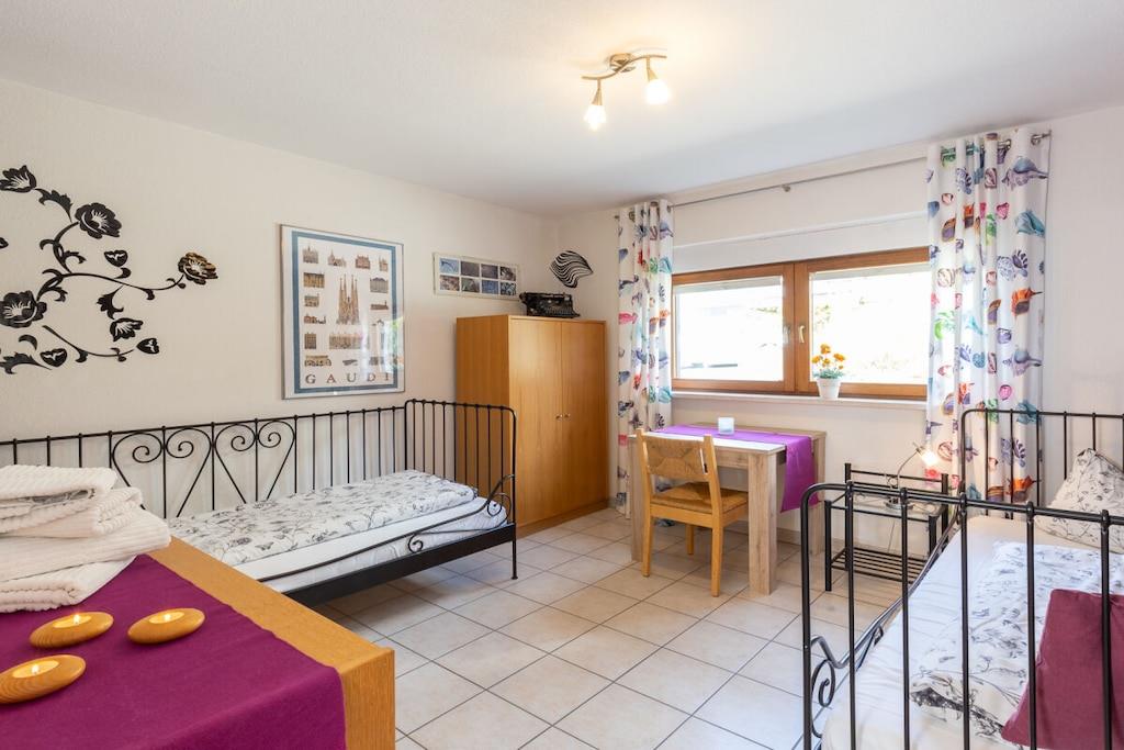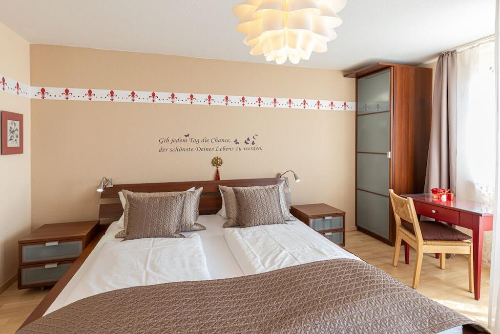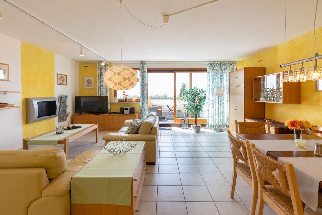 Denne ferieleiligheten på 4 rom og 100 kvadratmeter ligger på en høyde over Meersburg, og tilbyr rolige omgivelser med uhindret utsikt over innsjøen og de sveitsiske fjellene. Barneseng er tilgjengelig gratis på forespørsel, gulvvarme, 3 romslige soverom, en stor stue med peis og spiseplass, flatskjerm-TV, DVD-spiller, CD-spiller, spill, bøker og kart. Wi-Fi er tilgjengelig. Et fullt utstyrt kjøkken har keramisk koketopp, stekeovn, kjøleskap med fryseboks, brødrister, mikrobølgeovn, kaffe- og espressomaskin og oppvaskmaskin. Te, kaffe og krydder er tilgjengelig. Et dusjrom med separat toalett er også tilgjengelig.