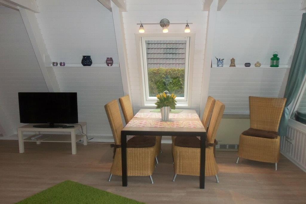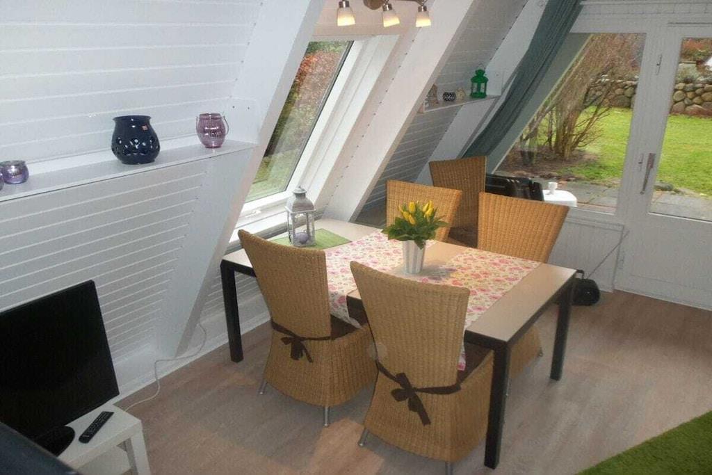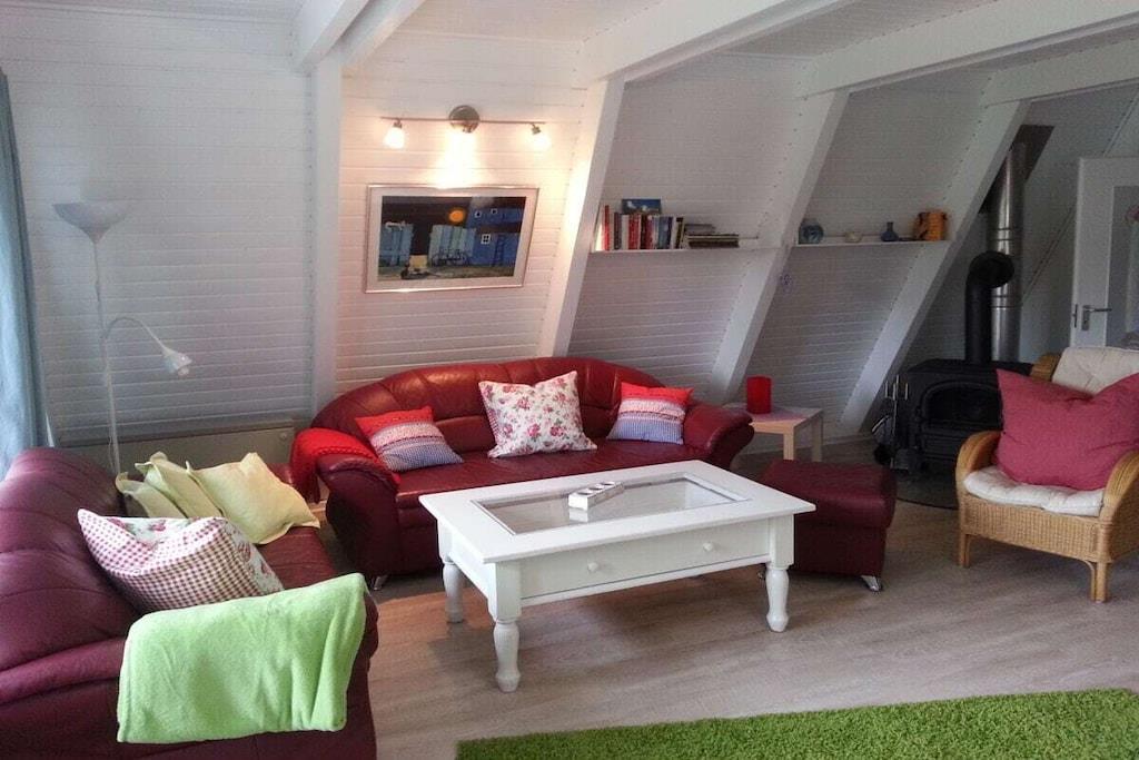 TOP Ausstattung, Strandnähe, ruhig gelegen am Kurwald, großer Garten, WLAN 100.000 kbit/s , 84 qm bis 5 Pers., Badelandschaft, PKW-Stellplatz am Haus, Kamin, 2 x TV in HD Das 84 qm große Nichtraucher-/ Nurdachhaus (größer als viele andere Zelt-Nurdachhäuser in Damp) in sehr ruhiger Lage direkt am Kurwald (Gartentor zum 20m entfernten Kurwald vorhanden) im Ostsee Resort Damp bietet mit 550 qm auch im Garten alle Freiheiten. Hier stehen Ihnen Sonnenliegen, dazugehörige Gartenmöbel, eine überdachte Terrasse sowie eine zweite angelegte Terrasse im Garten mit Grill und Sonnenschirm zur Verfügung. Ein Strandkorb lädt zum Entspannen ein. Eine Sandkiste, Rutsche, Bobbycar und Dreirad fehlen ebenfalls nicht für die kleinen Racker. Das Gartenhaus mit einem Fahrrad für das tägliche Brötchen holen und Bollerwagen für die Strandbesuche ermöglicht Ihnen auch den Unterstand Ihrer Fahrräder. Die komfortable Ausstattung bietet 5 Personen einen nahezu wunschlosen Urlaub. Ein eigener Parkplatz direkt vor der Haustür erleichtert von Beginn an den Urlaub. Ein HDTV 40 Zoll Flachbildschirm (FULL-HD/ Sat-Anschluss) inkl. DVD-Player und Blu-Ray-Player im Erdgeschoß sowie Stereoanlage inkl. Docking-Station und USB-Anschluß 'runden' das helle Wohnzimmer ab. Das Ferienhaus hat einen kostenfreien WLAN-Anschluss mit 100.000 kbit/s! Neben der technischen Unterhaltung bietet das Haus eine gemütliche Essecke und ein 3er und 2er Leder-Sofa, Sessel und Hocker. Das Wohnzimmer wird abgerundet durch den stilvollen Kaminofen mit Büchern und Spielen zum Entspannen. Holz können Sie im nah gelegenen Edeka-Markt beziehen. Im Erdgeschoss ist neben einem Flur, ein Bad mit WC und Dusche sowie einer voll ausgestatteten Küche mit Kühlschrank. Hier finden Sie Gefrierfach, Geschirrspüler, Waschmaschine, Backofen, Herd inkl. Ceranfeld, Mikrowelle, Toaster, Wasserkocher, Mixer, Filter-Kaffeemaschine sowie Kaffee-Padmaschine, Waffeleisen, Indoor-Grill usw. Es stehen Ihnen zudem ein Kinderhochstuhl und Baby-Reisebett zur Verfügung. Im Obergeschoss befinden sich Schlafräume, die beide mit Fliegengittern ausgestattet sind, für 2 und für 3 Personen (ein Babybett kann auf Anfrage aufgestellt werden). Alle Matratzen sind mit Schonern versehen. 2 Matratzen mit Härtegrad 2,5 (= hart bis mittel) und die anderen entsprechen Härtegrad 1,5 (= weich bis mittel). Das Schlafzimmer '2' ist zusätzlich mit einem HD-TV Flachbildschirm ausgerüstet. Im sehr großen 2. Schlafraum finden Sie eine Spiel-Ecke für die Kinder; bestückt mit Spielen und Büchern für alle Altersklassen. Das gesamte Haus ist mit wischbaren Fußböden ausgelegt und dadurch sehr pflegeleicht. Es befinden sich zusätzlich Teppichläufer im Haus. Das Haus ist komplett mit Rauchmeldern ausgestattet und Steckdosen mit nachgerüsteten Kindersicherungen versehen. Sie dürfen bis zu 2 Hunde gegen Gebühr mitbringen. Das Grundstück ist größtenteils eingezäunt. Zusätzlich steht ein mobiler 25 m Hundezaun zur Verfügung. Das Ferienhaus wird durch Öko-Strom betrieben und liegt direkt am Damper Kurwald (15 m), der Ihnen Wald-Spaziergänge und Jogging-/ Nordic Walking-Ausflüge ermöglicht. Der nah gelegene Ostsee-Sandstrand ist (ca. 900 m) zu Fuß in 10 Minuten über den anliegenden Deich einfach zu erreichen und ist in der Sommersaison DLRG überwacht. Im verkehrsberuhigtem Ort Damp finden Sie alle Annehmlichkeiten für Ihren Urlaub, die Sie direkt zu Fuß erreichen können, wie z.B. Bowling-und Kegel-Center, Fun- und Sport-Center inkl. Kletterturm, Inliner-Bahn, Kinder-Betreuung, Indoor-Beach-Volleyball, Squash, Tennis-Plätze sowie Kinderspielplatz, Mini-Golf, Wasser-Ski-Anlage, Surf-und Segel-Schule, Abenteuer-Golf, Fahrrad-Verleih, Promenade / Einkaufsmeile, Restaurants, Krankenhaus, Yachthafen, Schifffahrt, DLRG-Strand, Hunde-Strand, FKK-Strand, Vital-Center inkl. Sauna, Wellness-Center und Schwimmbad und Fitness-Center und vieles, vieles mehr...wie einem nah gelegenen Reiterhof in ca. 1,5 km Entfernung. Das neue Damper Entdeckerbad für Kinder und Erwachsene eröffnet. Neben einem Kleinkinderbadeland finden Sie ein großes Schwimmbecken in abstrahierter Form der Ostsee und eine Eventrutsche sowie Außenschwimmbad und Saunalandschaften, welches in unter 5 Minuten zu Fuß zu erreichen ist! Einige Höhepunkte des neuen Entdeckerbades: - 97 Meter Eventrutsche mit Lichtprojektion und LED-Effekten - 67 Meter lange Speedrutsche/ Neu seit Winter 2016/2017 - Sauna-Wikingerdorf mit Event-, Aufguss- und Kräutersaunen - Dreidimensionales, laserprojiziertes Polarlicht von der Hallendecke - Erlebnis-Kinderbecken zum Experimentieren und Erforschen - 29-30 °C Innenbecken in abstrahierter Form der Ostsee - 34 °C Außenbecken - Erlebnisgastronomie für Bad- und Saunabesucher - Traumhafter Ausblick auf die 'echte' Ostsee - Entdecker-, Science- und Eventcubes - zahlreiche Exponate Das Konzept des neuen Bades ist weit über die Grenzen Schleswig-Holsteins hinaus einzigartig. Es thematisiert Nordeuropa, nordische Kulturen und die Wikinger. Die gesamte Familie geht hier mit einer ausgewogenen Mischung aus Unterhaltung und spielerischem Lernen auf Erkundungsreise. Für kleine und große Gäste gibt es in drei Ergebnisräumen vieles zu erleben und zu entdecken: Es gibt ein Kino, einen Bereich mit naturwissenschaftlichen Experimenten zum Ausprobieren sowie Touchscreens-Quiz und -Spiele zur Ostsee und Wikingerzeit. Schauen Sie gerne auf die Internetseiten www.entdeckerbad.de und www.ostsee-resort-damp.de und entdecken noch viel mehr vom Entdeckerbad und dem Ostseebad Damp! Lassen Sie sich zudem von der wunderschönen Ostsee-Halbinsel Schwansen zu erholsamen Spaziergängen und Radtouren verleiten. Ausflüge in die nah gelegenen Küsten- bzw. Fischerstädten nach Kappeln (u.a. Drehort Landarzt, Museums-Dampfeisenbahn,....) und Eckernförde (15-20 km) laden zum Bummeln ein. Die nahe gelegenen Orte Maasholm (wunderschönes kleines Fischerdorf), Arnis (kleinste Stadt in Deutschl