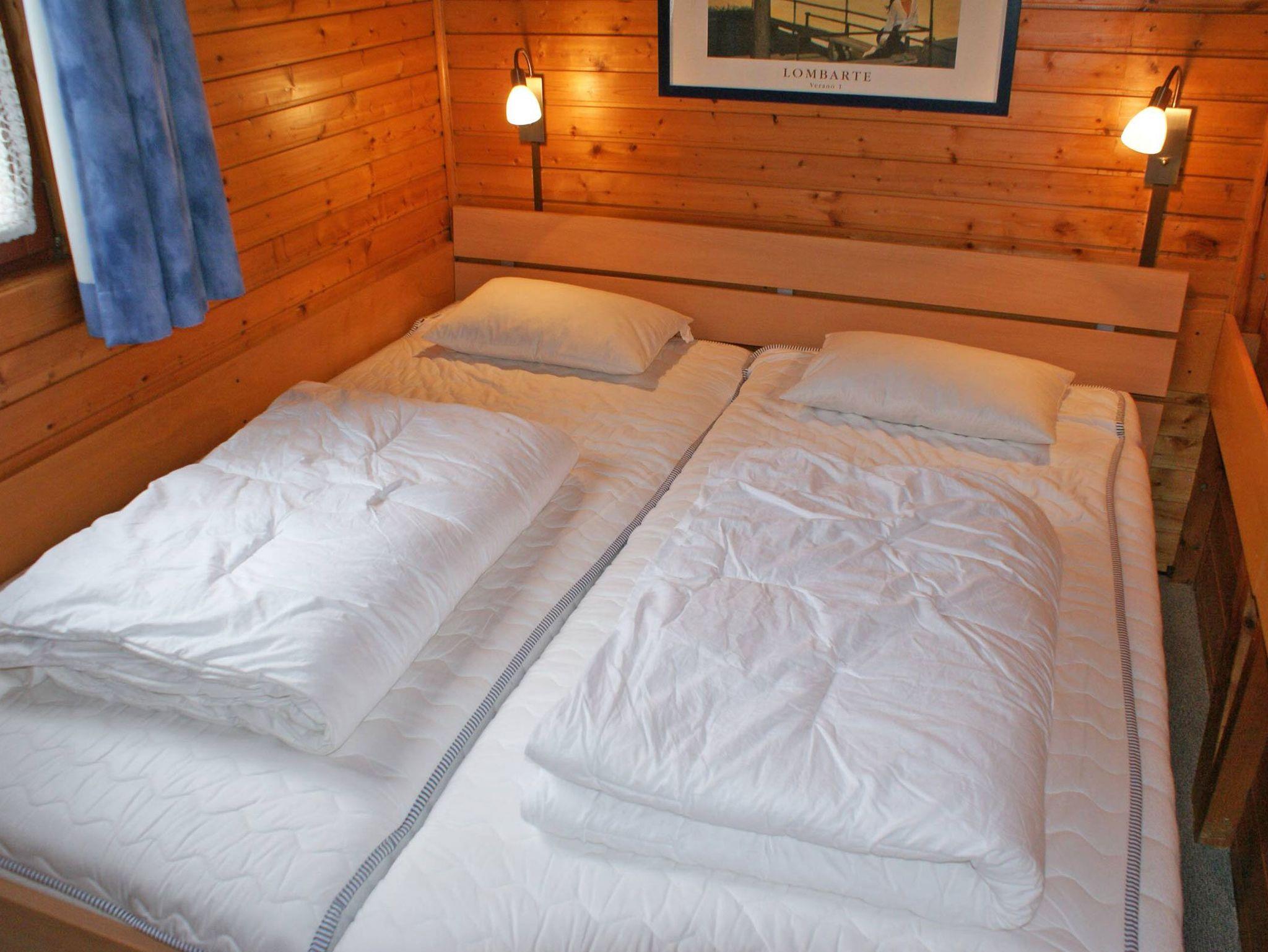 Blockhaus mit grosser Rasenfläche und eigenem Pkw-Stellplatz, ideal für Urlauber mit bis zu 4 Personen.
