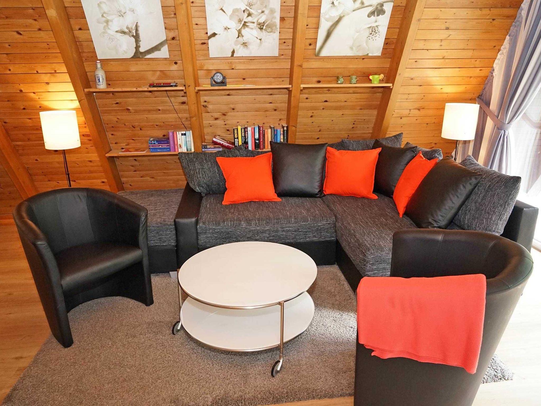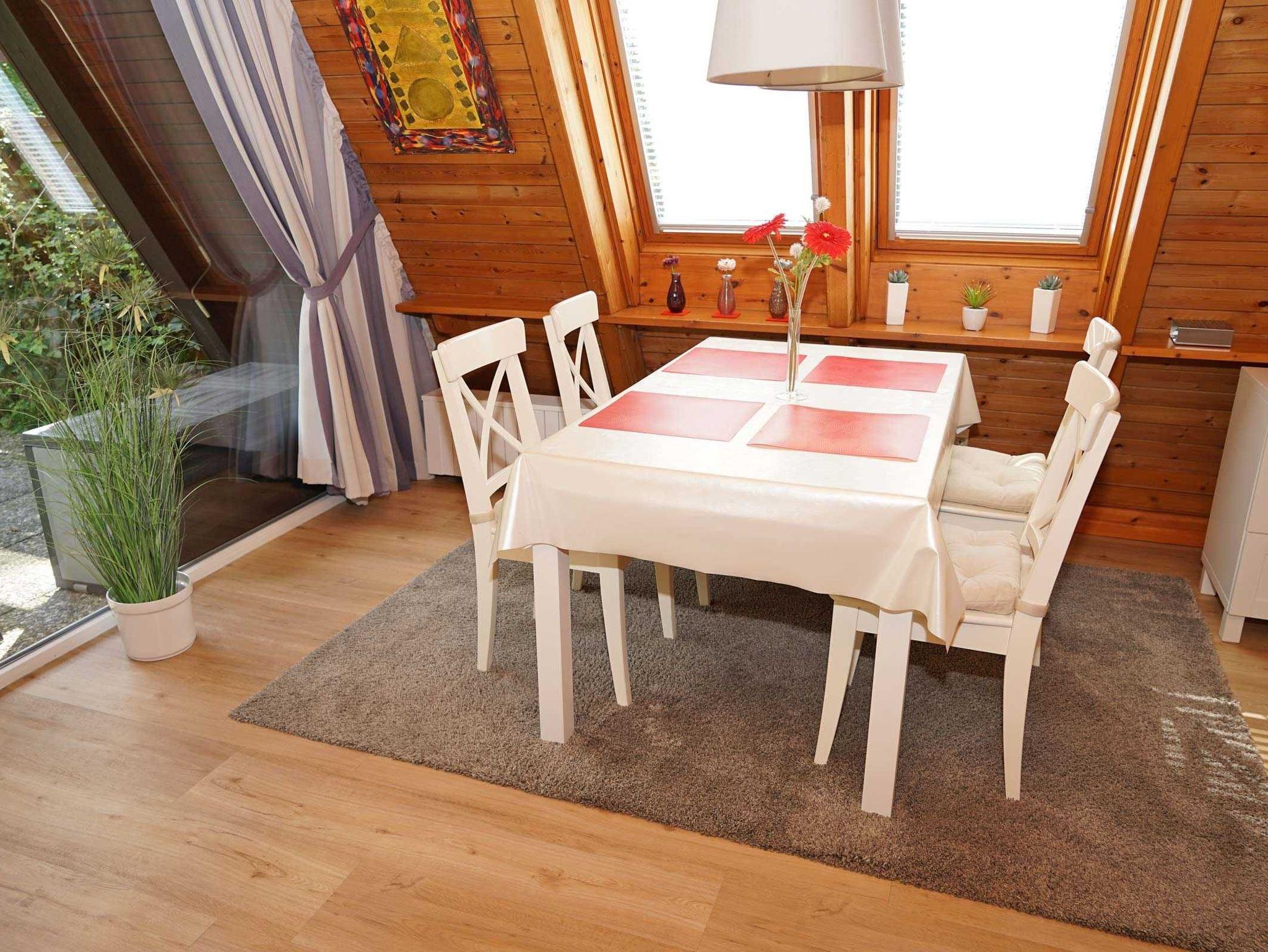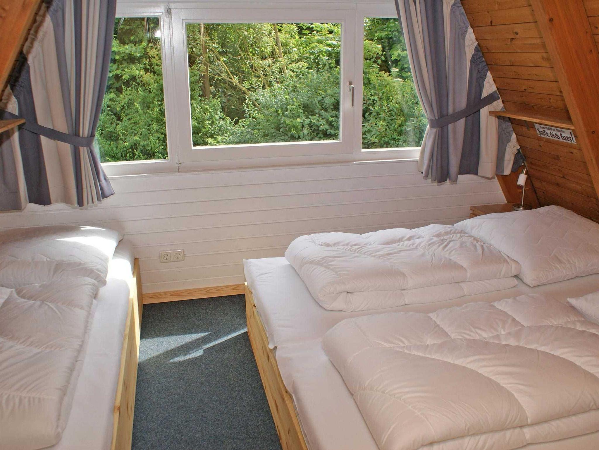 Unser Zeltdachhaus verfügt über zwei getrennte Schlafräume (im oberen Bereich des Hauses), kombiniertes Wohn- und Esszimmer, vollwertige Küche und Terrasse. Ein Kinderreisebett und Kinderhochstuhl sind immer vorhanden und kostenlos nutzbar. W-Lan kann für 1,00 Euro pro Tag gebucht werden.