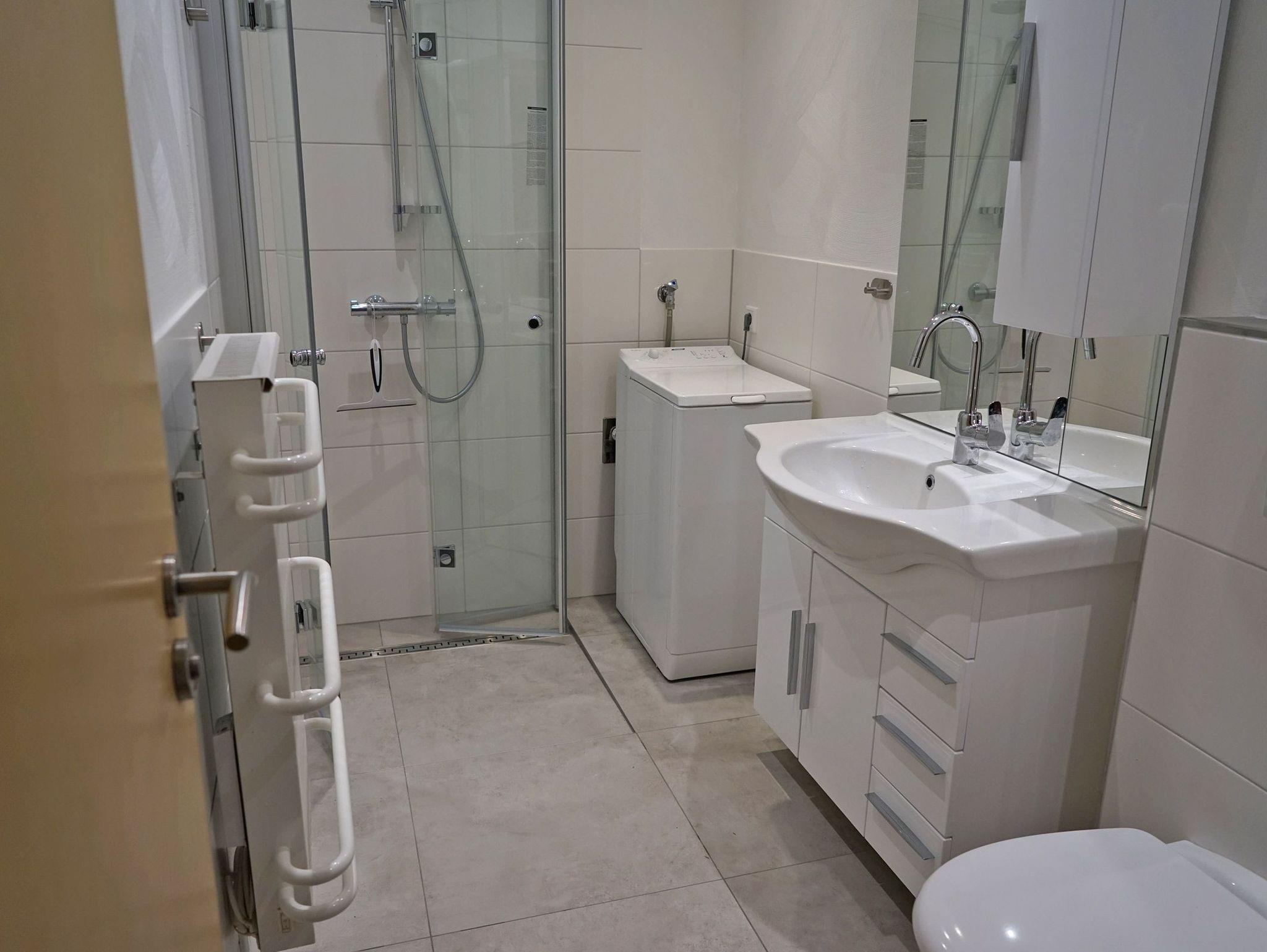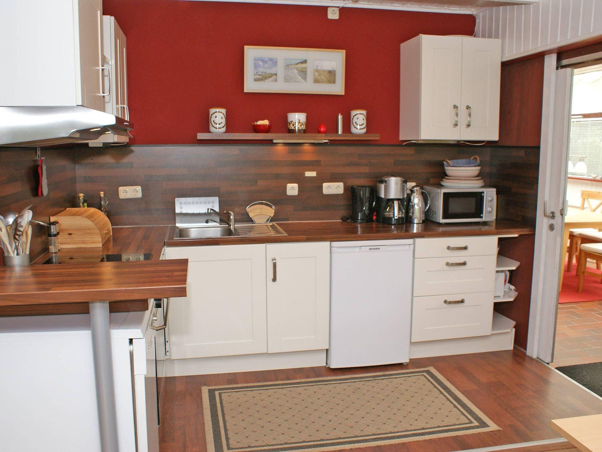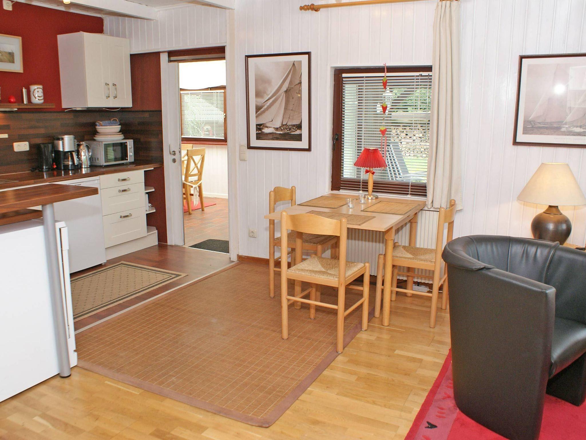 Wohnen auf einer Ebene. Zur Ausstattung gehört eine vollwertige Küche (mit Geschirrspüler und Waschmaschine), 2 getrennte Schlafzimmer (das zweite Schlafzimmer mit 2 x Einzelbetten ist nur über das Badezimmer erreichbar), Flur, neues Bad mit Dusche und Wohnzimmer mit Essecke. Der Kamin im Wohnzimmer steht den Gästen zur Verfügung.