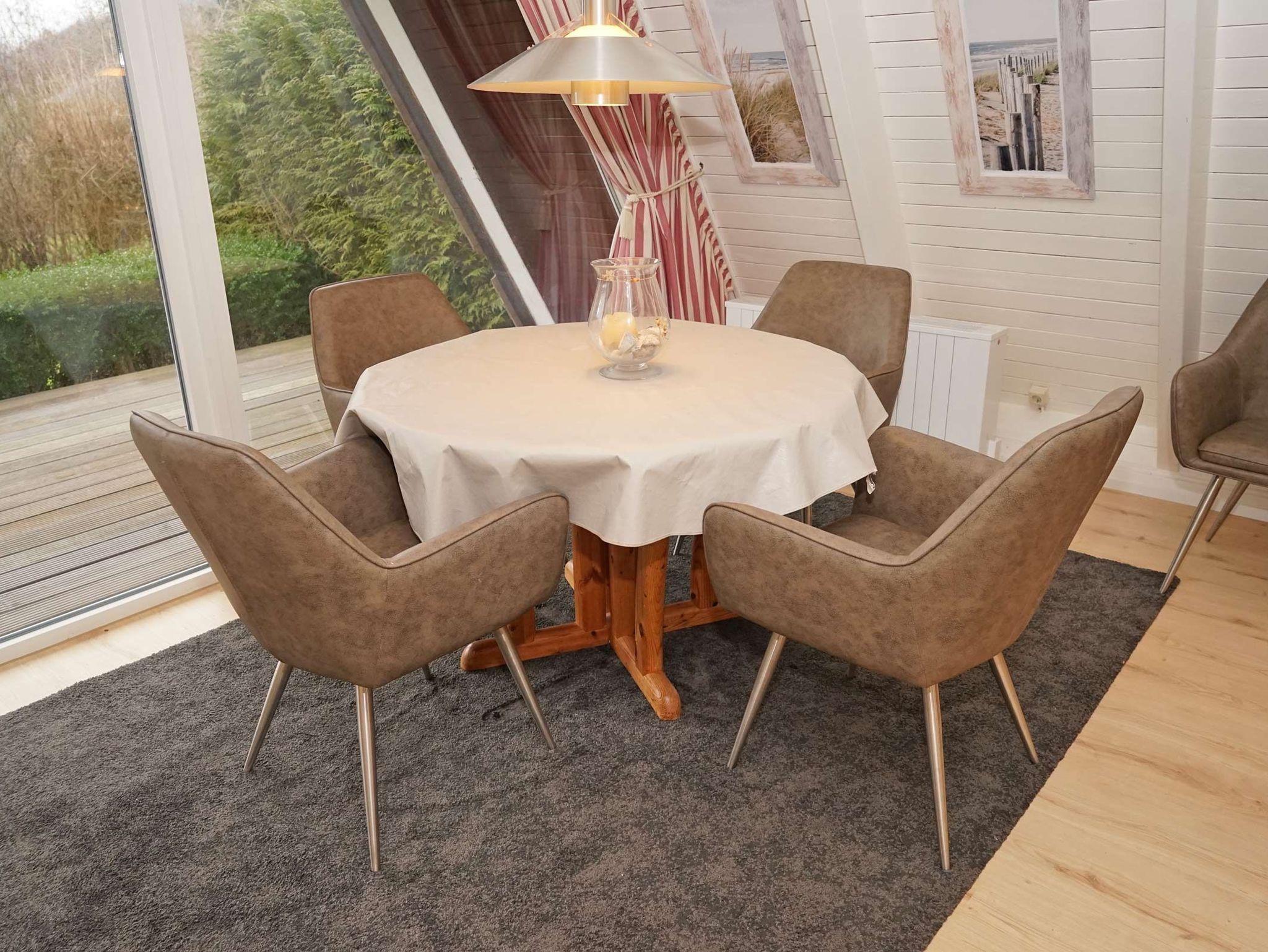 Unser Zeltdachhaus verfügt über zwei getrennte Schlafräume (im oberen Bereich des Hauses), kombiniertes Wohn- und Esszimmer, vollwertige Küche und Terrasse. Ein Kinderreisebett und Kinderhochstuhl sind immer vorhanden und kostenlos nutzbar.