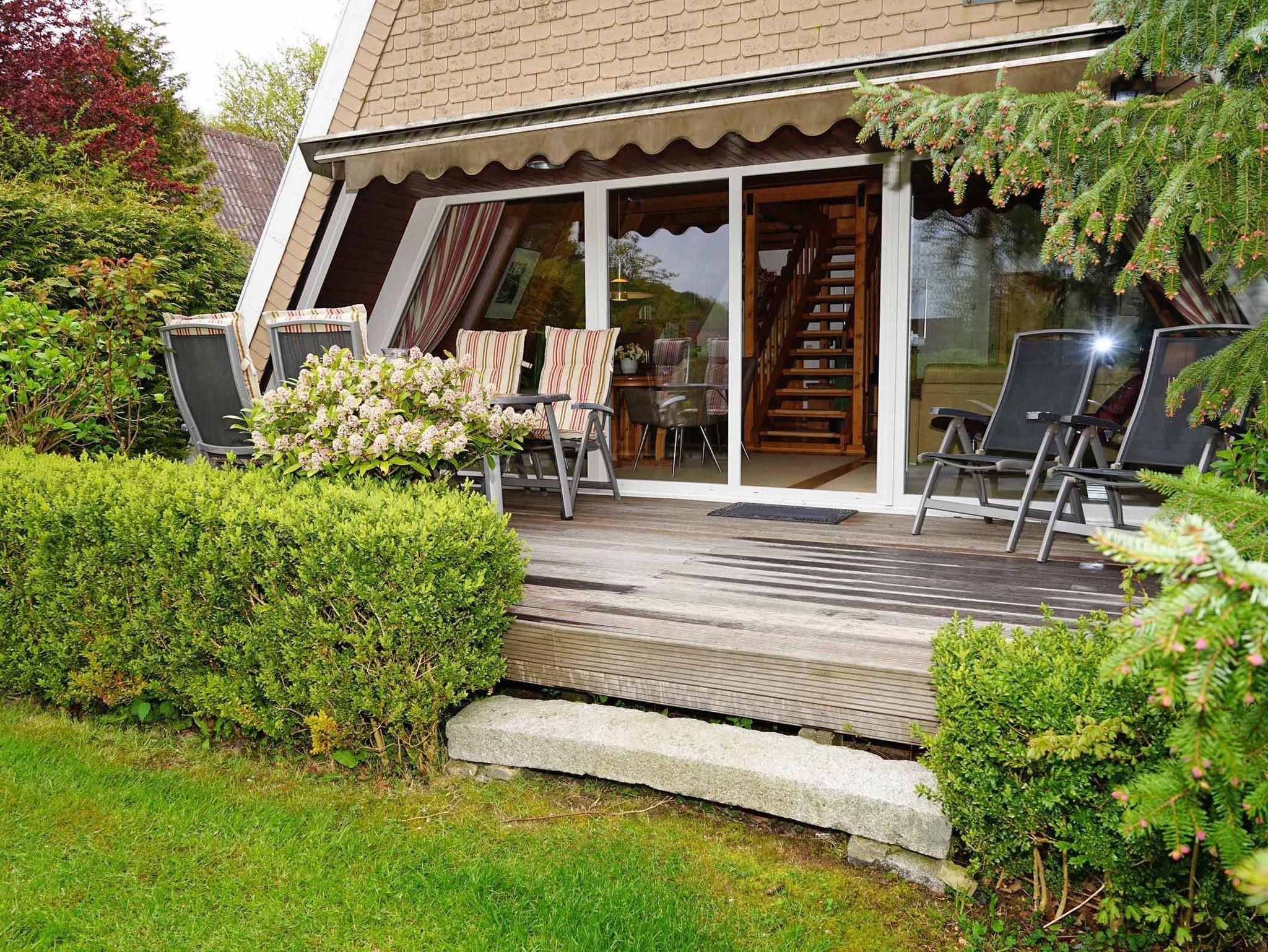 grosse sonnige Terrasse mit Markise und W-LAN kostenlos, - Ferienhaus in ruhiger Lage