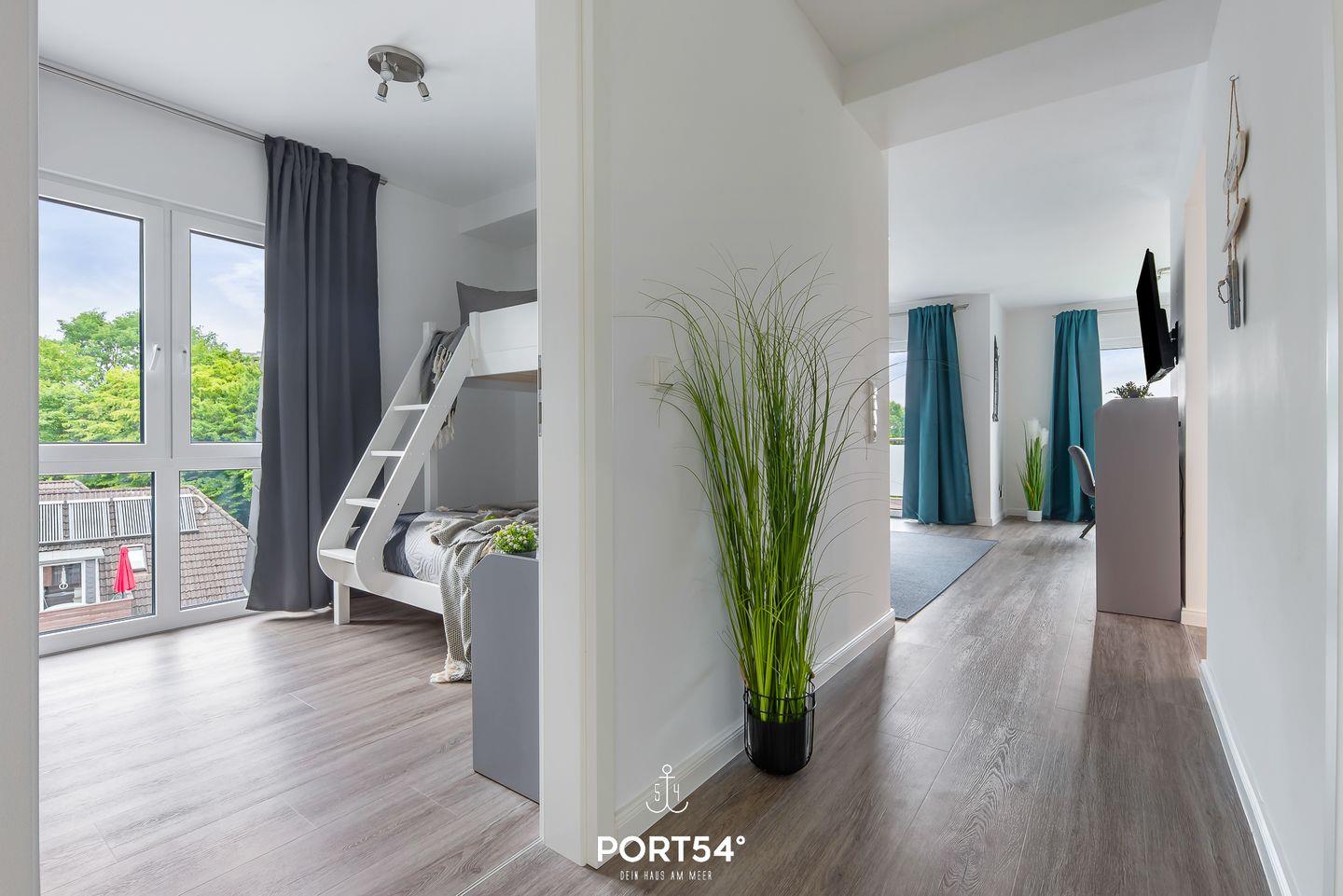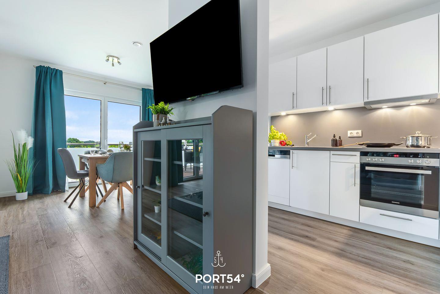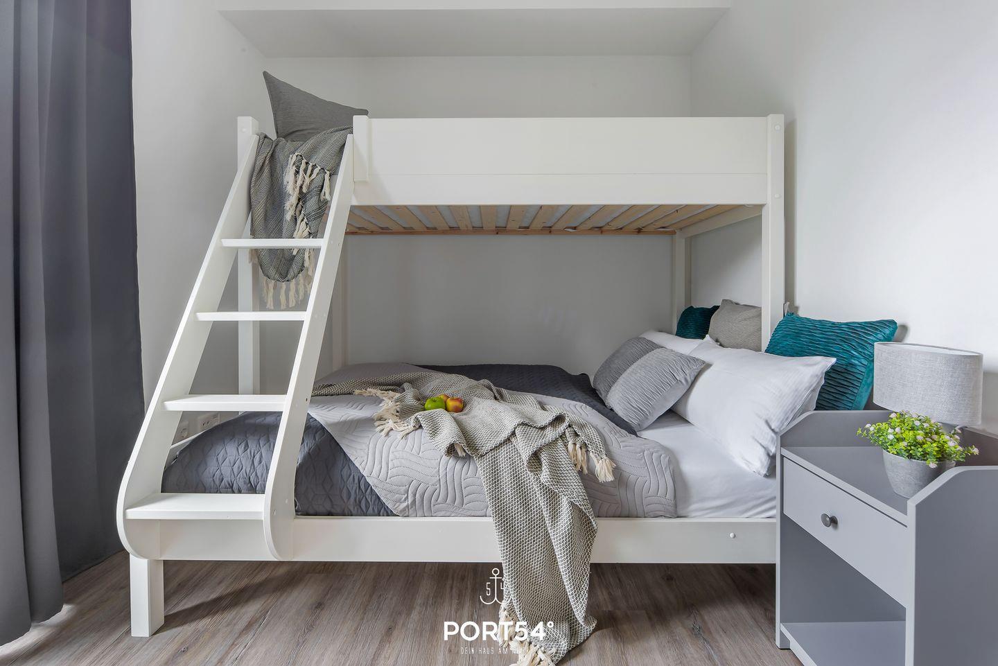Herzlich willkommen in der modernen Ferienwohnung "Ostseeoase" – einem wahren Schmuckstück in einem Neubau, das auf großzügigen 78m² Platz für bis zu 6 Personen bietet. Die ideale Lage in der Nähe des Hafens verspricht teilweise Meerblick und ermöglicht es Ihnen, den Strand in nur wenigen Gehminuten zu erreichen. Auch Ihr vierbeiniger Begleiter darf auf Anfrage gerne mitreisen, denn Urlaub macht schließlich gemeinsam noch mehr Spaß. Für unsere kleinen Gäste stehen ein Kinderhochstuhl, ein Kinderreisebett und extra Kindergeschirr bereit, um den Aufenthalt so angenehm wie möglich zu gestalten. Damit es Ihnen an Unterhaltung nicht mangelt, sorgt die Wohnung mit WLAN, einem Flachbild-TV inklusive Netflix und einer vielseitigen Spielesammlung für abwechslungsreiche Stunden. Den perfekten Ausklang eines erlebnisreichen Tages erleben Sie auf dem Balkon, wo Sie bei einem Glas Wein den Sonnenuntergang über der Ostsee genießen können. Die beiden Schlafzimmer der Wohnung bieten eine komfortable Übernachtungsmöglichkeit. Das erste Schlafzimmer verwöhnt Sie mit einem gemütlichen Boxspringbett (180x200cm) und einem Smart TV für entspannte Filmabende. Im zweiten Schlafzimmer erwartet Sie ein Etagenbett (140x200cm unten und 90x200cm oben), das nicht nur für Kinder ein Highlight ist. Verdunkelungsmöglichkeiten sorgen für einen erholsamen Schlaf. Das moderne Badezimmer beeindruckt mit einer ebenerdigen Dusche, einer praktischen Waschmaschine und einem Föhn für Ihren Komfort. Ein Aufzug erleichtert Ihnen den Zugang zur Ferienwohnung, und ein Stellplatz steht für eine bequeme Anreise zur Verfügung. Zusätzlich können Sie Ihre Fahrräder sicher in der Fahrradabstellmöglichkeit unterbringen.