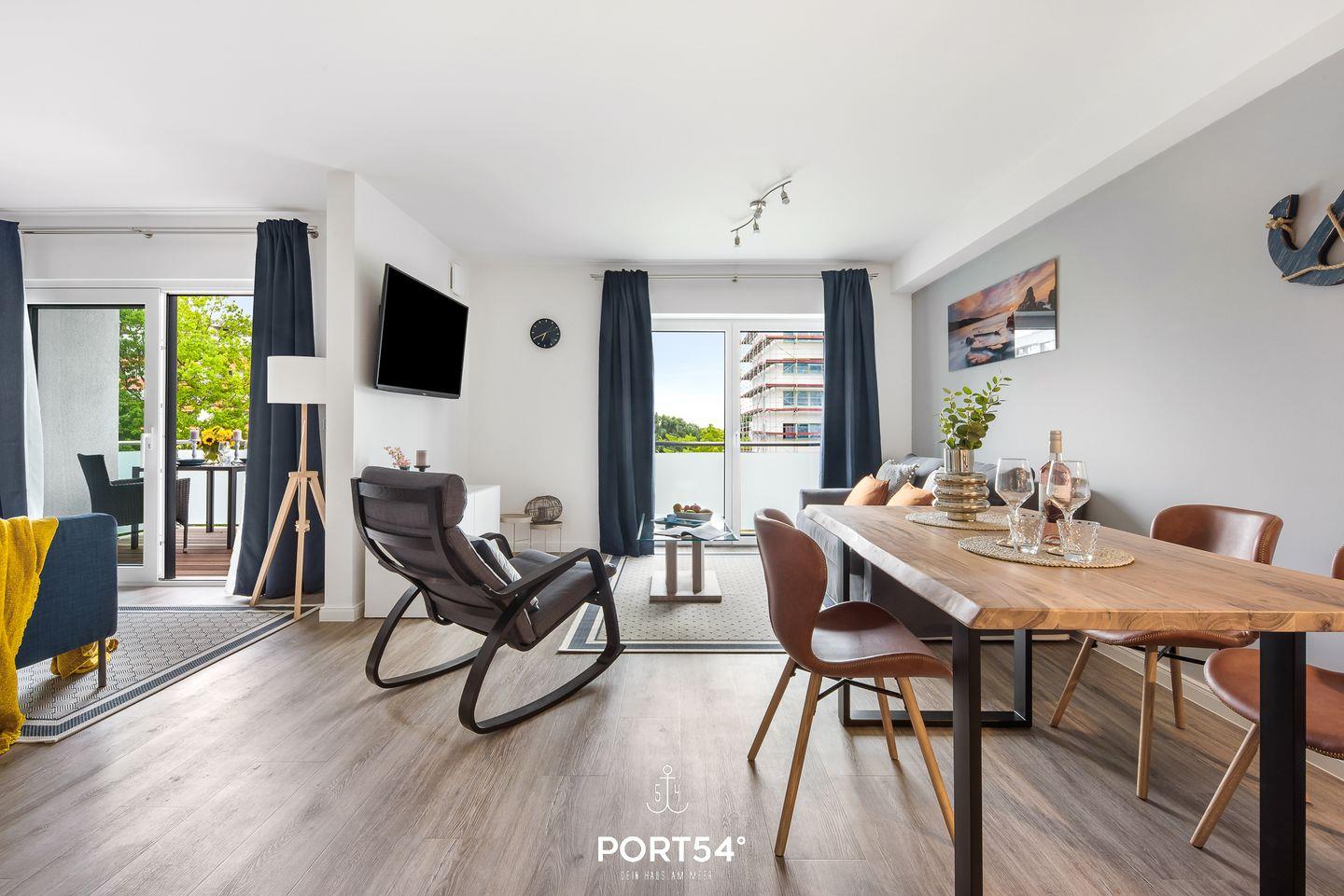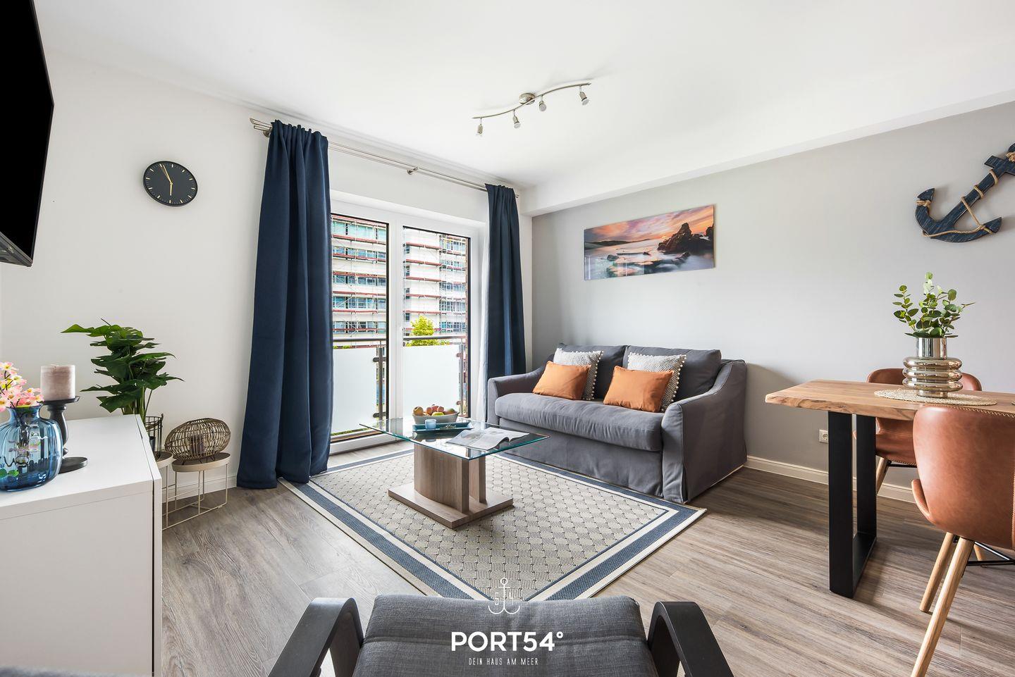 Herzlich willkommen in der modernen Ferienwohnung "Meerzeit"! Die im Neubau gelegene Wohnung bietet auf großzügigen 65m² Platz für 4 Personen und sogar einen vierbeinigen Freund (auf Anfrage). Der Schlafbereich erwartet Sie mit einem luxuriösen Boxspringbett (180x200cm), das Ihnen traumhafte Nächte verspricht. Zusätzlich stehen auf dem gemütlichen Schlafsofa (140x200cm) zwei weitere Schlafplätze bereit, damit Sie Ihren Urlaub mit Ihren Liebsten in vollen Zügen genießen können. Die vollausgestattete Küche lädt dazu ein, leckere Meisterwerke zu kreieren, die Sie entweder am großzügigen Esstisch oder auf dem Balkon mit Blick durch die Bäume auf das Wasser genießen können. Erleben Sie hier unvergessliche Mahlzeiten unter freiem Himmel, begleitet vom beruhigenden Rauschen der Wellen. Das Badezimmer überzeugt mit einer ebenerdigen Dusche, die für erfrischende Momente sorgt und den perfekten Start in den Tag bietet. Der Balkon, umgeben von Bäumen, gewährt Ihnen Privatsphäre und eine entspannte Atmosphäre, ideal für erholsame Stunden im Freien. Für zusätzlichen Komfort steht Ihnen ein Aufzug zur Verfügung, der Ihnen den Zugang zur Ferienwohnung erleichtert. Ein Stellplatz sichert Ihnen eine bequeme Anreise, und eine Fahrradabstellmöglichkeit ermöglicht es Ihnen, die Umgebung auf zwei Rädern zu erkunden.