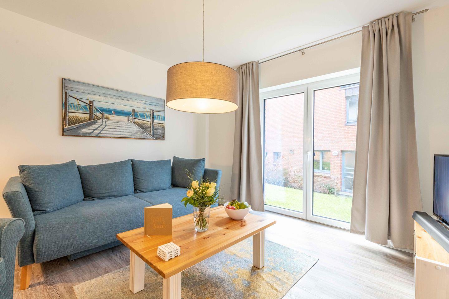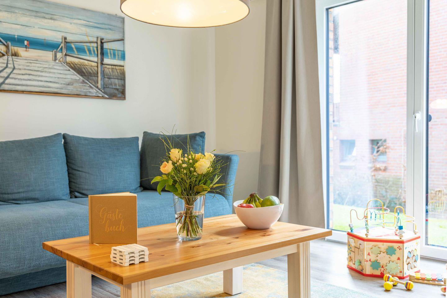 Im Wohnbereich stehen Ihnen ein komfortables Sofa zur Verfügung, welches sich bei Bedarf in einen dritten Schlafplatz ausziehen lässt. Ein moderner Fernseher mit digitalem Anschluss und Video-on-Demand sorgt für Unterhaltung an gemütlichen Abenden. Fernab der Hektik können Sie in Ruhe die Zeit miteinander genießen oder spannende Spieleabende veranstalten.