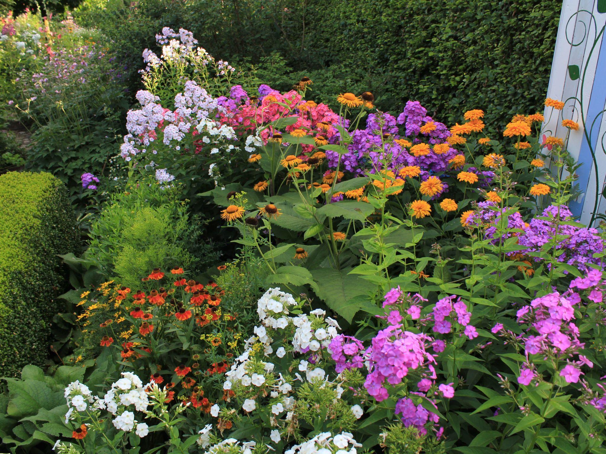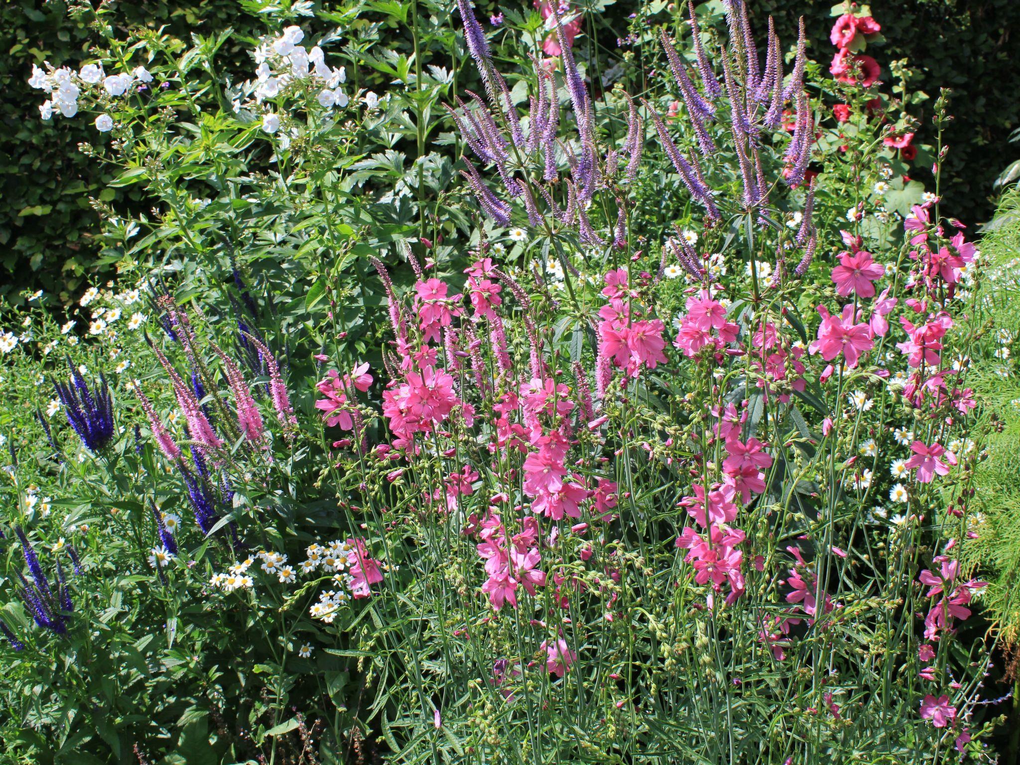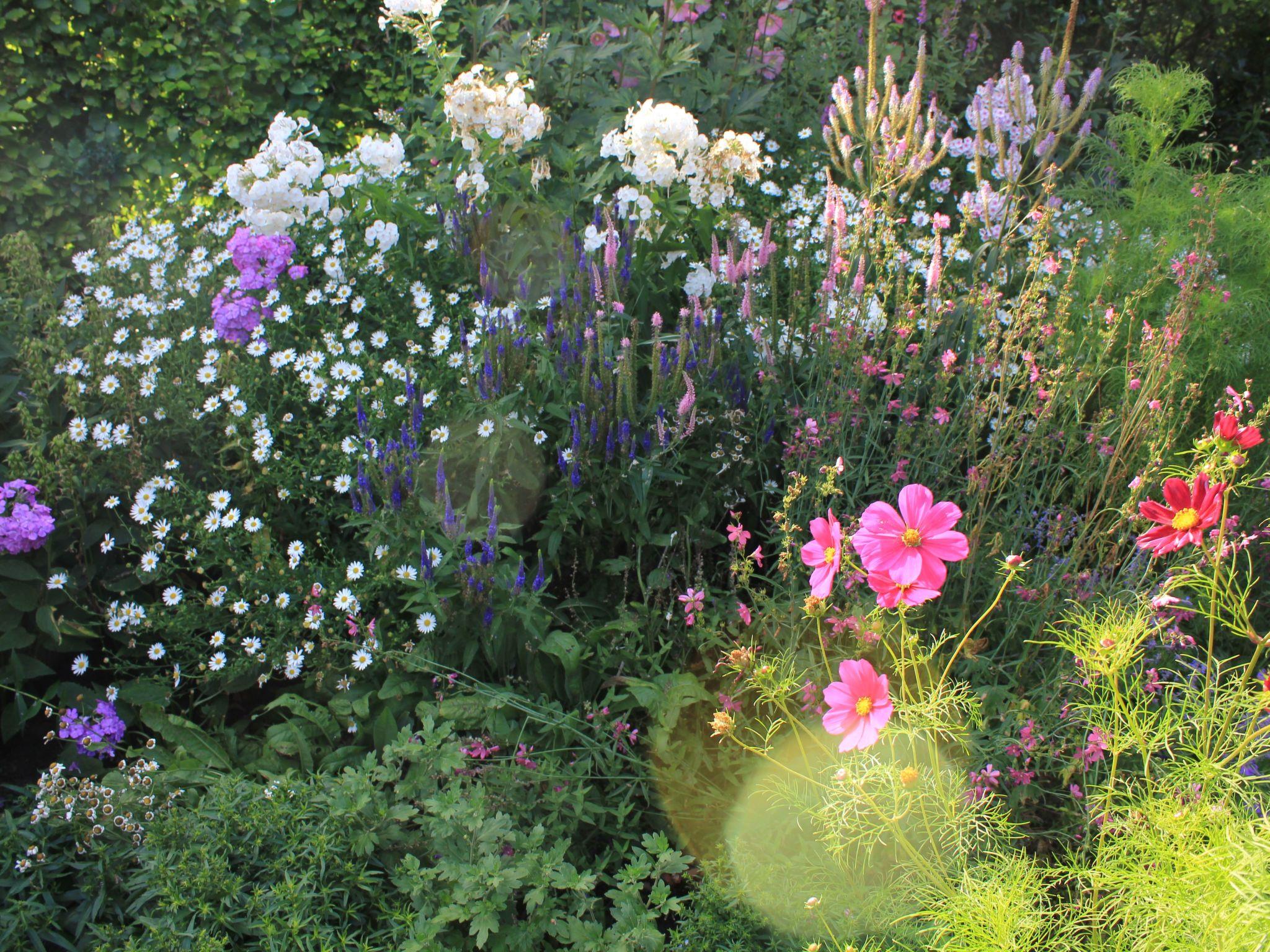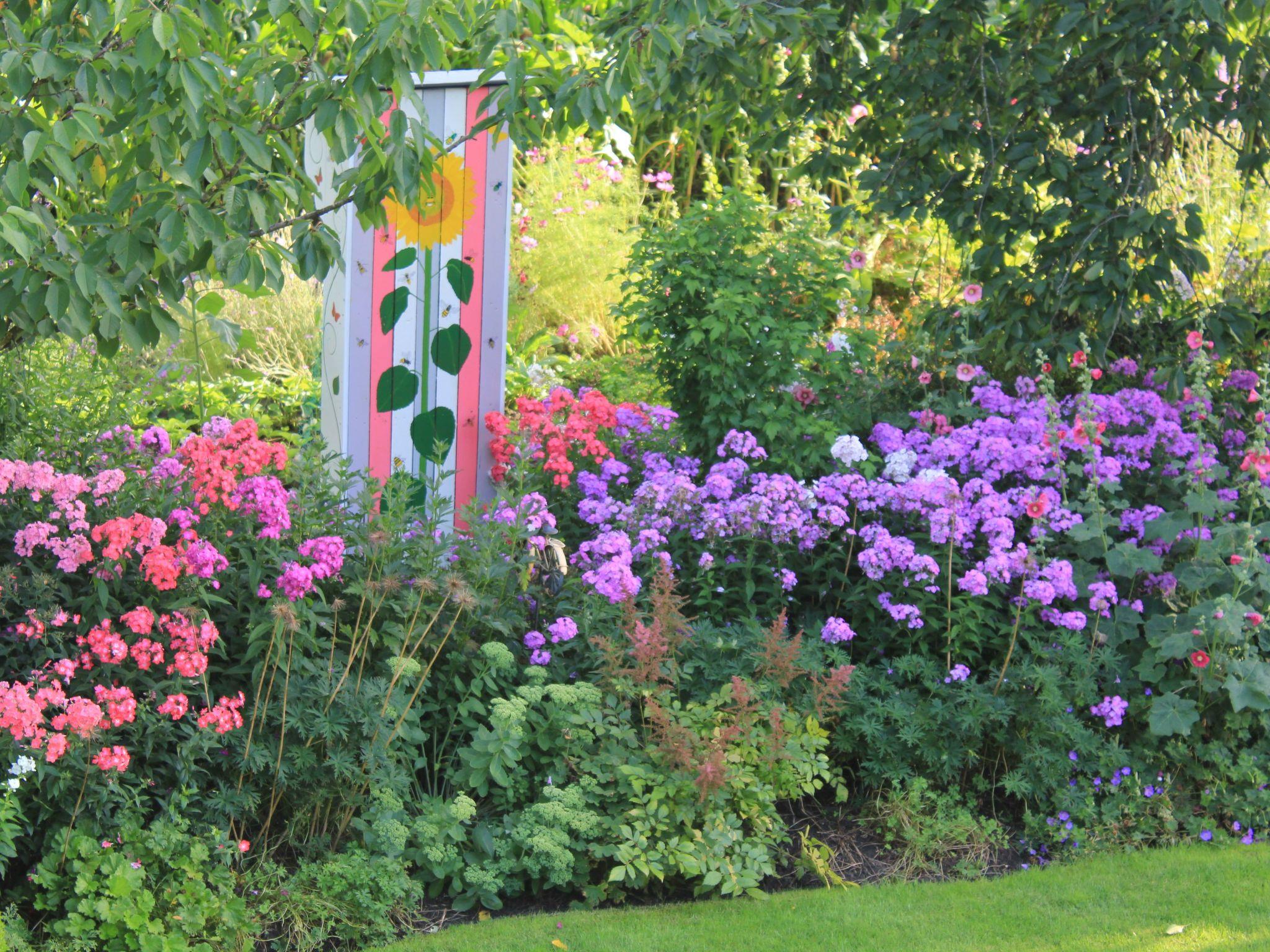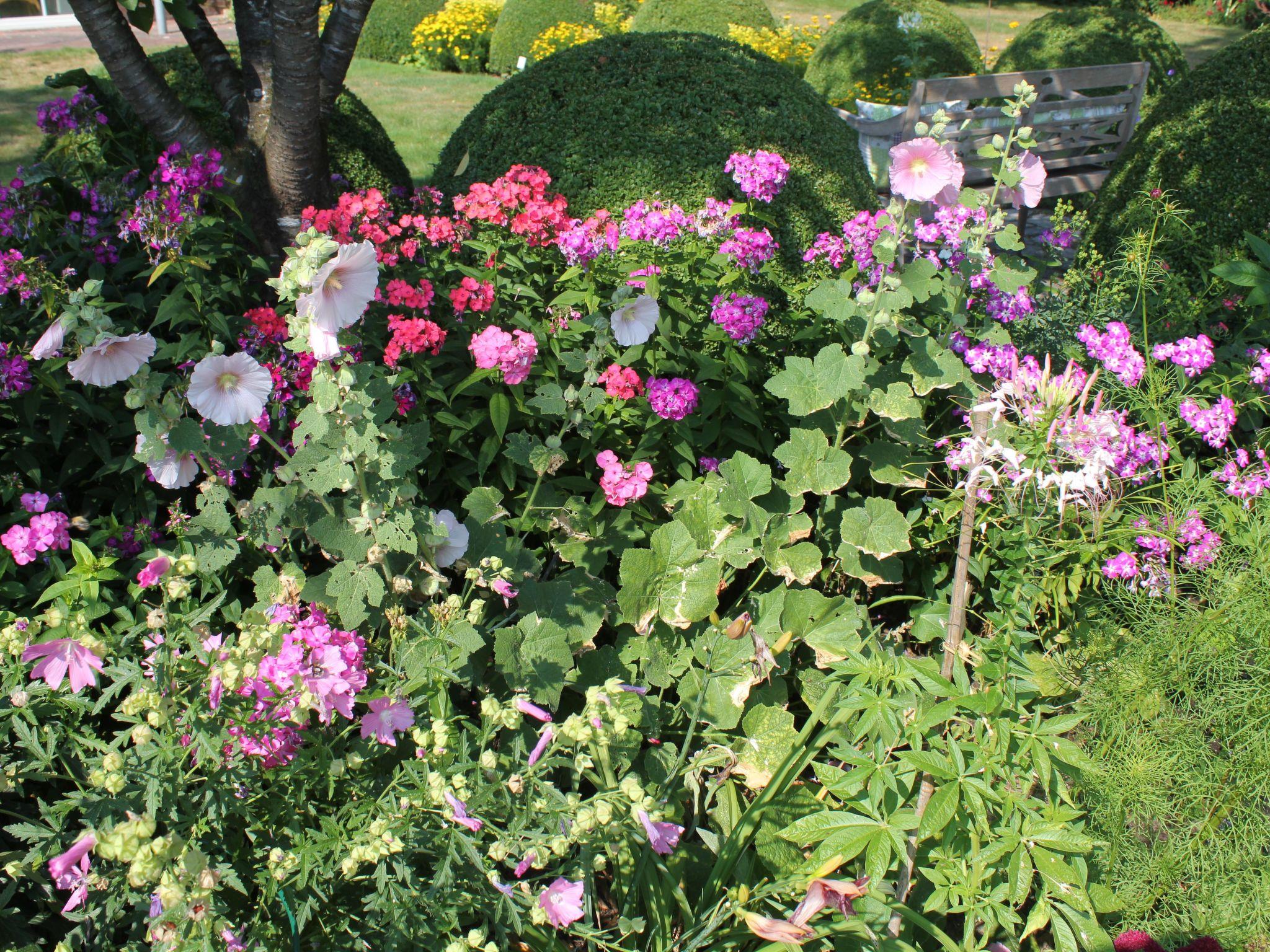 You can enjoy the sun in the afternoon on your large private west-facing balcony. The house with the holiday flat is surrounded by a beautiful garden for communal use. The various garden spaces have been created with a lot of love and energy over the past 30 years. The garden is a cheerful sea of colour from February to October. Boxwood hedges surround the herbaceous beds. A 20 metre long stream babbles past the perennials and flows into a small garden pond with goldfish. Cherries, apples, pears, currants, figs and the vegetable garden invite you to snack. Thanks to the many seating areas, you can always find a sunny or shady place to sit, depending on your needs. A large insect nesting house (bee hotel, insect hotel) provides a home for many hymenoptera, for example, and invites you to observe nature in a special way. Relax on the large furnished terrace for five people, on the garden lounger or in the beach chair. A barbecue and an electric barbecue are also available. The holiday flat also has a separate entrance, a car parking space and a ground-level bicycle garage, and we have recently planted a flowering area of 1000 square metres with 150 different flowers.