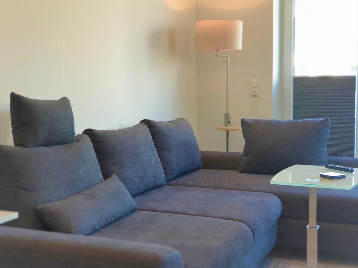Wohnzimmer: Schlafsofa, Flachbildfernseher, Empfang deutschsprachiger TV-Programme (SAT-Anlage)